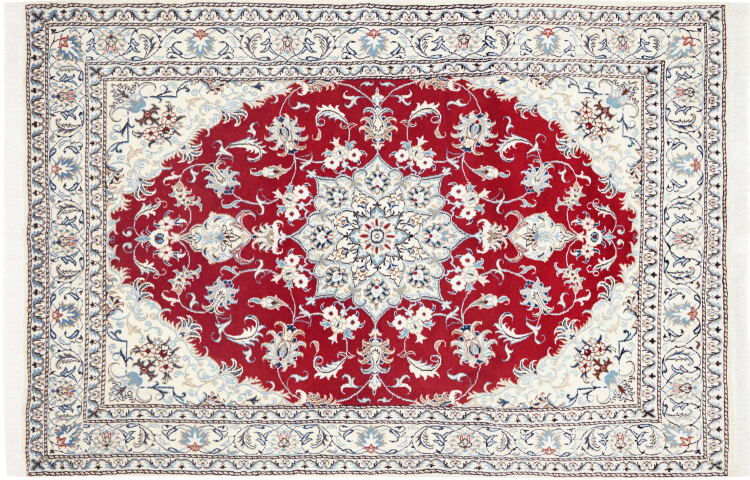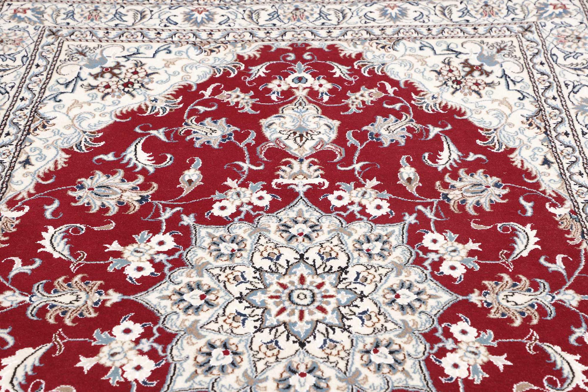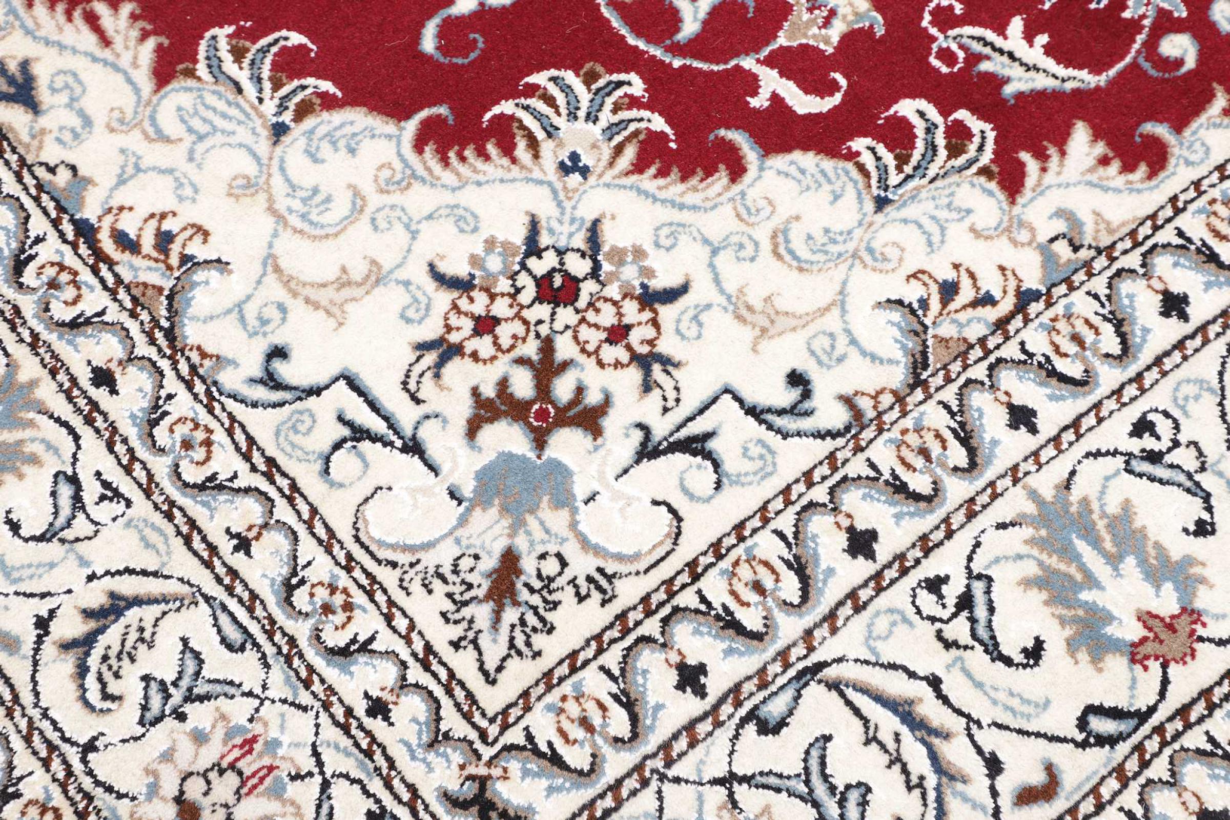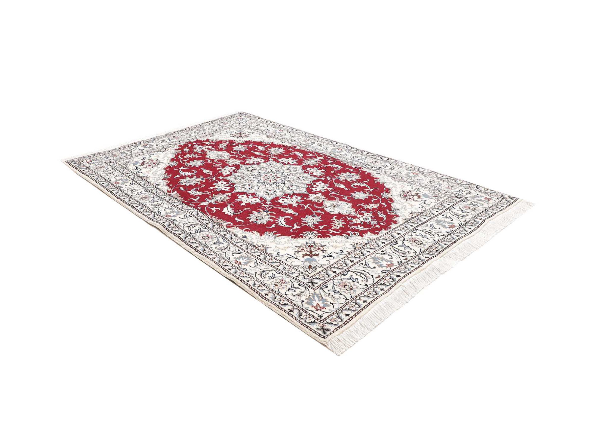 Las alfombras de la ciudad de Nain, en la frontera de uno de los mayores desiertos de Irán, están entre las alfombras persas más famosas del mundo. Su diseño típico es inconfundible con adornos florales, un medallón central y tonos beige y rojo o azul. Gracias a sus designaciones 4La, 6La, 9La y 12La, las sutilezas de una alfombra de Nain se pueden ver a simple vista. Cuanto más bajo sea el número "La", más alta es la densidad del nudo y por lo tanto más fina es la alfombra.