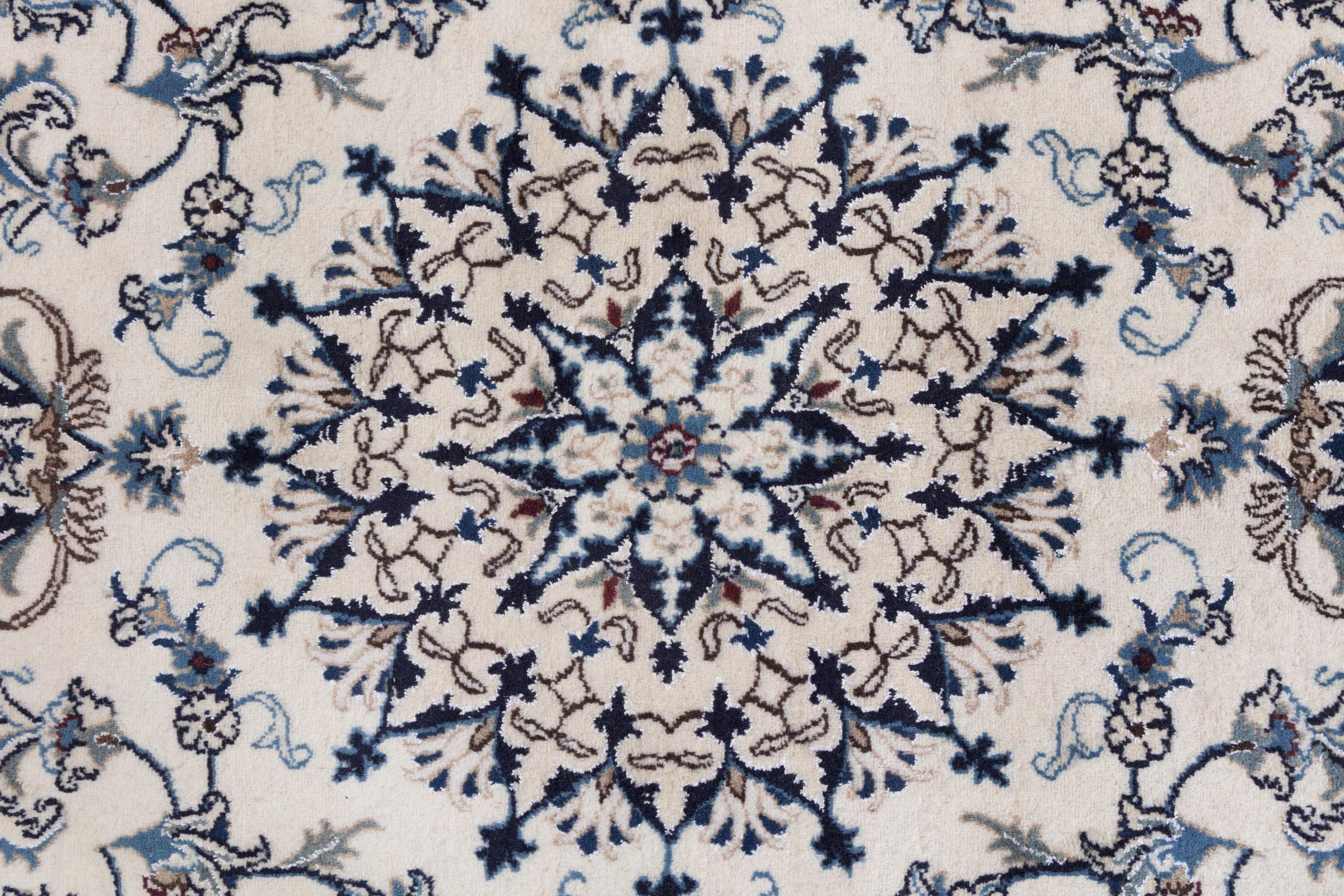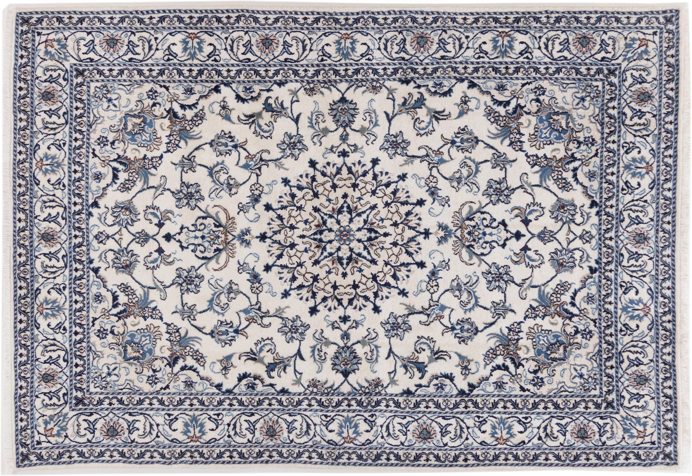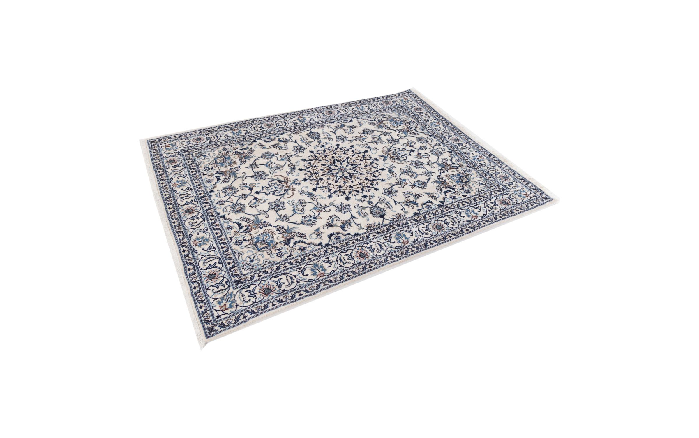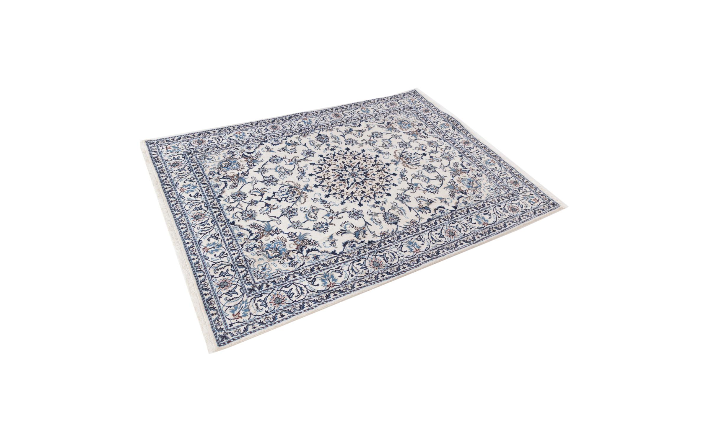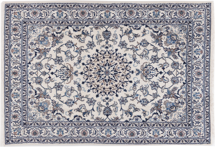 Las alfombras de la ciudad de Nain, en la frontera de uno de los mayores desiertos de Irán, están entre las alfombras persas más famosas del mundo. Su diseño típico es inconfundible con adornos florales, un medallón central y tonos beige y rojo o azul. Gracias a sus designaciones 4La, 6La, 9La y 12La, las sutilezas de una alfombra de Nain se pueden ver a simple vista. Cuanto más bajo sea el número "La", más alta es la densidad del nudo y por lo tanto más fina es la alfombra.
