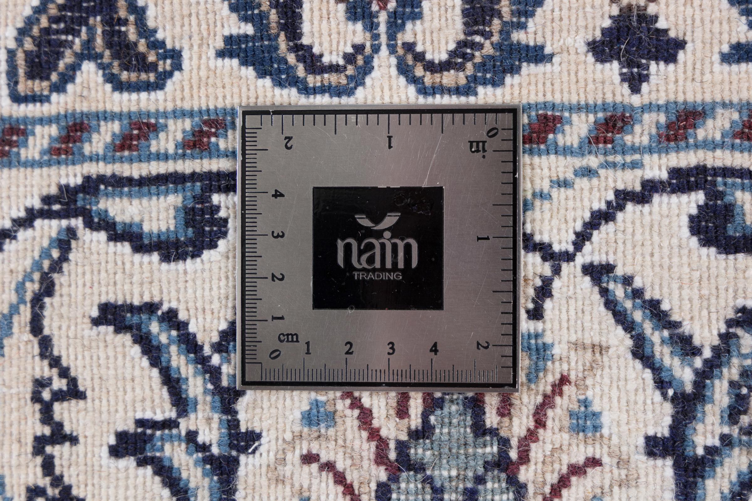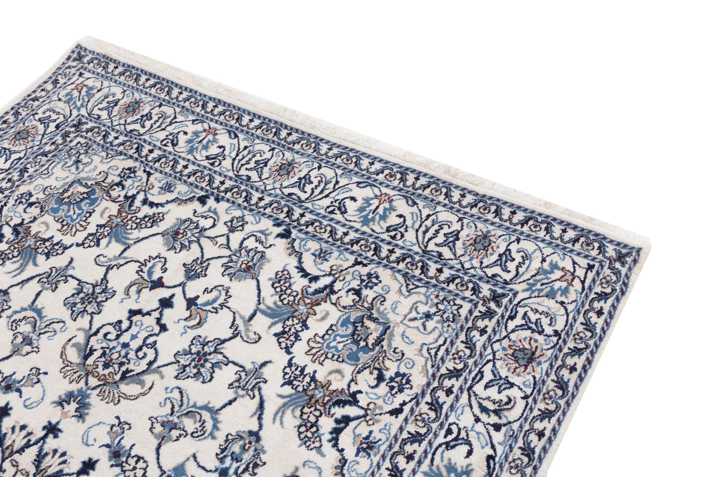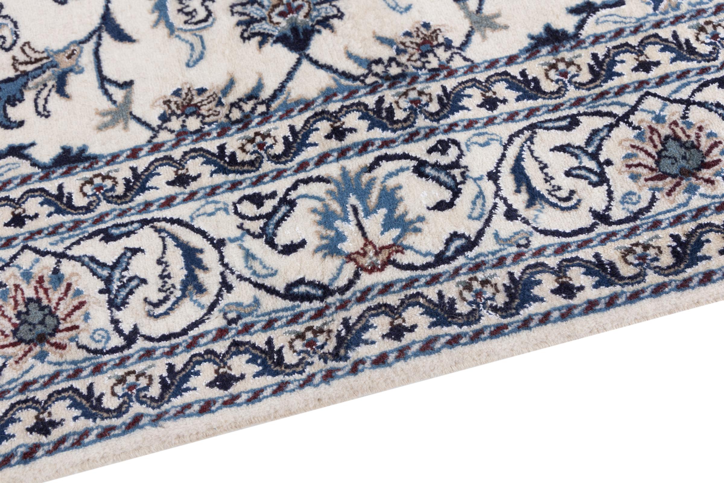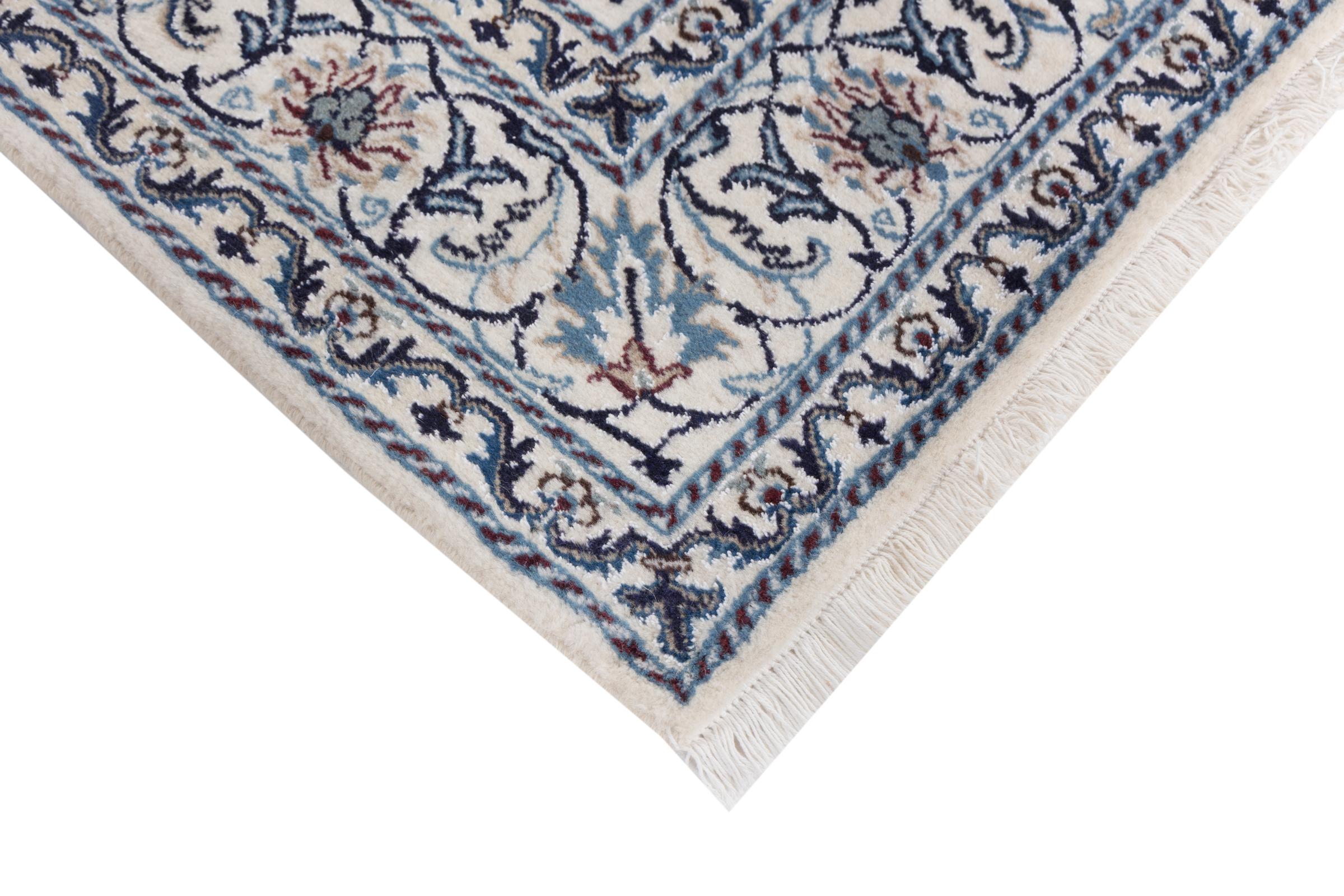 Esta alfombra Nain está clasificada como 12La. Tiene un aspecto elegante y refinado con su colorido típico de Naín. Esta alfombra persa fue anudada a mano en la ciudad de Naín, situada en el extremo occidental del desierto de Dasht-e-Kavir, con lana de alta calidad y seda natural. Con un tamaño de 12La, no está tan finamente detallada con ornamentos como una Nain 9La o 6La.