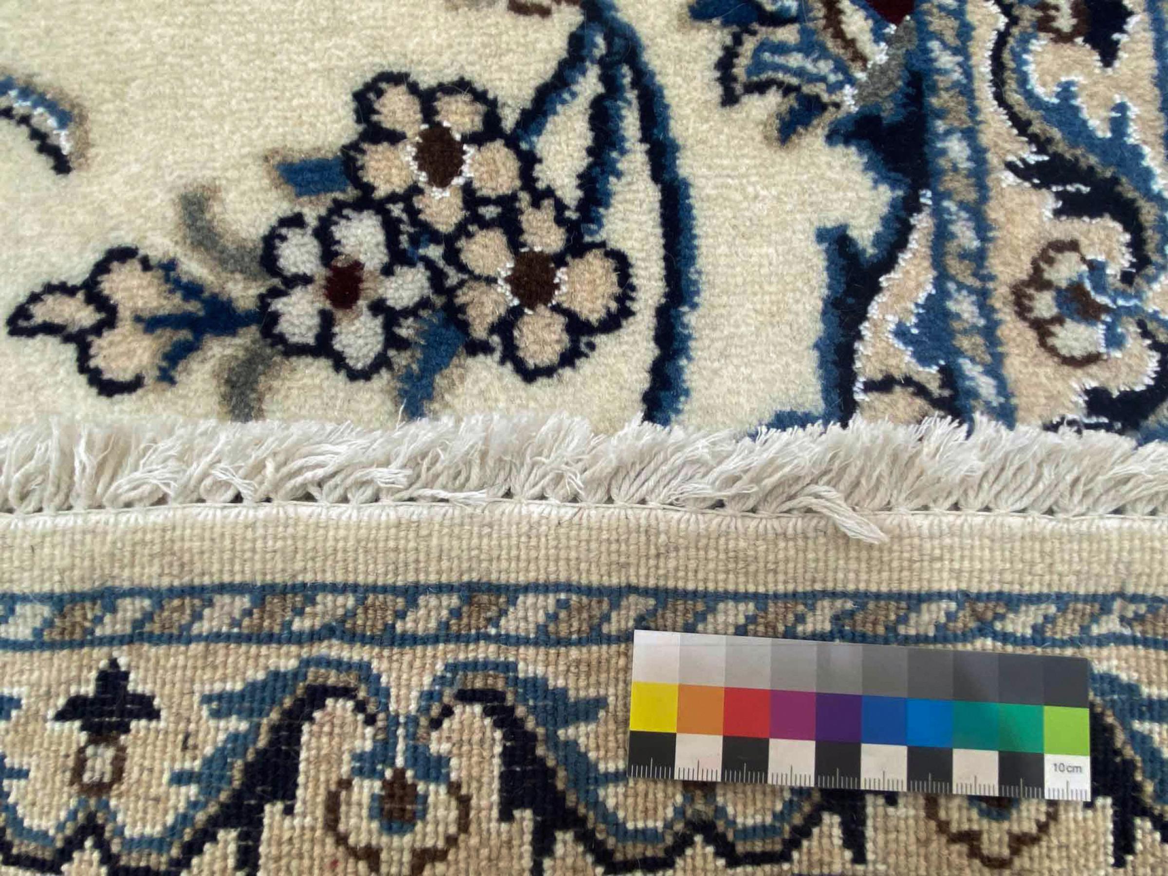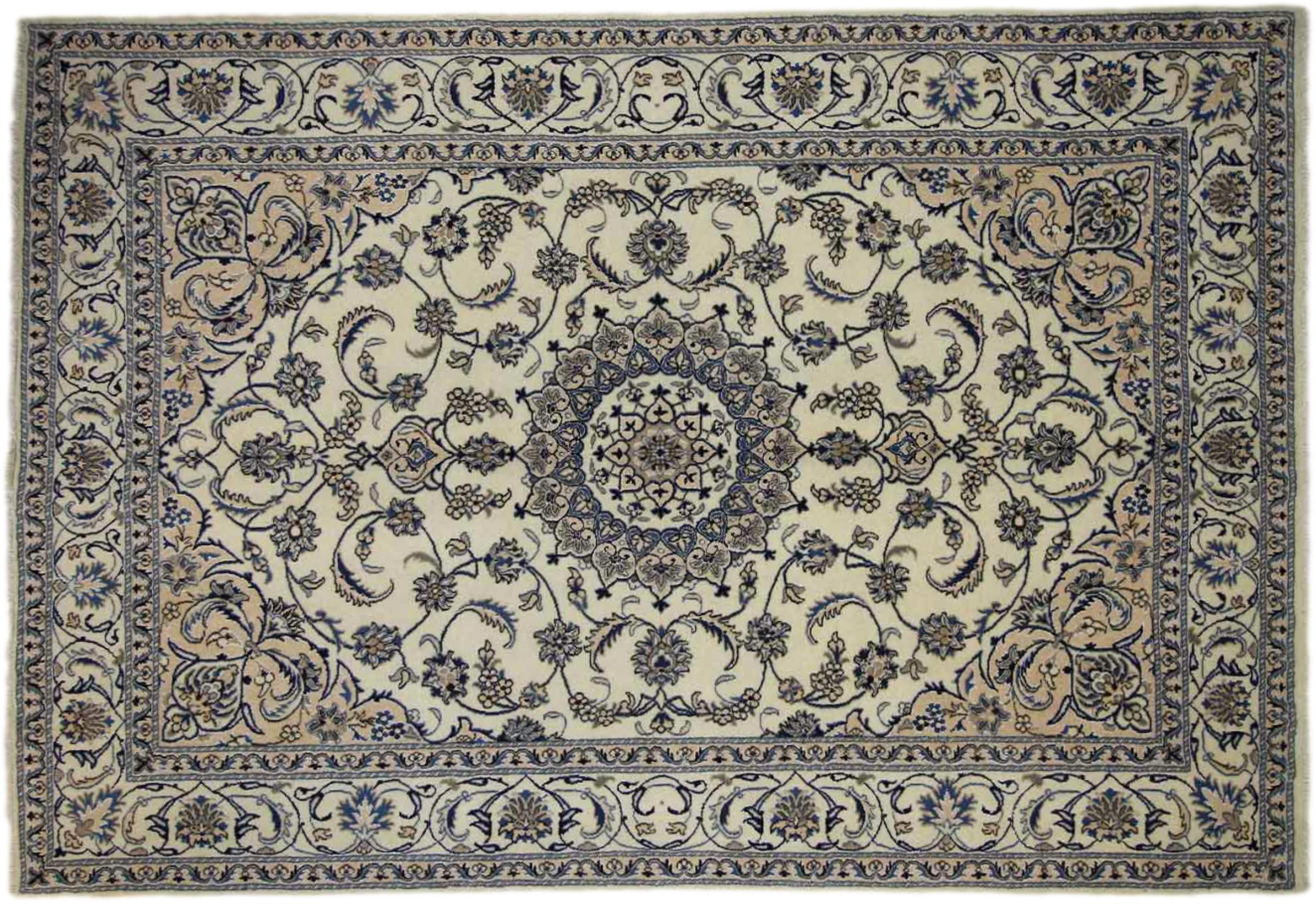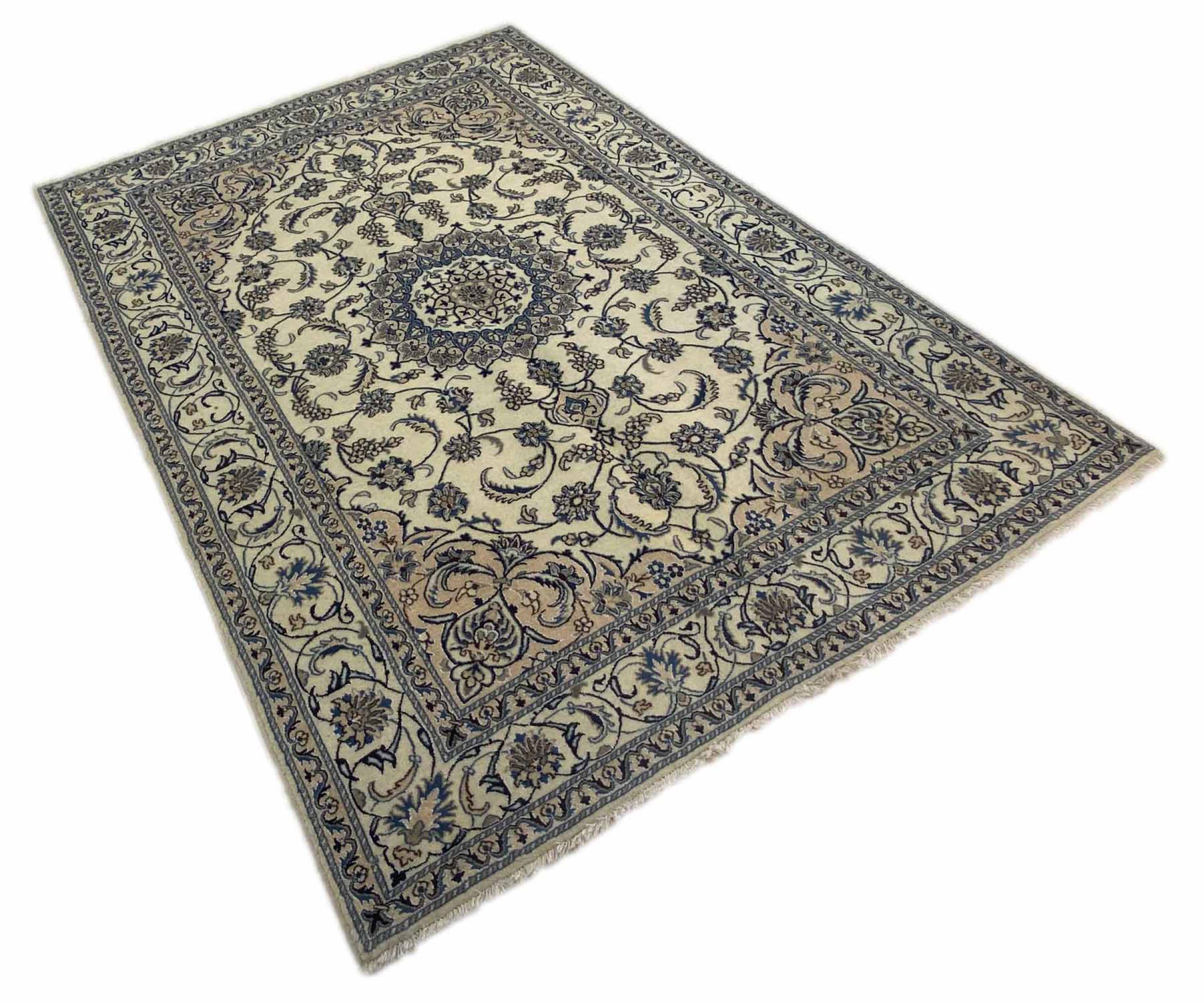 Las alfombras de la ciudad de Nain, en la frontera de uno de los mayores desiertos de Irán, están entre las alfombras persas más famosas del mundo. Su diseño típico es inconfundible con adornos florales, un medallón central y tonos beige y rojo o azul. Gracias a sus designaciones 4La, 6La, 9La y 12La, las sutilezas de una alfombra de Nain se pueden ver a simple vista. Cuanto más bajo sea el número "La", más alta es la densidad del nudo y por lo tanto más fina es la alfombra.