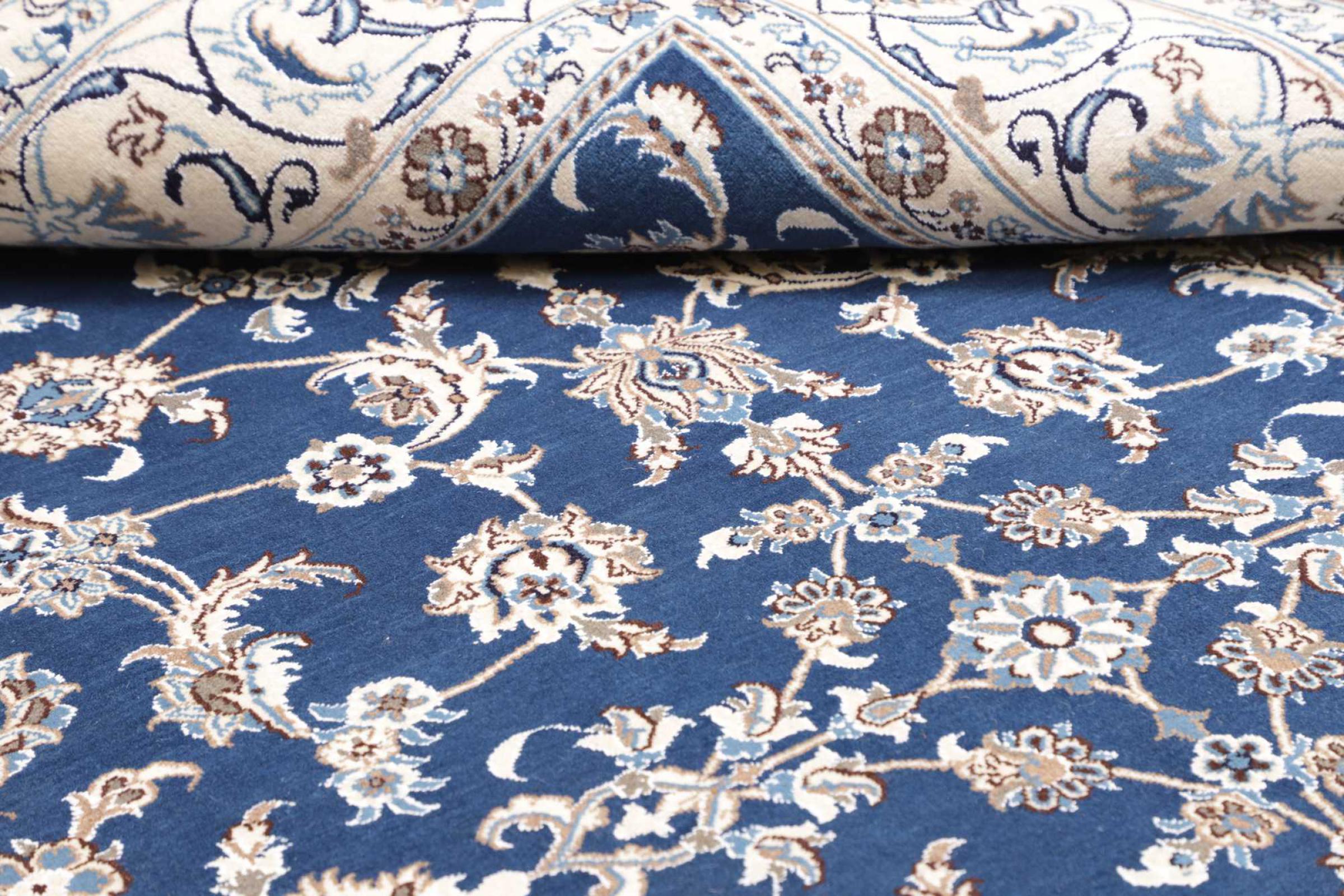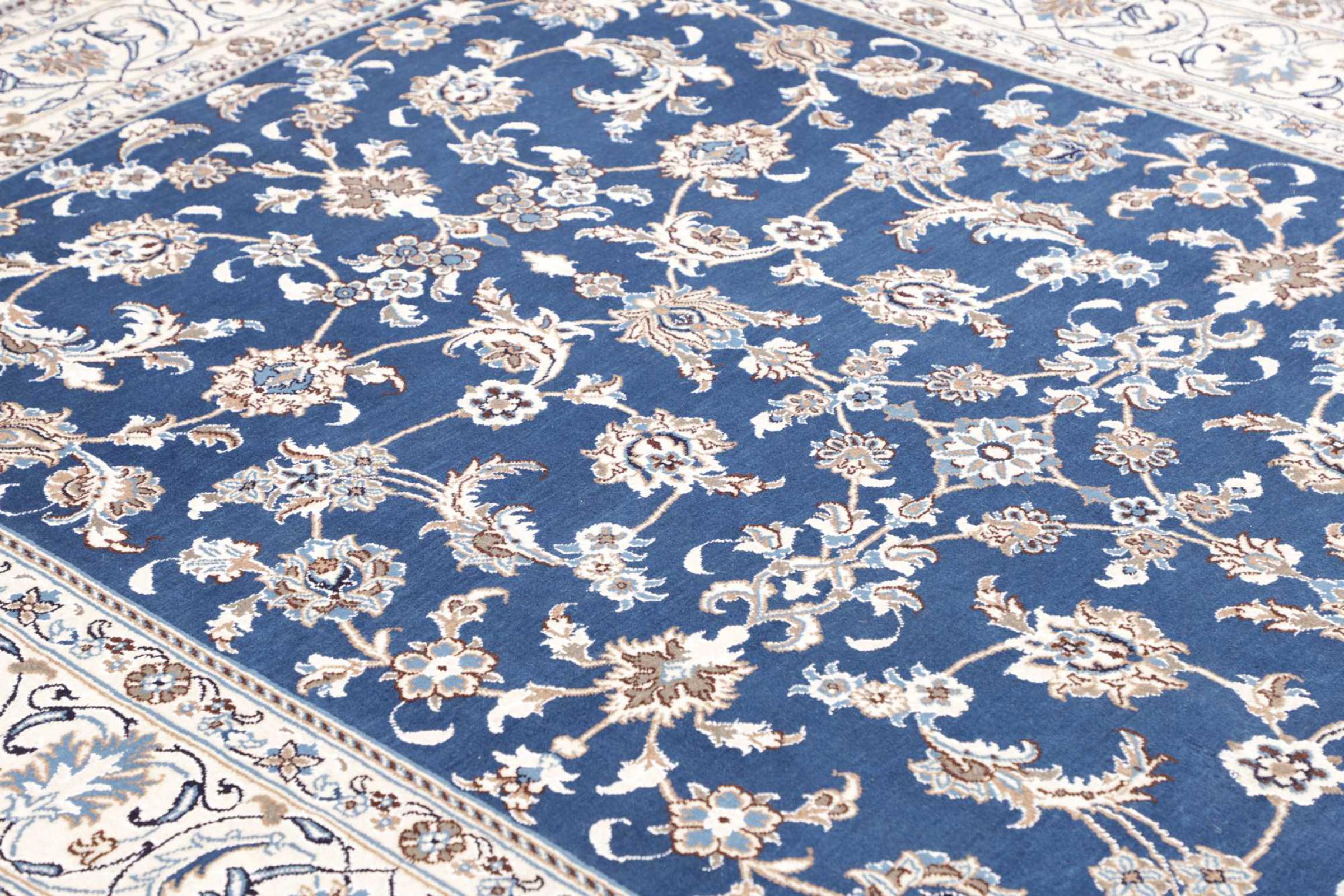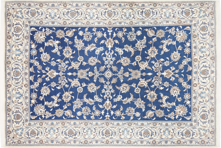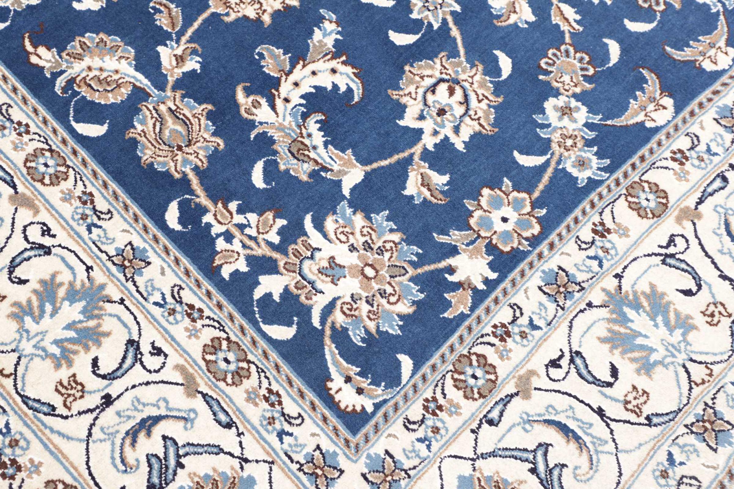 Esta alfombra Nain está clasificada como 12La. Tiene un aspecto elegante y refinado con su colorido típico de Naín. Esta alfombra persa fue anudada a mano en la ciudad de Naín, situada en el extremo occidental del desierto de Dasht-e-Kavir, con lana de alta calidad y seda natural. Con un tamaño de 12La, no está tan finamente detallada con ornamentos como una Nain 9La o 6La.