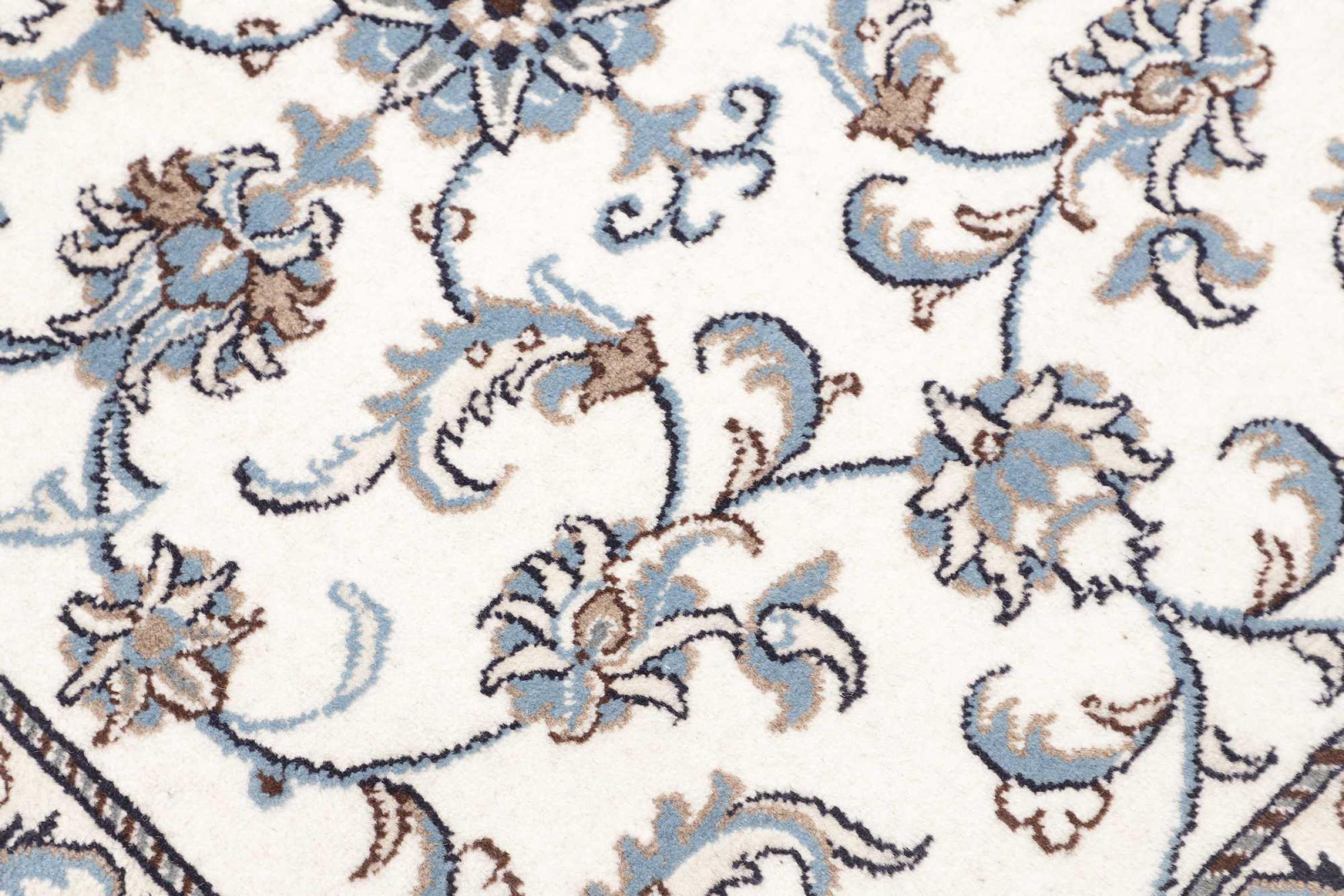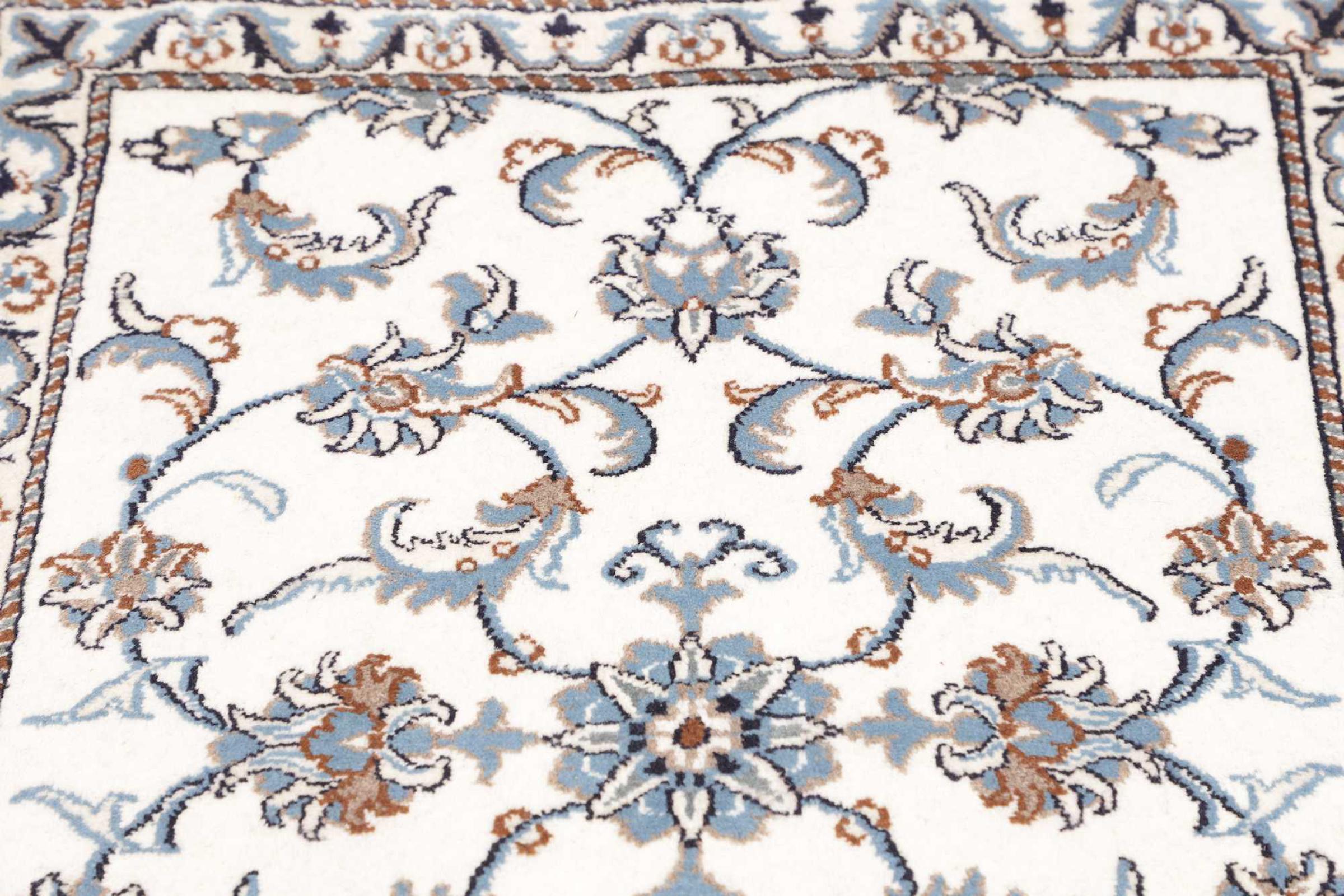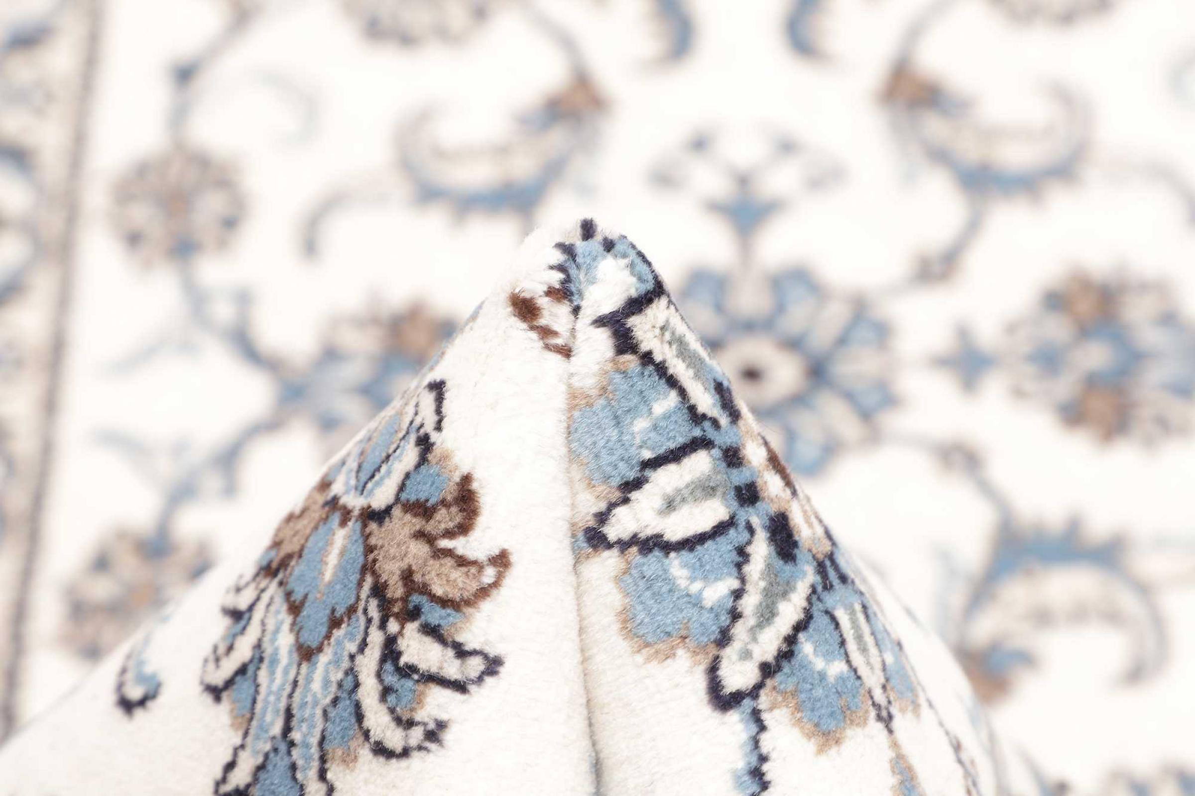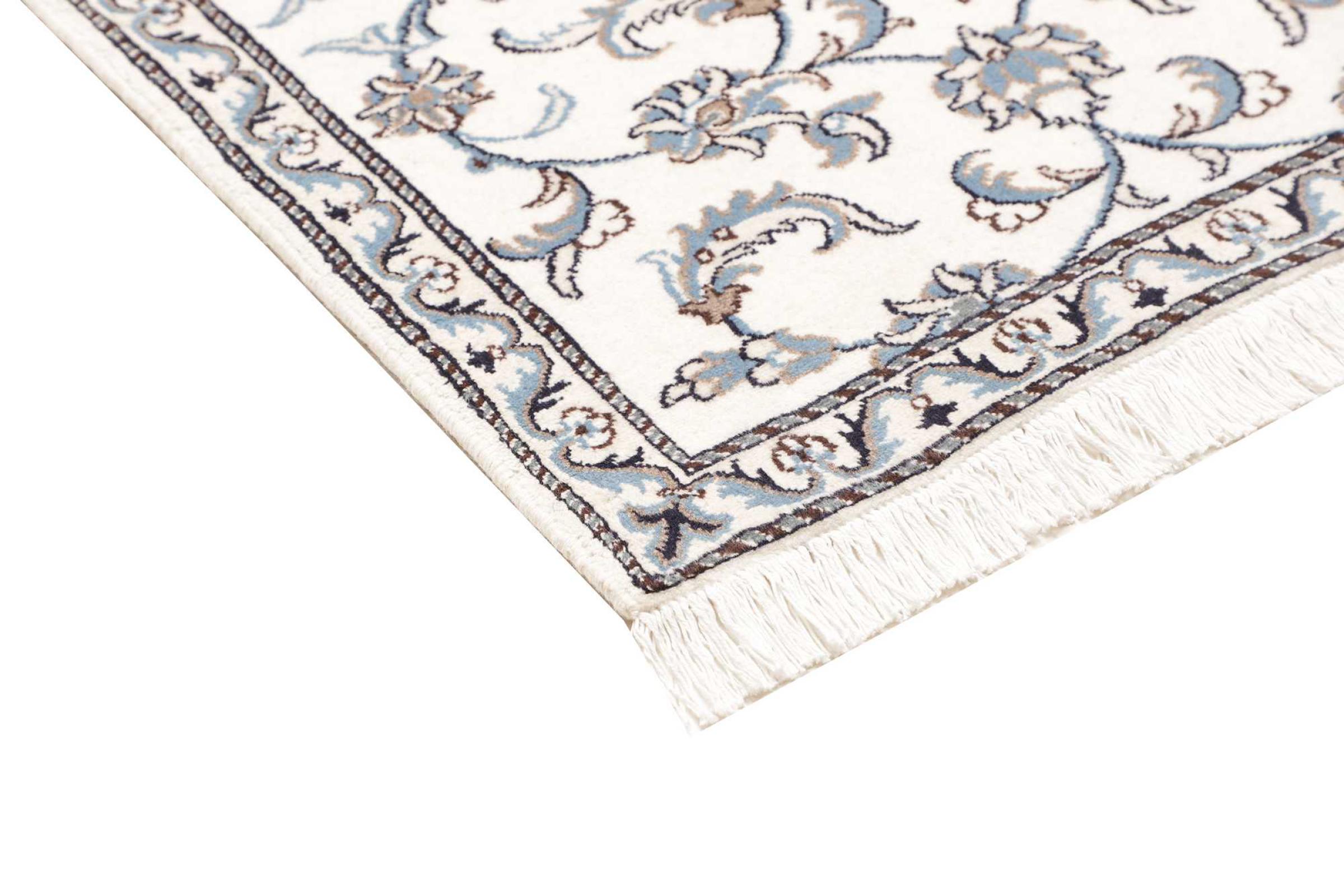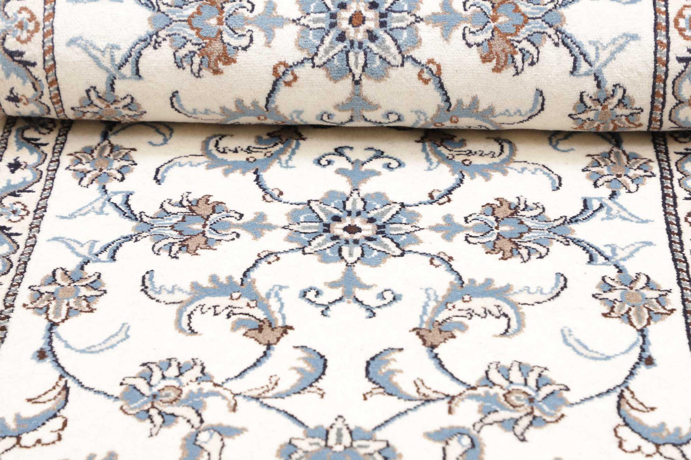 Esta alfombra Nain está clasificada como 12La. Tiene un aspecto elegante y refinado con su colorido típico de Naín. Esta alfombra persa fue anudada a mano en la ciudad de Naín, situada en el extremo occidental del desierto de Dasht-e-Kavir, con lana de alta calidad y seda natural. Con un tamaño de 12La, no está tan finamente detallada con ornamentos como una Nain 9La o 6La.