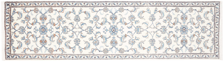 Alfombra número: 312902003972695 Tamaño: 302x79 cm Espesor: alrededor de 12 mm Nudos: 128 000 - 160 000 / m² Elaboración: Anudado a mano Crespón: Lana con seda Urdimbre: Algodón Origen: Persia / Iran Edad: Nuevo Peso: alrededor de 10 kg Cantidad en stock: Única - Solo 1 en stock
