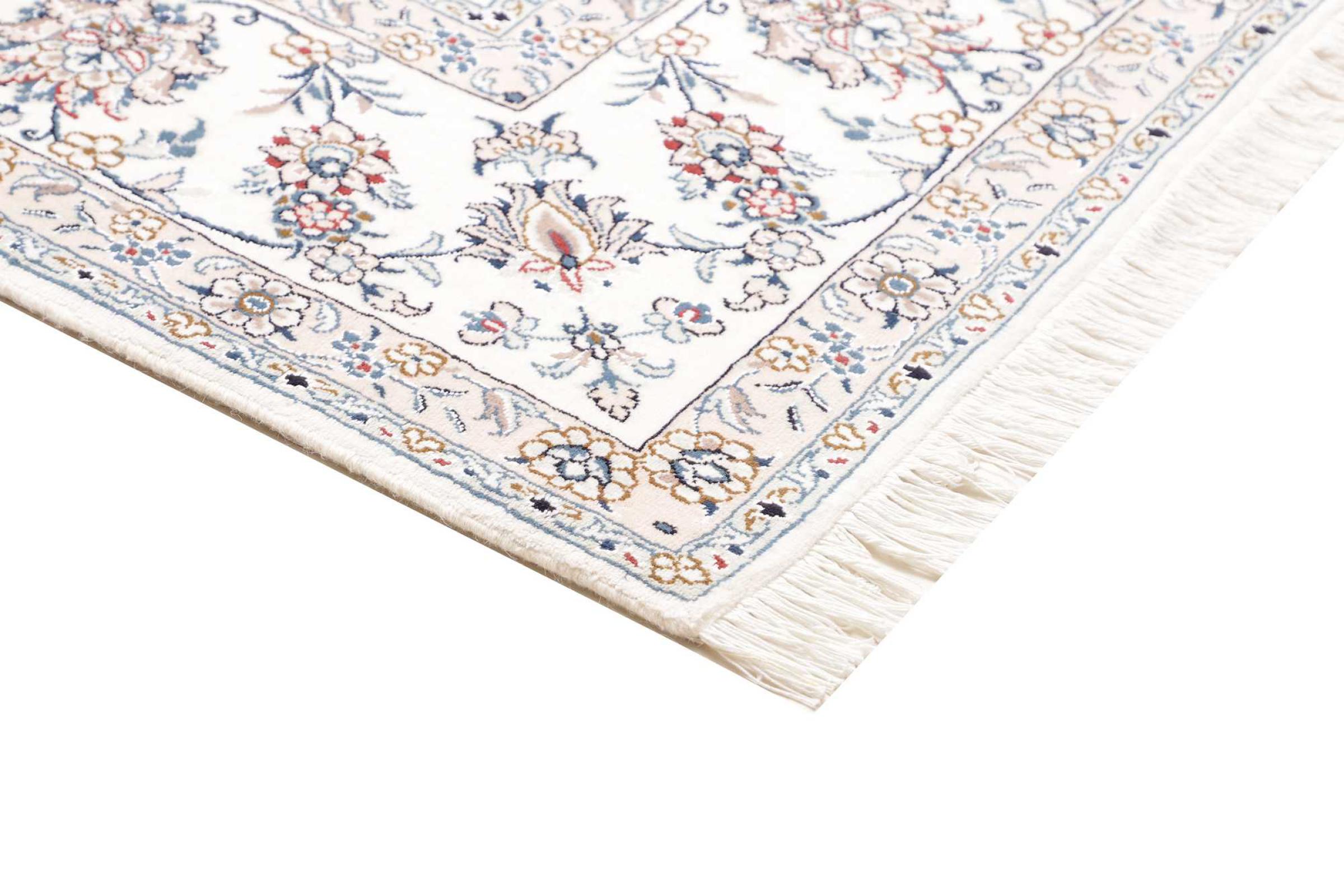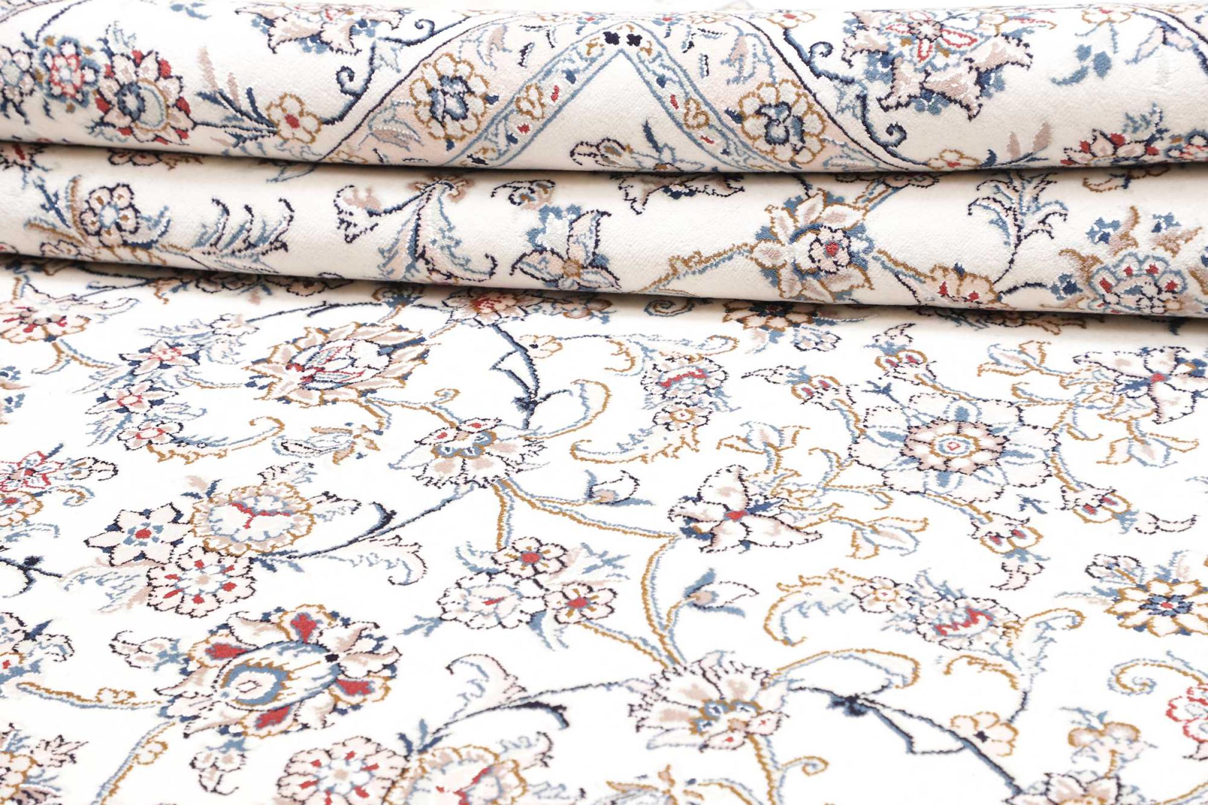 Las alfombras de la ciudad de Nain, en la frontera de uno de los mayores desiertos de Irán, están entre las alfombras persas más famosas del mundo. Su diseño típico es inconfundible con adornos florales, un medallón central y tonos beige y rojo o azul. Gracias a sus designaciones 4La, 6La, 9La y 12La, las sutilezas de una alfombra de Nain se pueden ver a simple vista. Cuanto más bajo sea el número "La", más alta es la densidad del nudo y por lo tanto más fina es la alfombra.