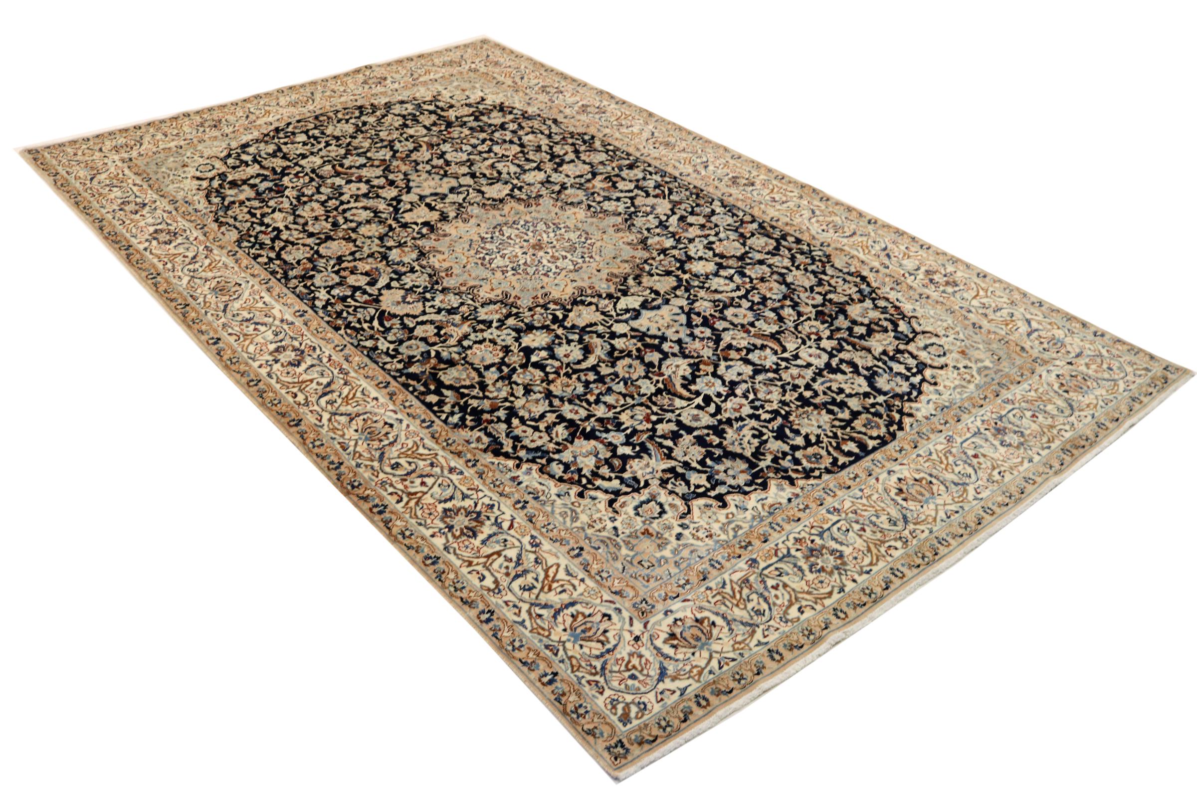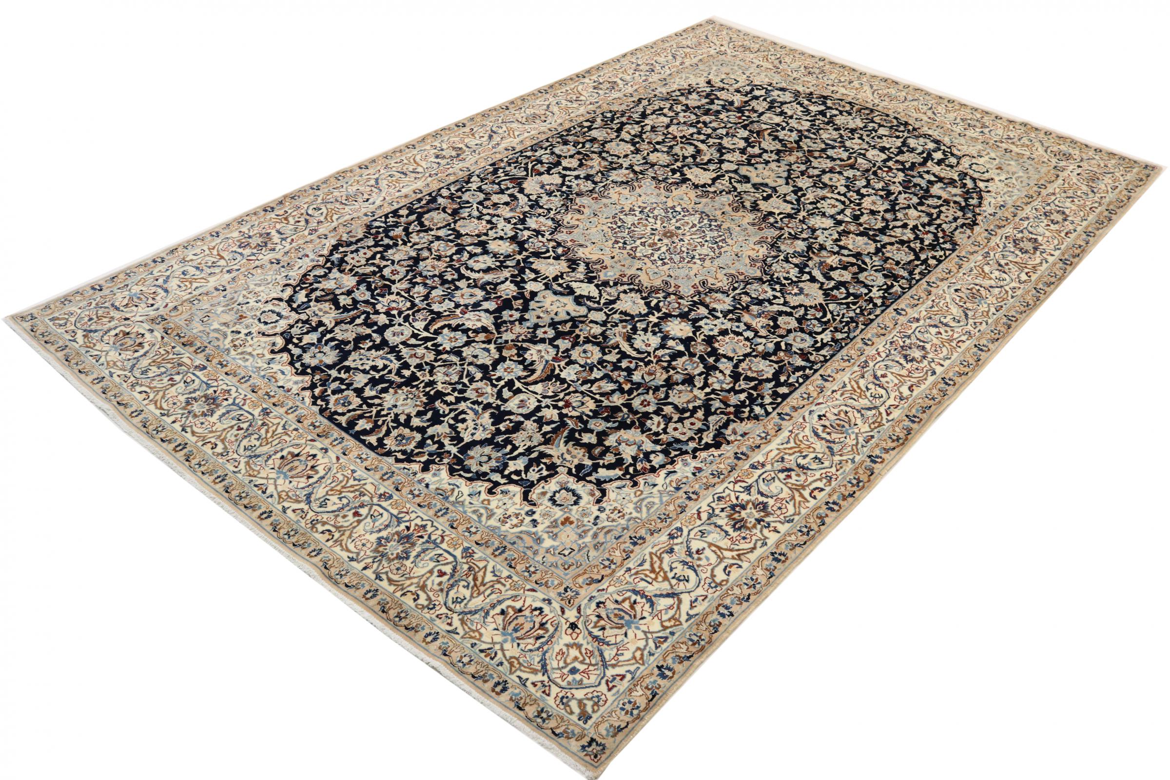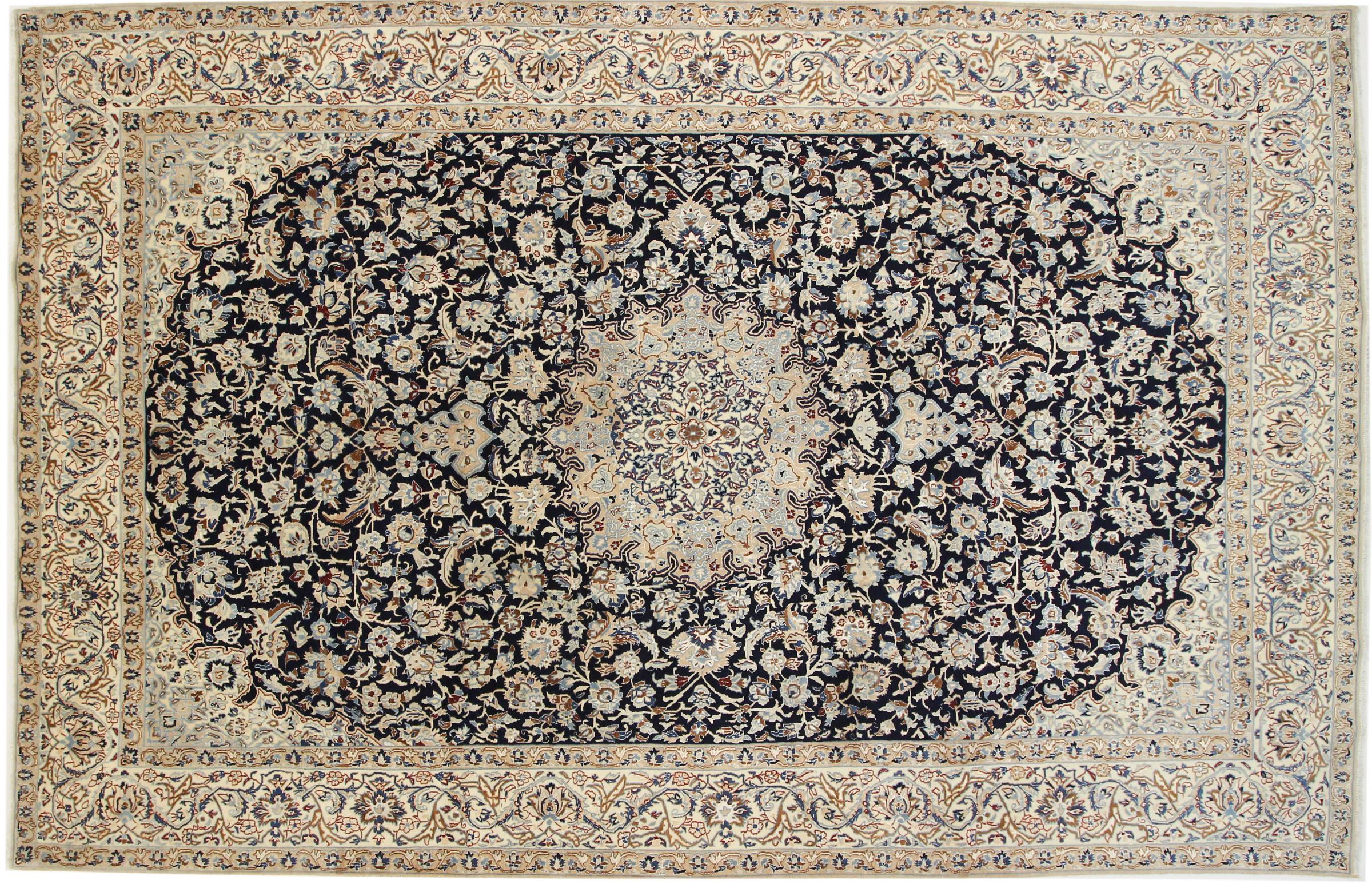 Las alfombras de la ciudad de Nain, en la frontera de uno de los mayores desiertos de Irán, están entre las alfombras persas más famosas del mundo. Su diseño típico es inconfundible con adornos florales, un medallón central y tonos beige y rojo o azul. Gracias a sus designaciones 4La, 6La, 9La y 12La, las sutilezas de una alfombra de Nain se pueden ver a simple vista. Cuanto más bajo sea el número "La", más alta es la densidad del nudo y por lo tanto más fina es la alfombra.