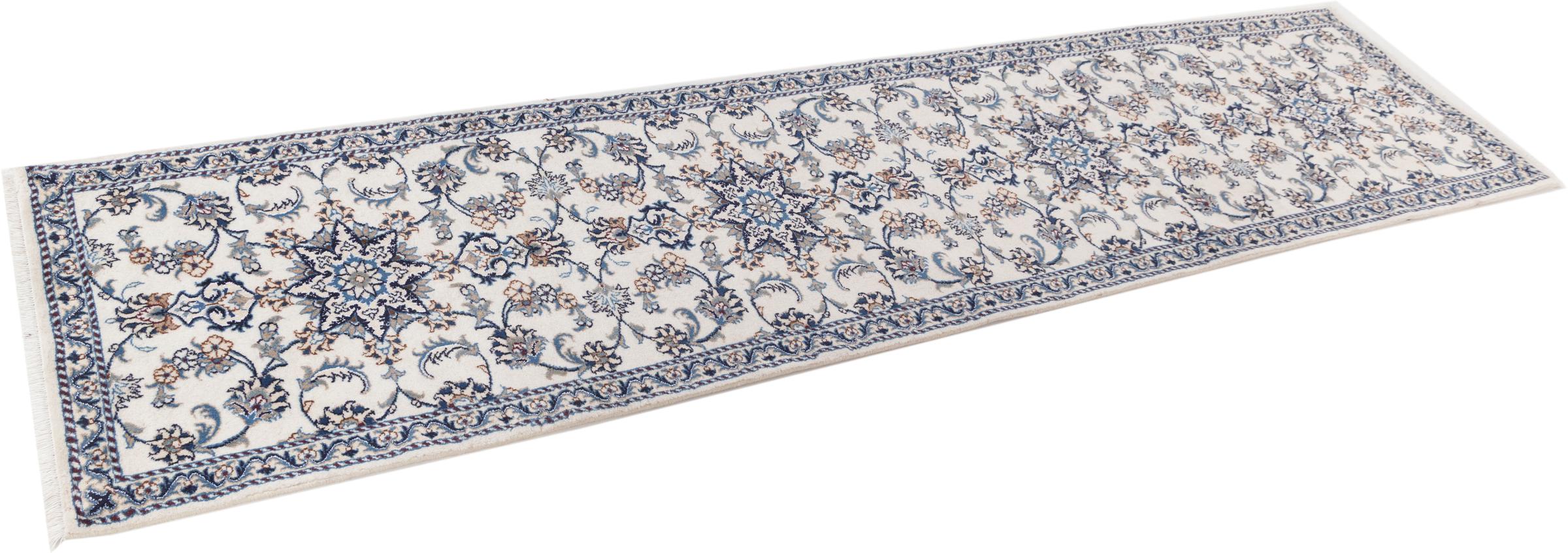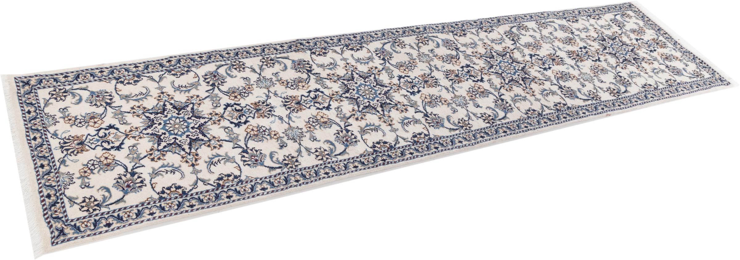Alfombra número: 2939870021549 Tamaño: 390x80 cm Espesor: alrededor de 12 mm Nudos: 200 000 - 250 000 / m² Elaboración: Anudado a mano Crespón: Lana con seda Urdimbre: Algodón Origen: Persia / Iran Edad: Nuevo Peso: alrededor de 11 kg Cantidad en stock: Única - Solo 1 en stock