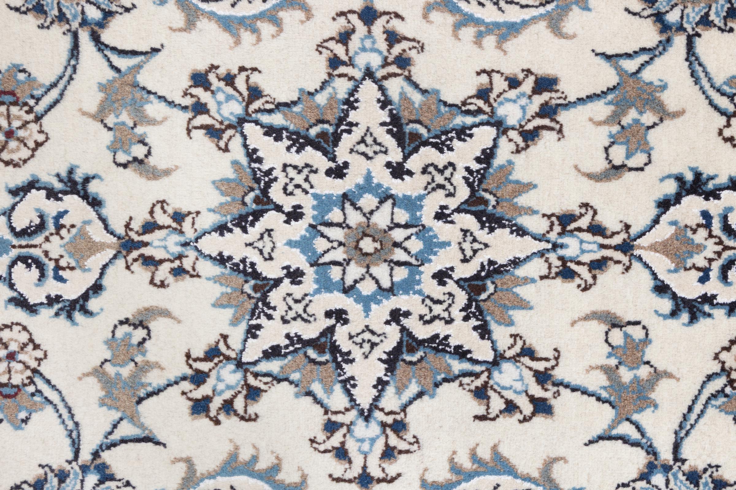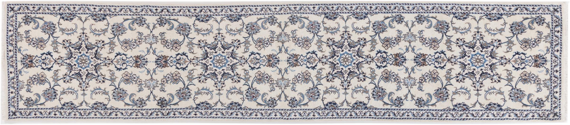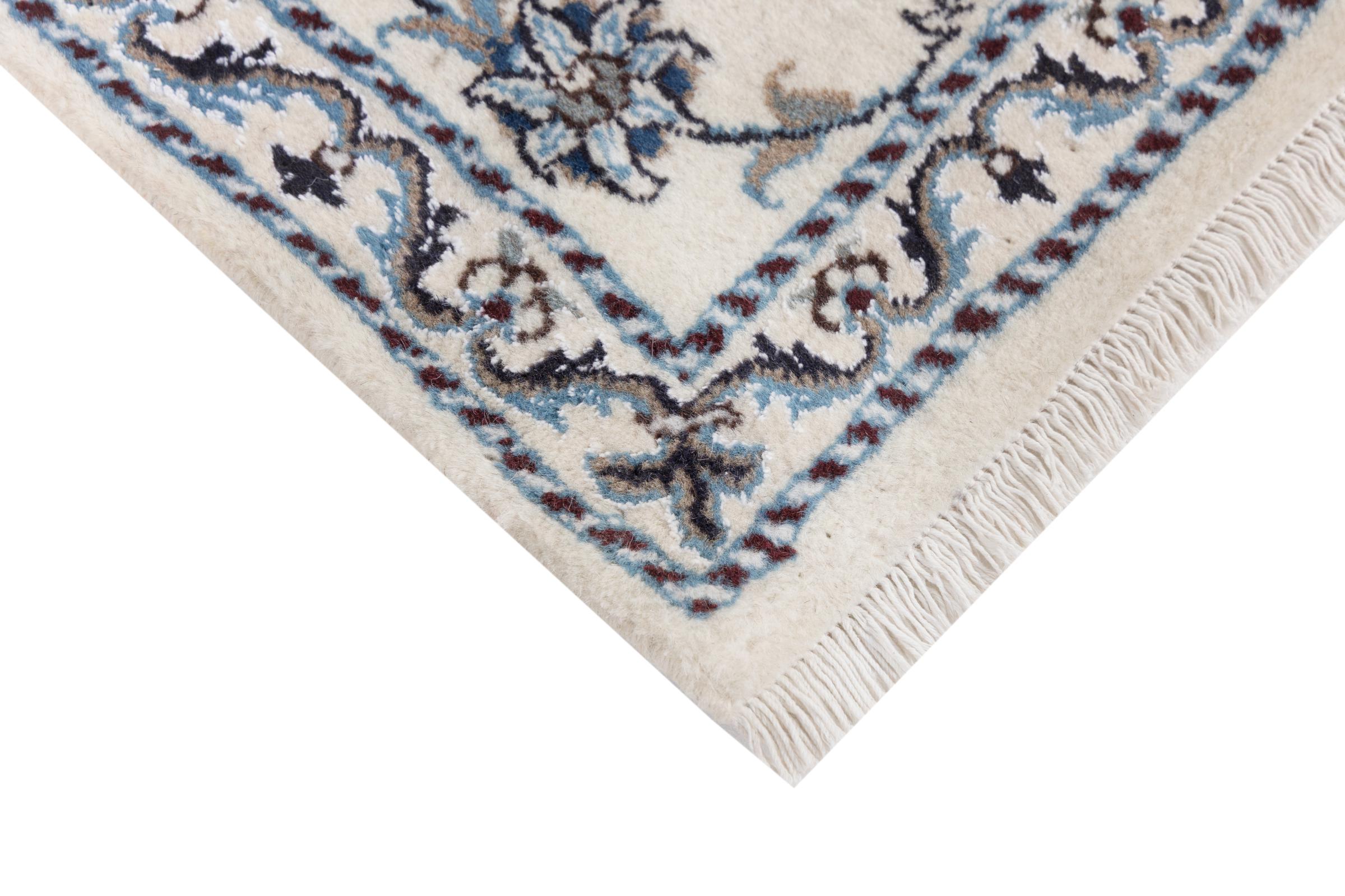 Esta alfombra Nain está clasificada como 12La. Tiene un aspecto elegante y refinado con su colorido típico de Naín. Esta alfombra persa fue anudada a mano en la ciudad de Naín, situada en el extremo occidental del desierto de Dasht-e-Kavir, con lana de alta calidad y seda natural. Con un tamaño de 12La, no está tan finamente detallada con ornamentos como una Nain 9La o 6La.