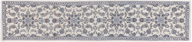 Alfombra número: 2940260021466 Tamaño: 395x80 cm Espesor: alrededor de 12 mm Nudos: 200 000 - 250 000 / m² Elaboración: Anudado a mano Crespón: Lana con seda Urdimbre: Algodón Origen: Persia / Iran Edad: Nuevo Peso: alrededor de 11 kg Cantidad en stock: Única - Solo 1 en stock