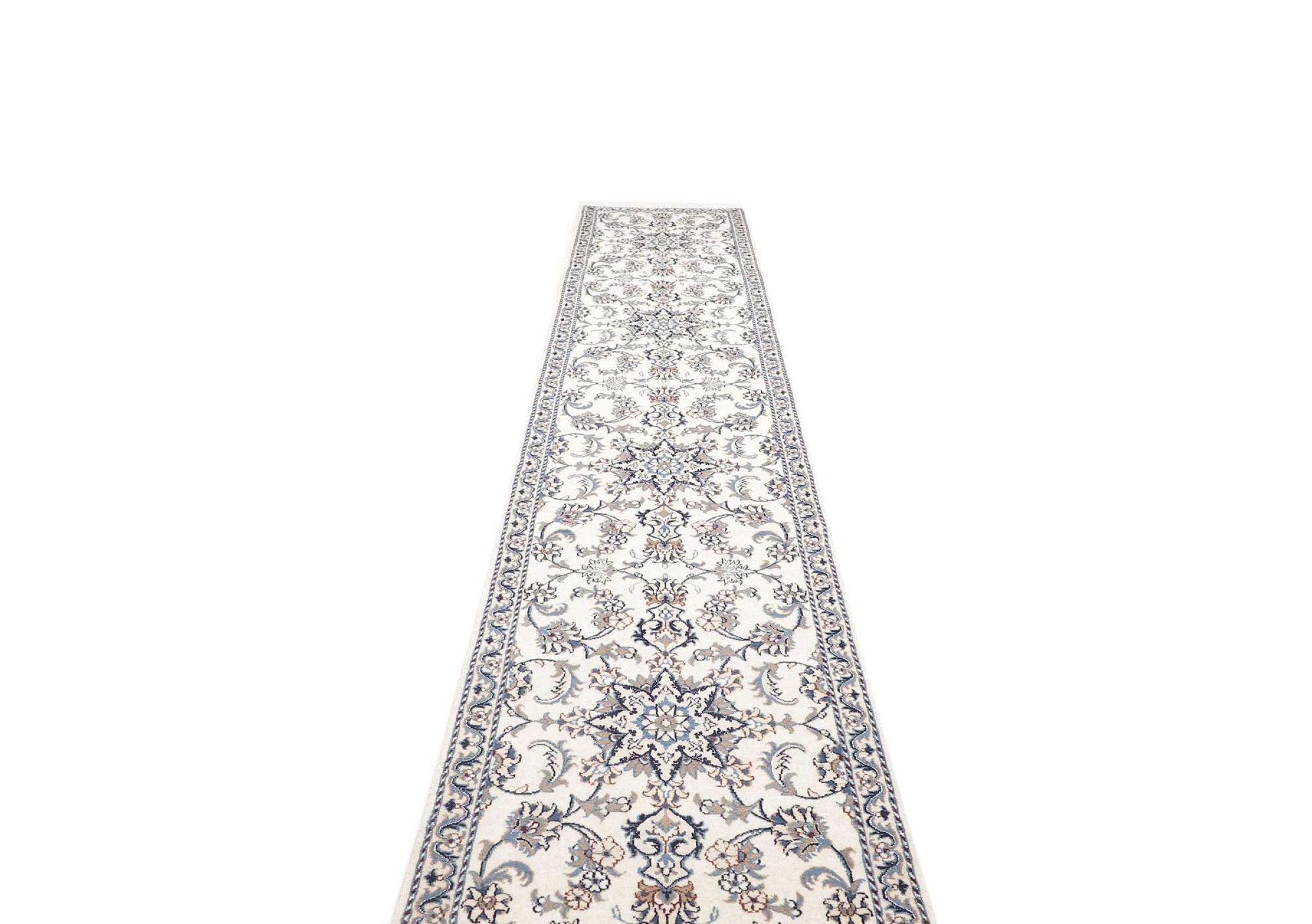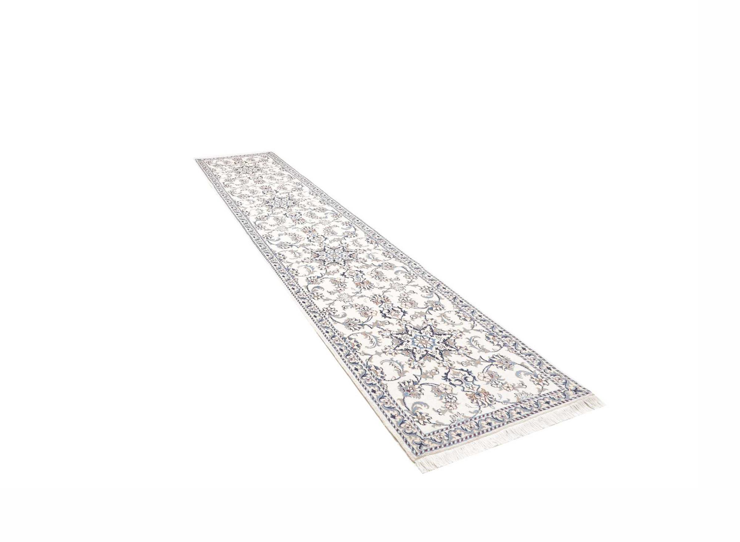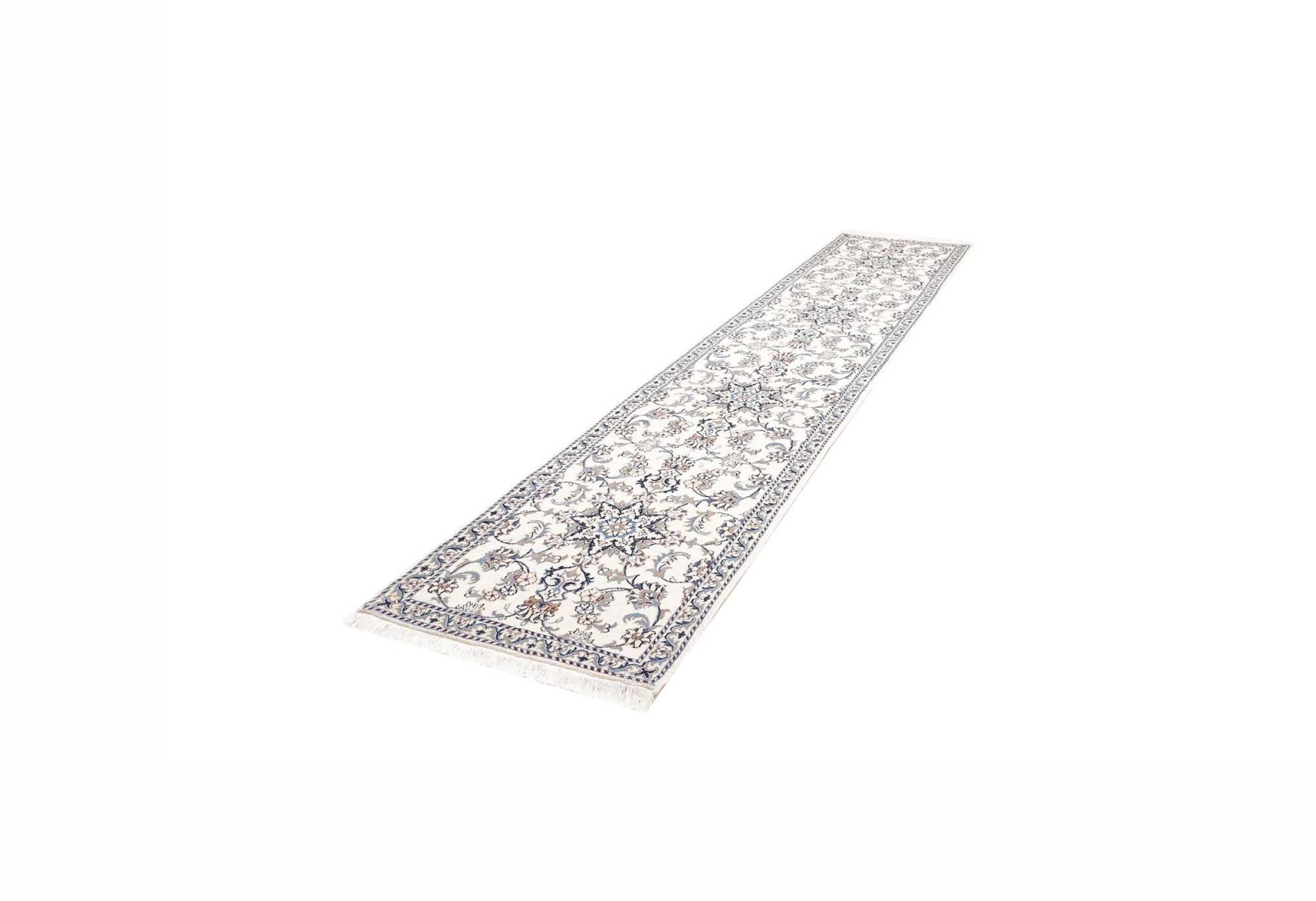 Alfombra número: 312901009960033 Tamaño: 404x84 cm Espesor: alrededor de 12 mm Nudos: 128 000 - 160 000 / m² Elaboración: Anudado a mano Crespón: Lana con seda Urdimbre: Algodón Origen: Persia / Iran Edad: Nuevo Peso: alrededor de 14 kg Cantidad en stock: Única - Solo 1 en stock