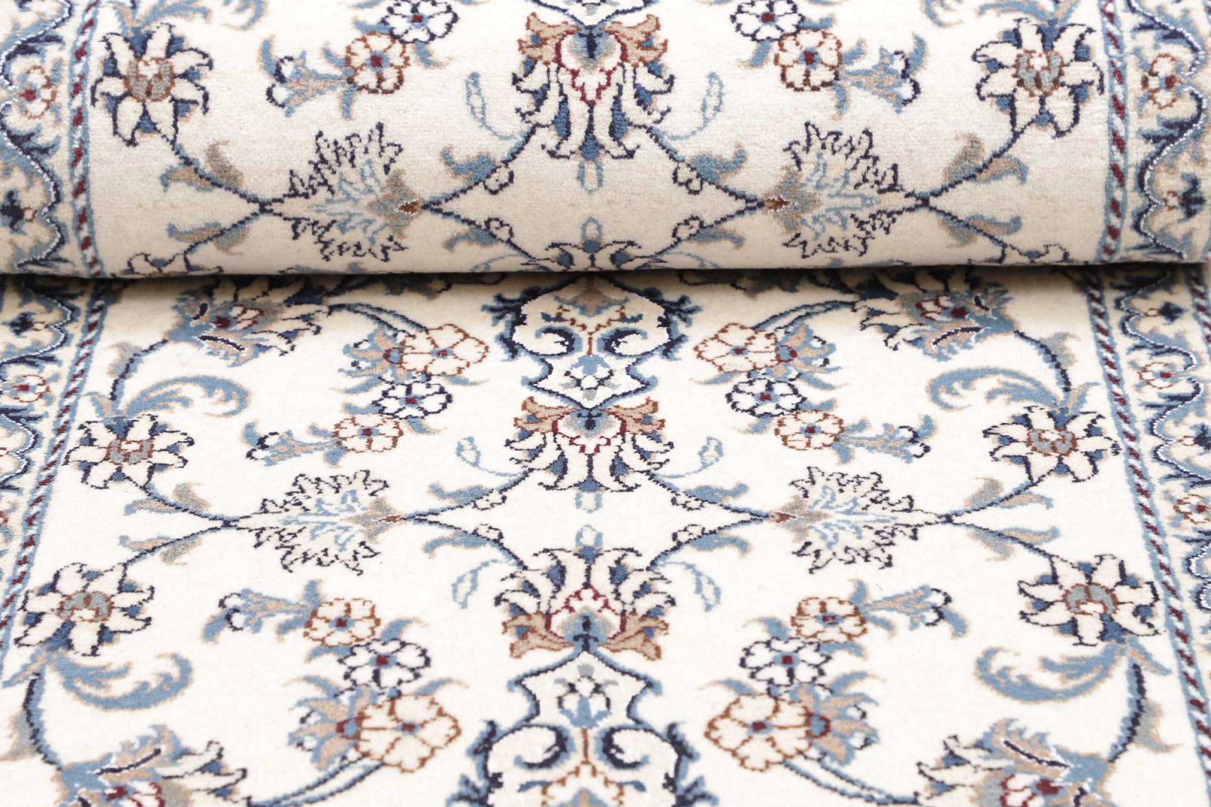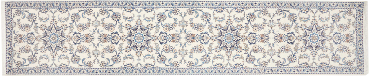 Esta alfombra Nain está clasificada como 12La. Tiene un aspecto elegante y refinado con su colorido típico de Naín. Esta alfombra persa fue anudada a mano en la ciudad de Naín, situada en el extremo occidental del desierto de Dasht-e-Kavir, con lana de alta calidad y seda natural. Con un tamaño de 12La, no está tan finamente detallada con ornamentos como una Nain 9La o 6La.
