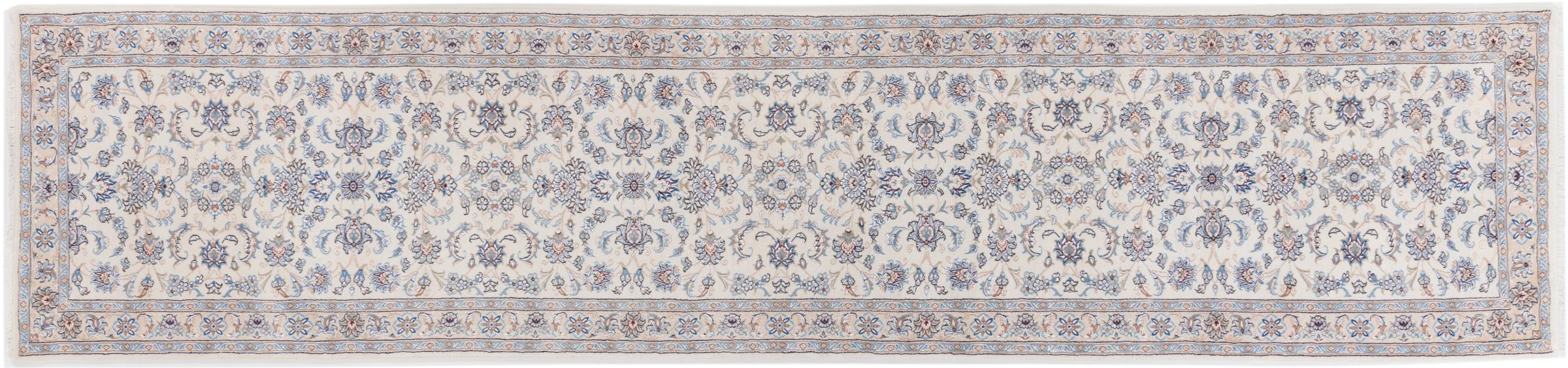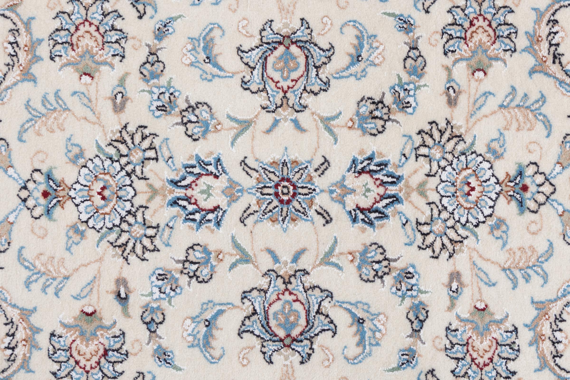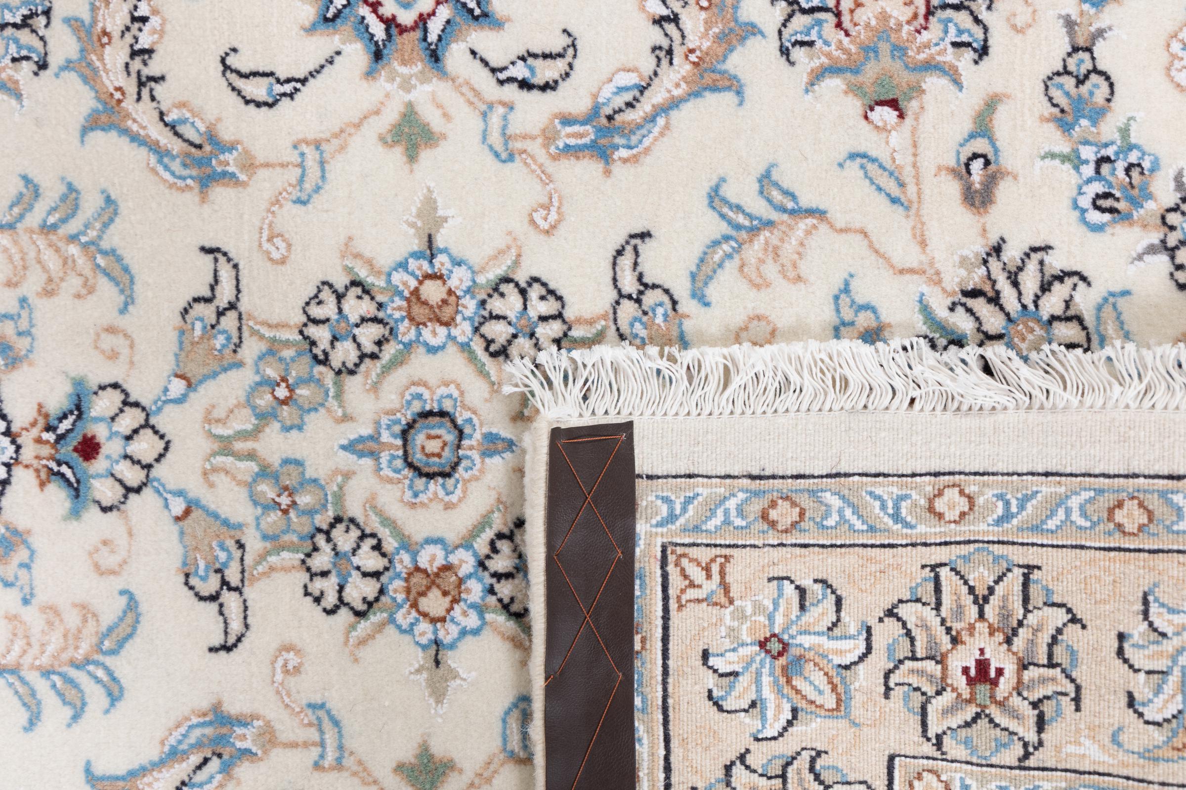 Esta alfombra Nain está clasificada como 9La. Su excelente calidad y su bello diseño oriental con motivos curvilíneos harán las delicias de cualquier comprador. Esta alfombra persa fue anudada a mano en la ciudad de Nain, situada en el extremo occidental del desierto de Dasht-e-Kavir, con lana de alta calidad y seda natural. Las alfombras Nain 9La son claramente más finas que las 12La y ya muestran bellos detalles.