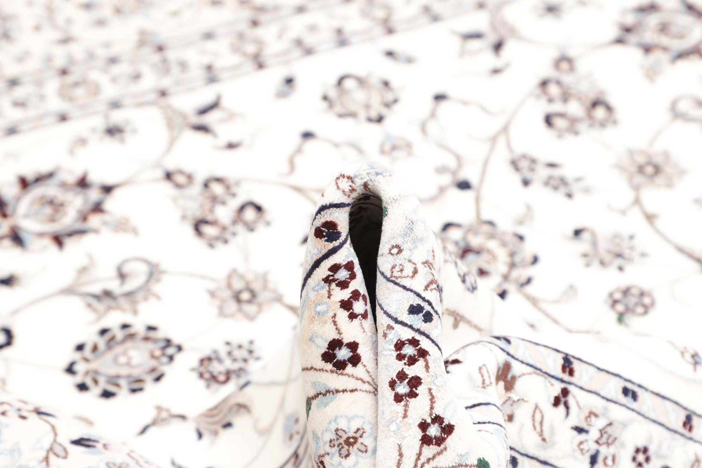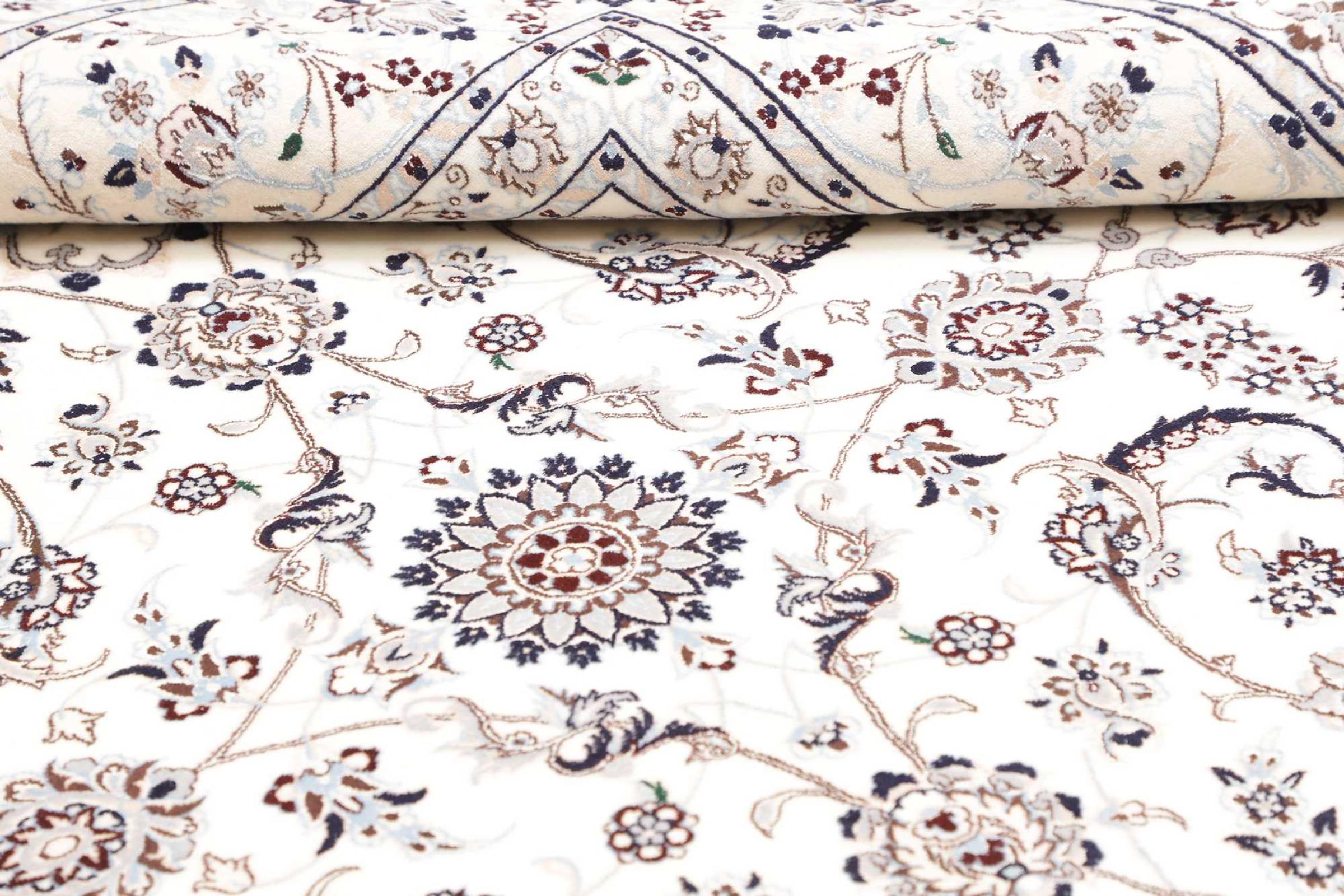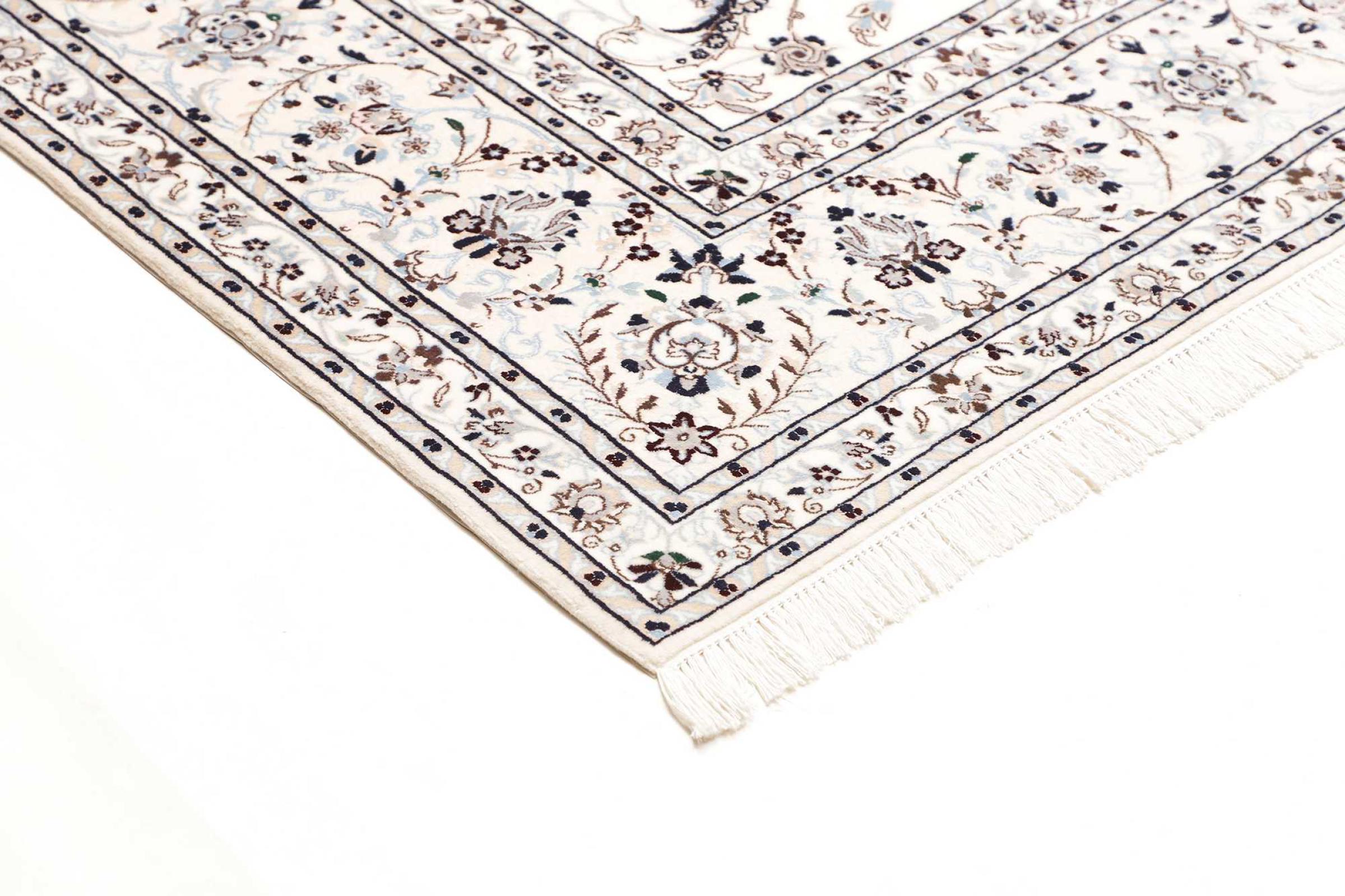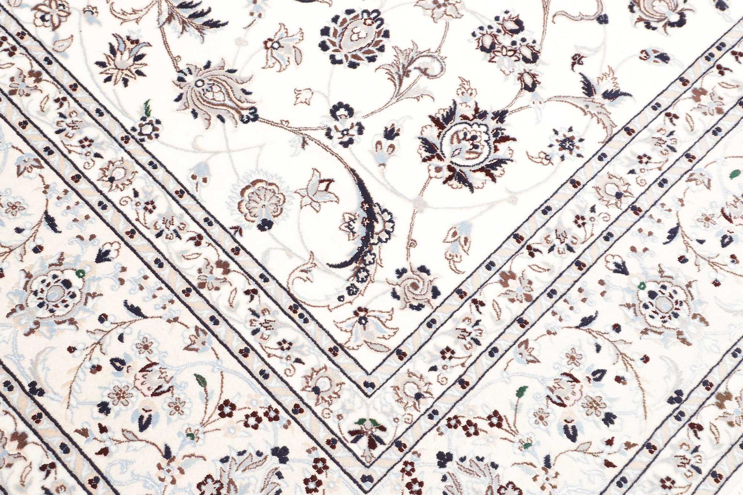 Esta alfombra Nain aporta una combinación perfecta de calidad, tradición y un diseño inconfundible. Fue elaborada en la ciudad de Nain, con lana de corcho de alta calidad y anudada a mano con seda natural. A los amantes de las valiosas alfombras iraníes les encantará esta alfombra persa. Con las alfombras Nain de la clasificación 6La y 4La no existe lugar para errores.
