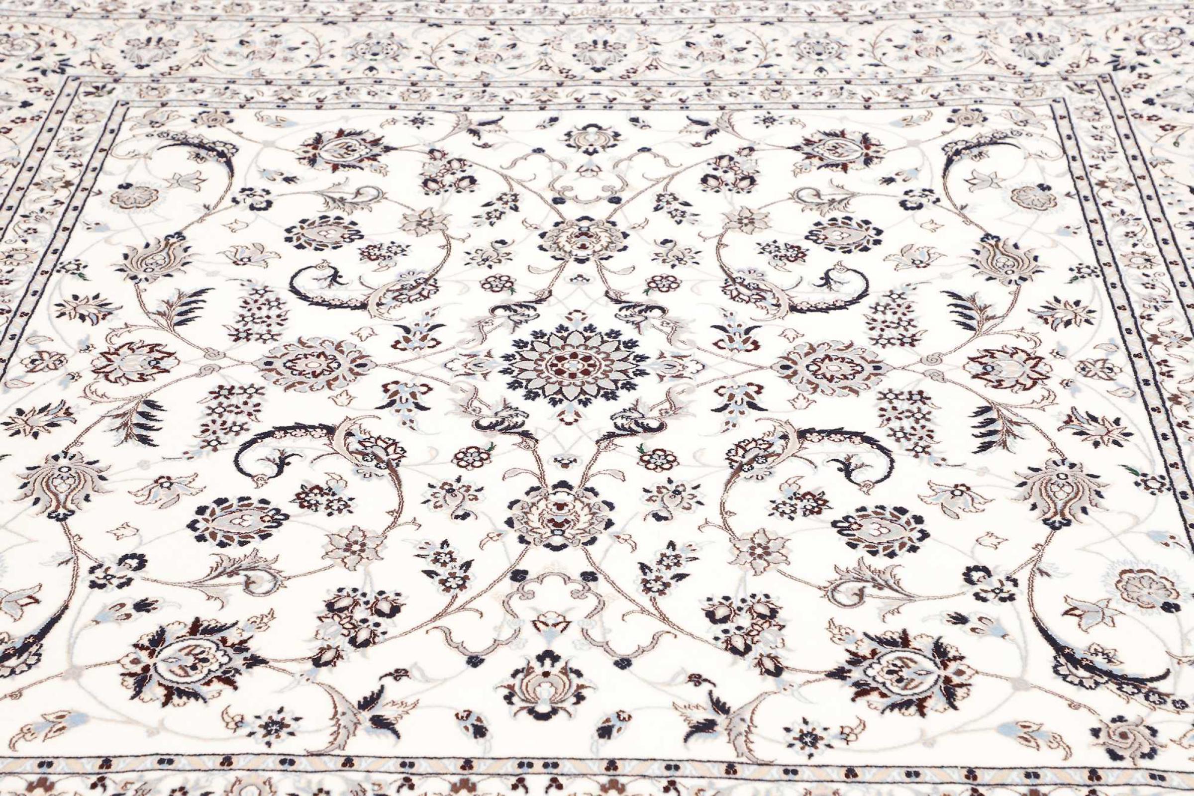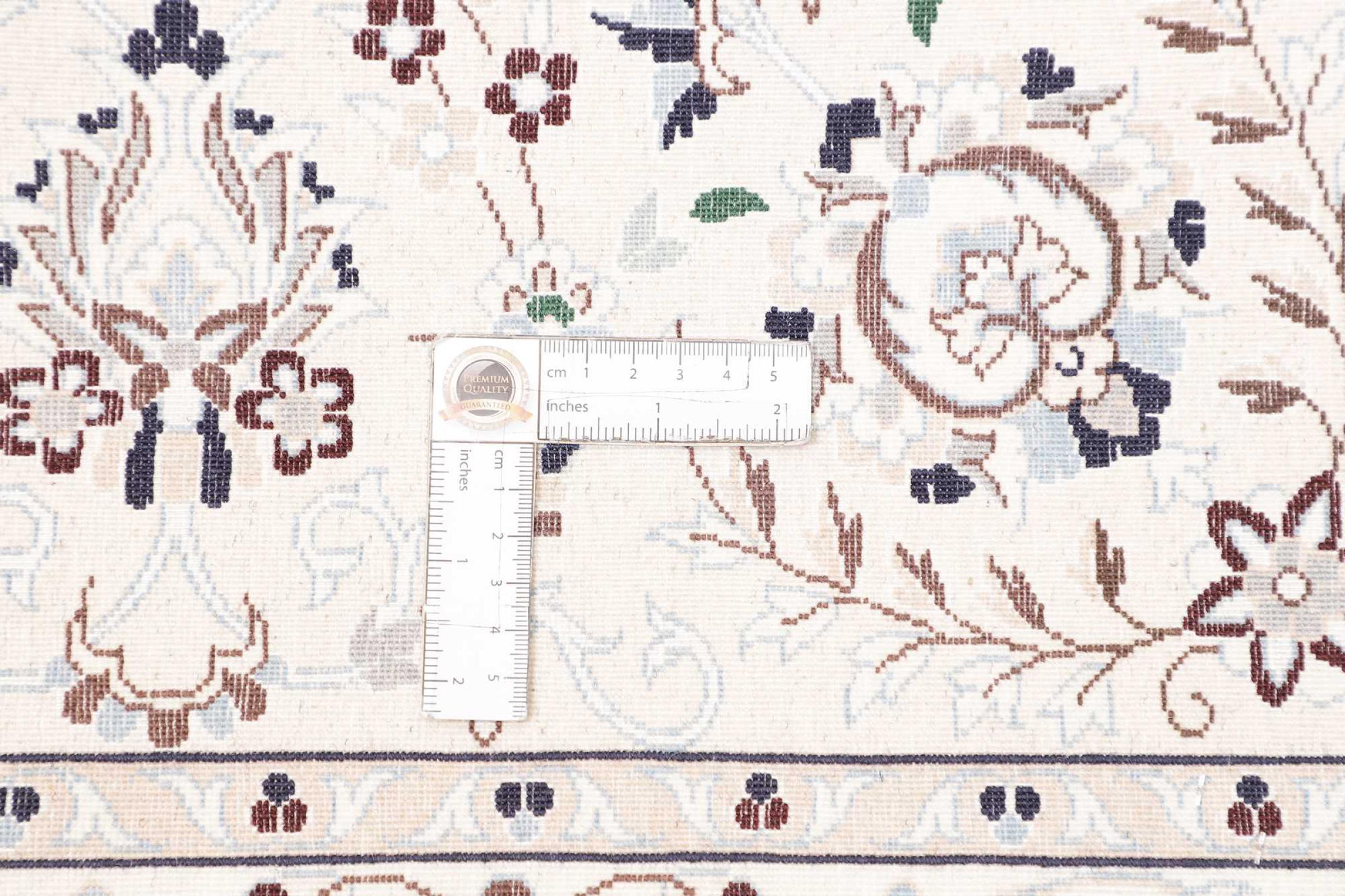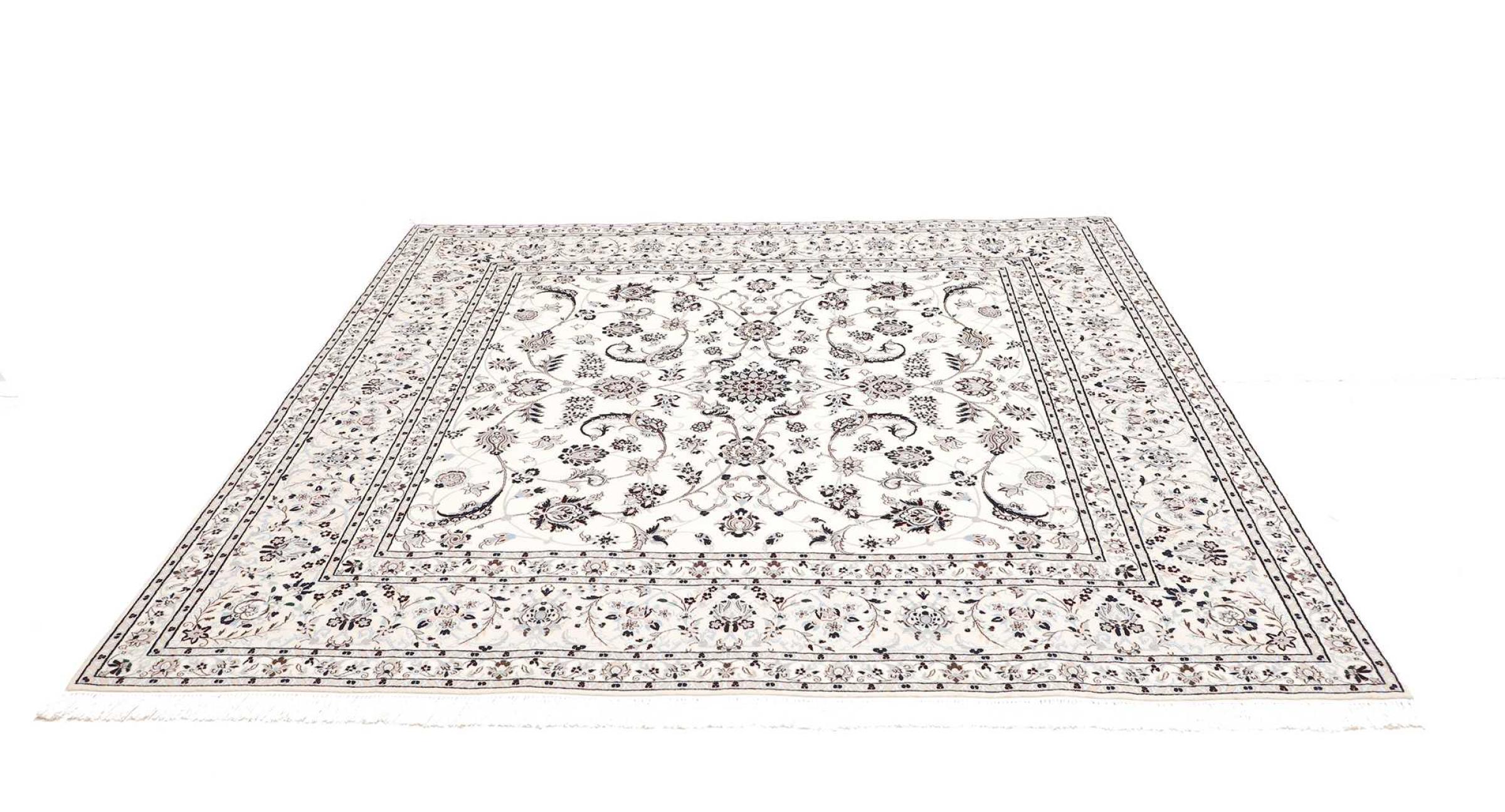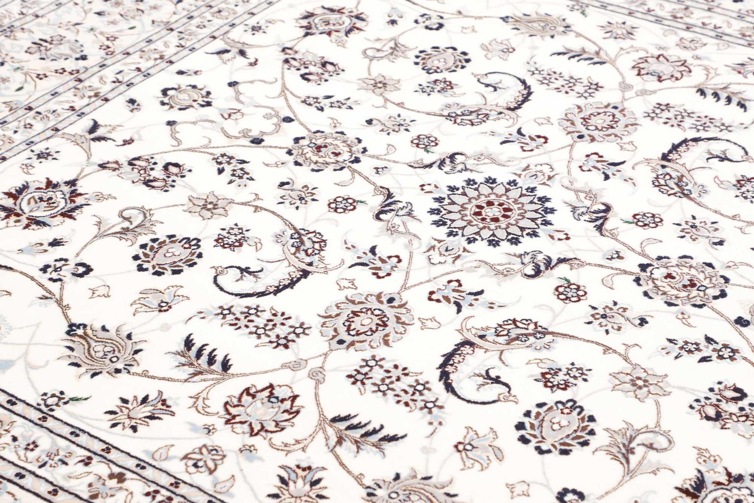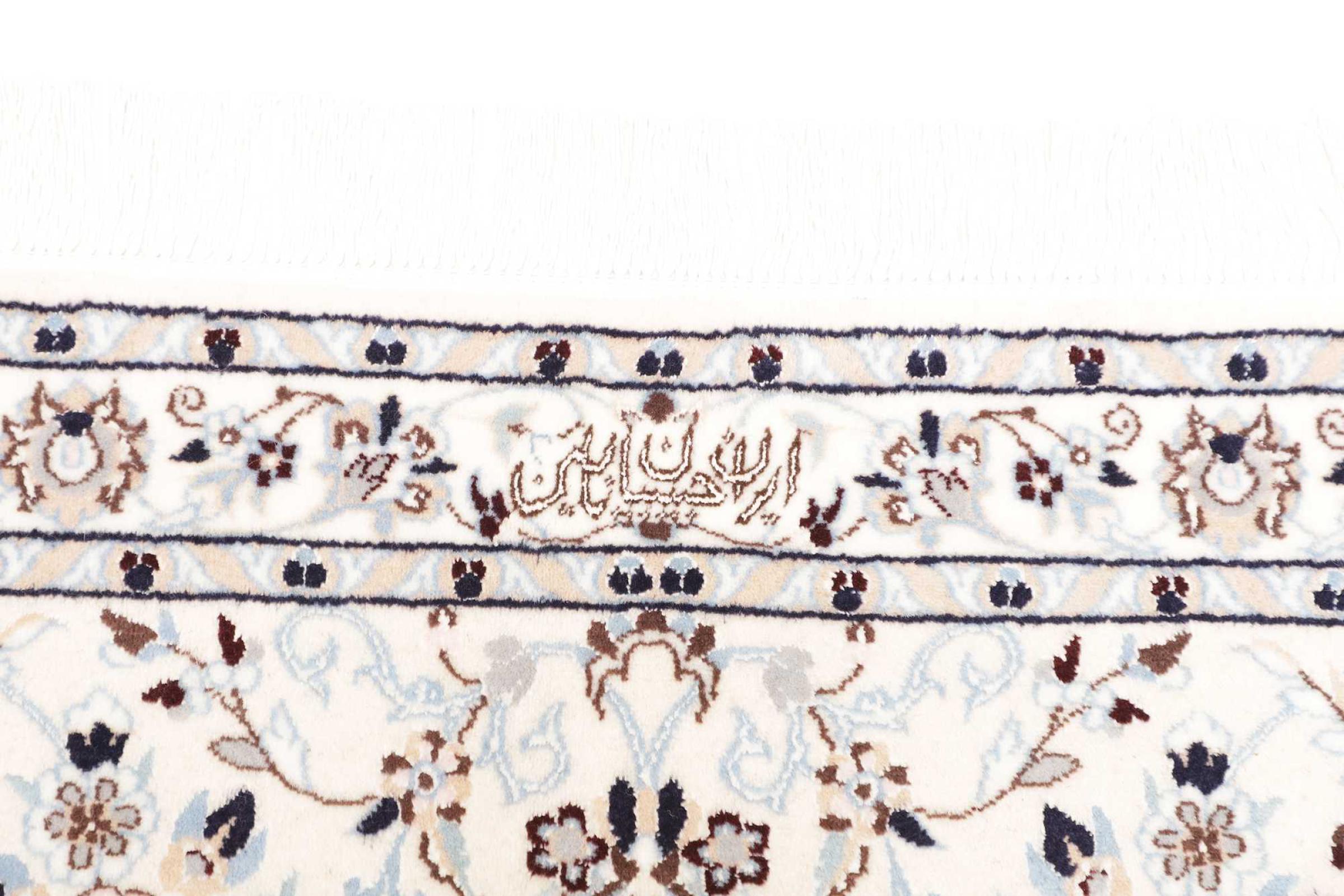 Esta alfombra Nain aporta una combinación perfecta de calidad, tradición y un diseño inconfundible. Fue elaborada en la ciudad de Nain, con lana de corcho de alta calidad y anudada a mano con seda natural. A los amantes de las valiosas alfombras iraníes les encantará esta alfombra persa. Con las alfombras Nain de la clasificación 6La y 4La no existe lugar para errores.