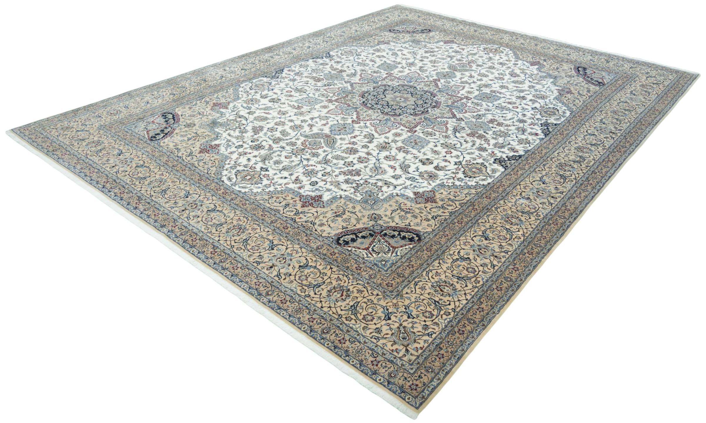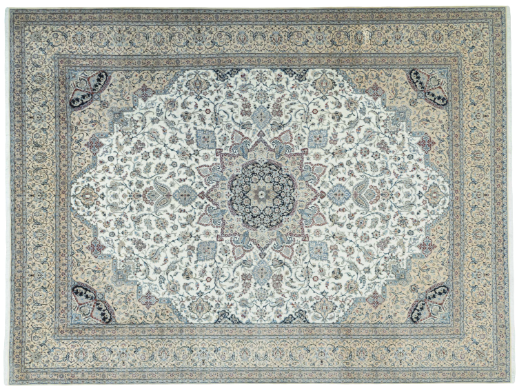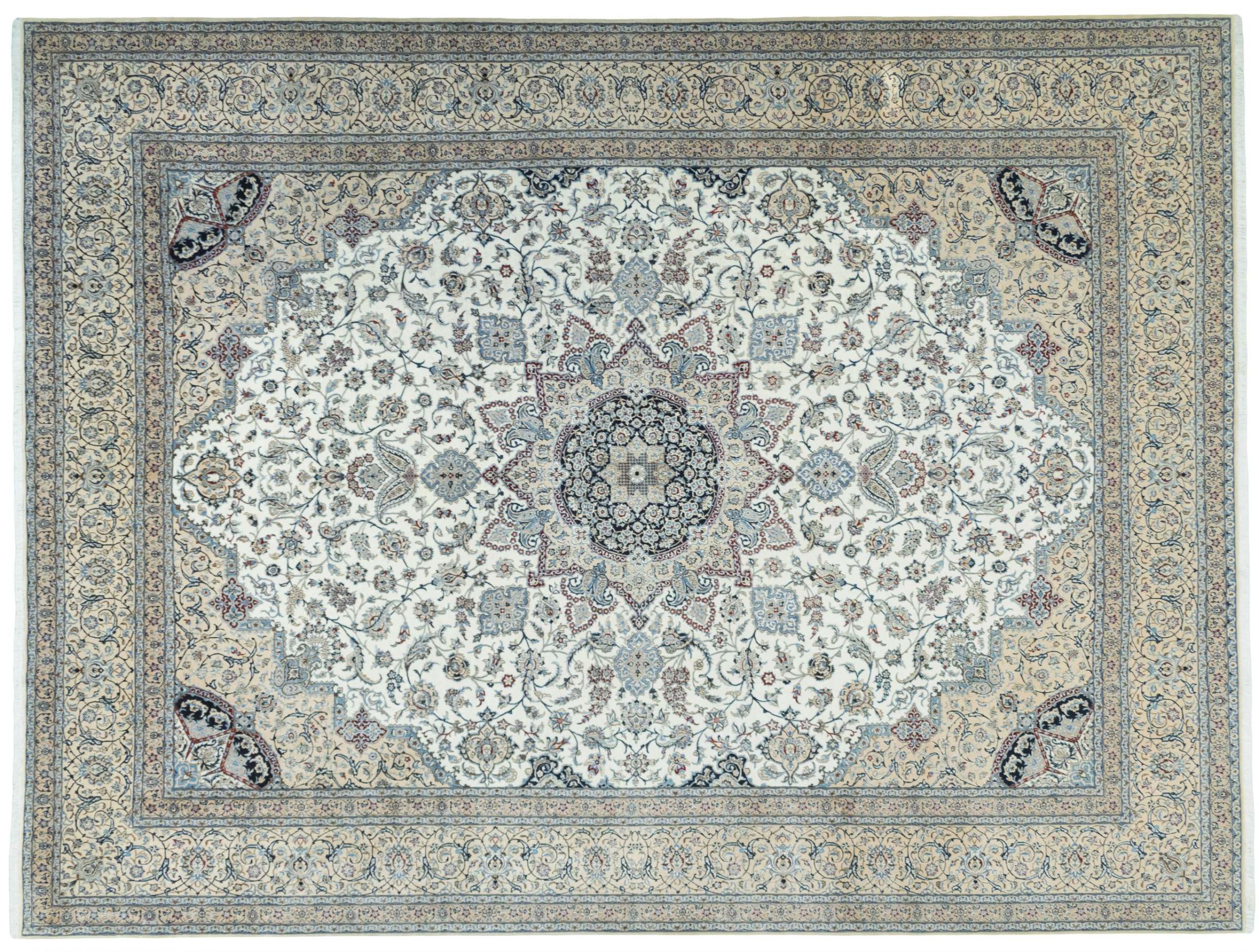 Alfombra número: 310597003383107 Tamaño: 420x318 cm Espesor: alrededor de 8 mm Nudos: 750 000 / m² Elaboración: Anudado a mano Crespón: Lana de corcho con seda Urdimbre: Algodón Origen: Persia / Iran Edad: Nuevo Peso: alrededor de 33 kg Cantidad en stock: Única - Solo 1 en stock