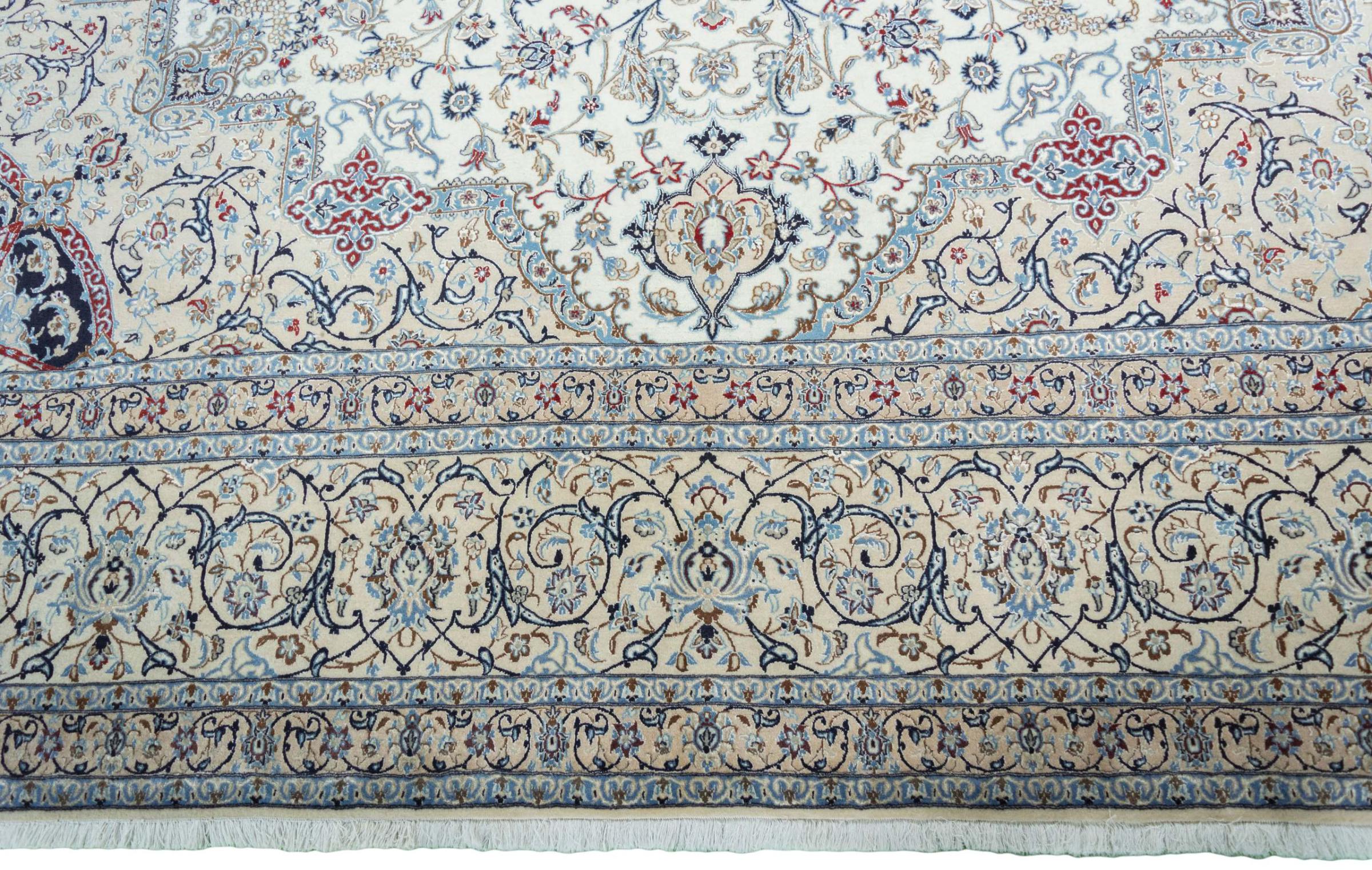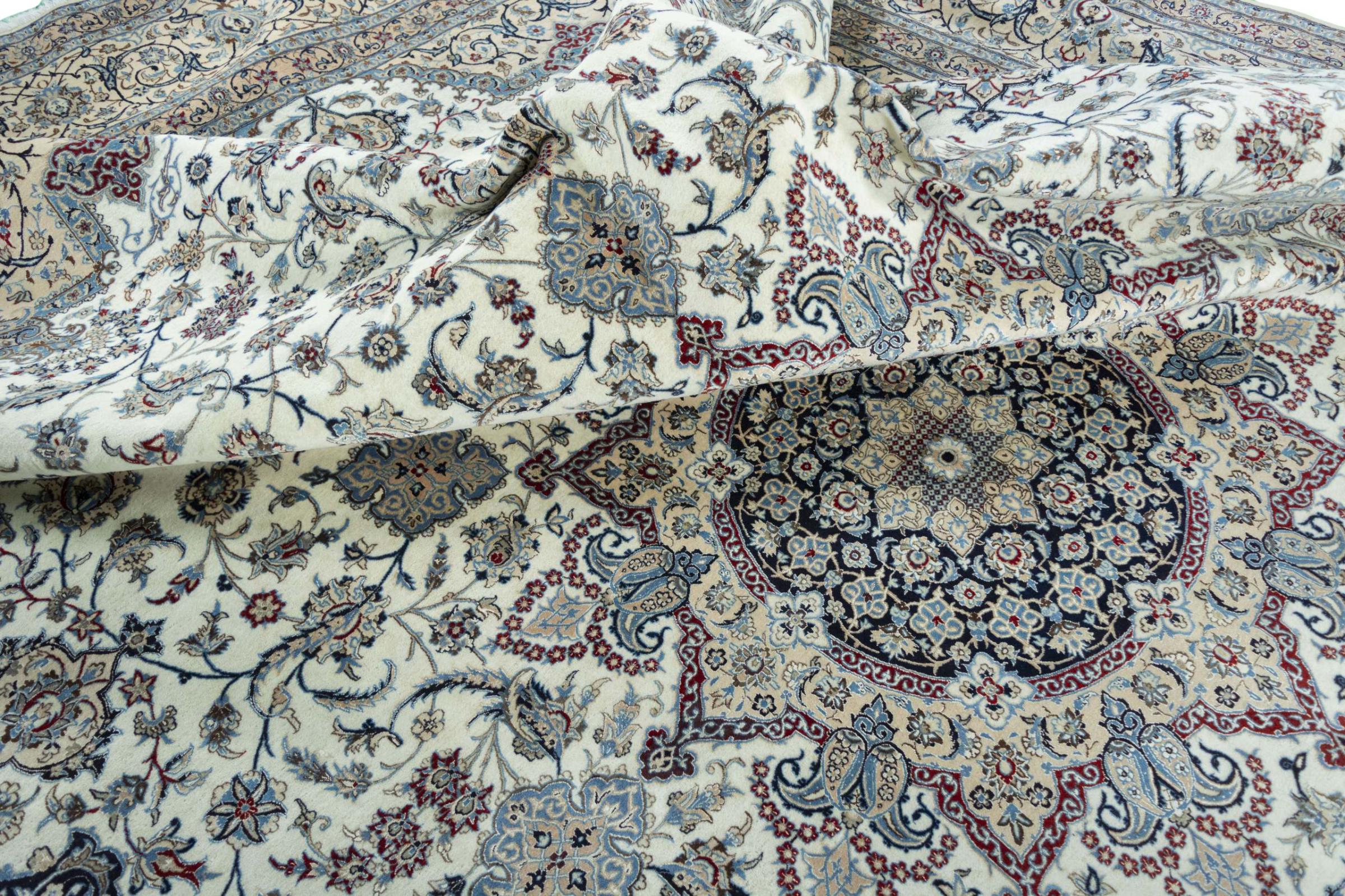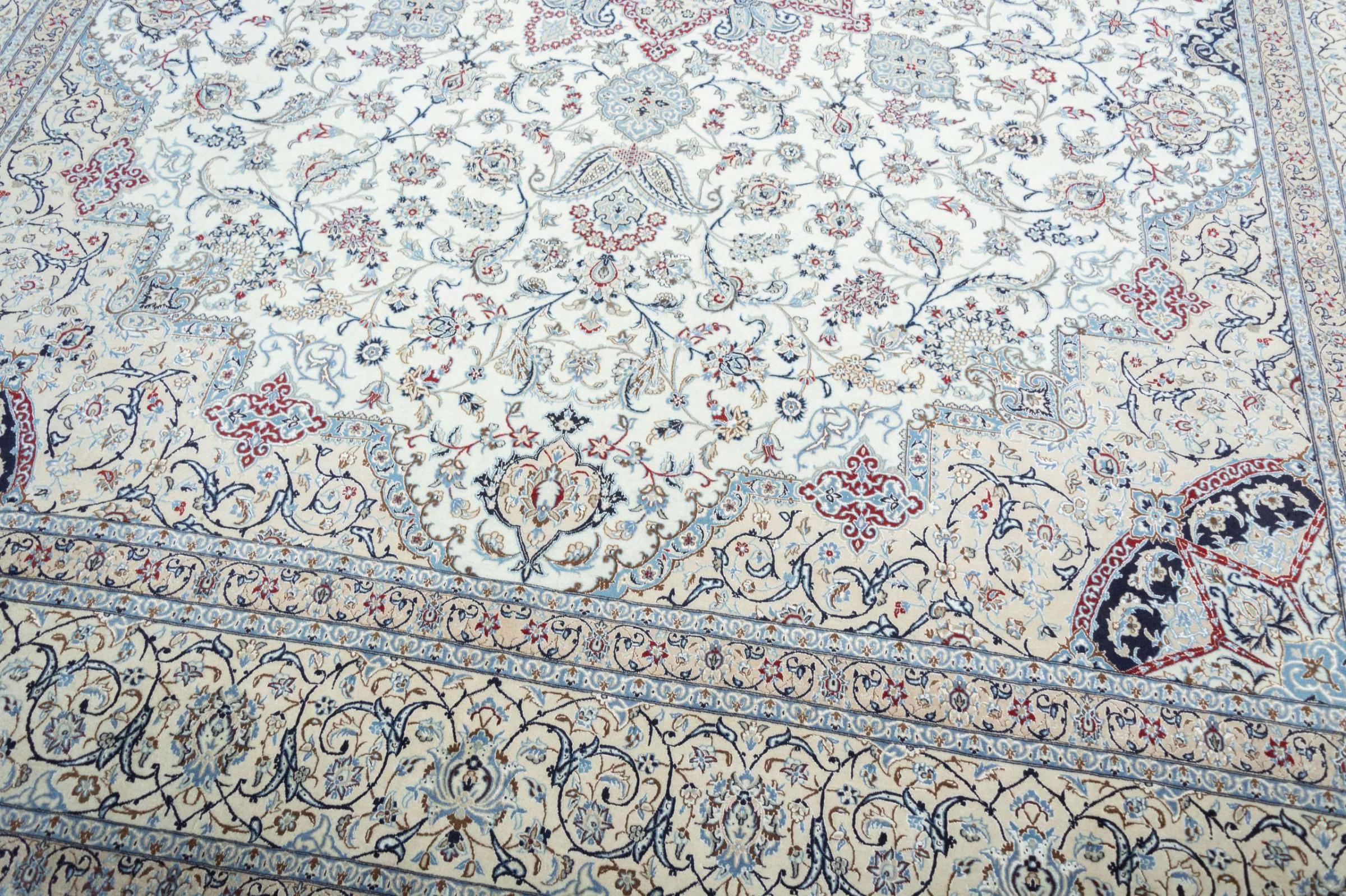 Las alfombras de la ciudad de Nain, en la frontera de uno de los mayores desiertos de Irán, están entre las alfombras persas más famosas del mundo. Su diseño típico es inconfundible con adornos florales, un medallón central y tonos beige y rojo o azul. Gracias a sus designaciones 4La, 6La, 9La y 12La, las sutilezas de una alfombra de Nain se pueden ver a simple vista. Cuanto más bajo sea el número "La", más alta es la densidad del nudo y por lo tanto más fina es la alfombra.