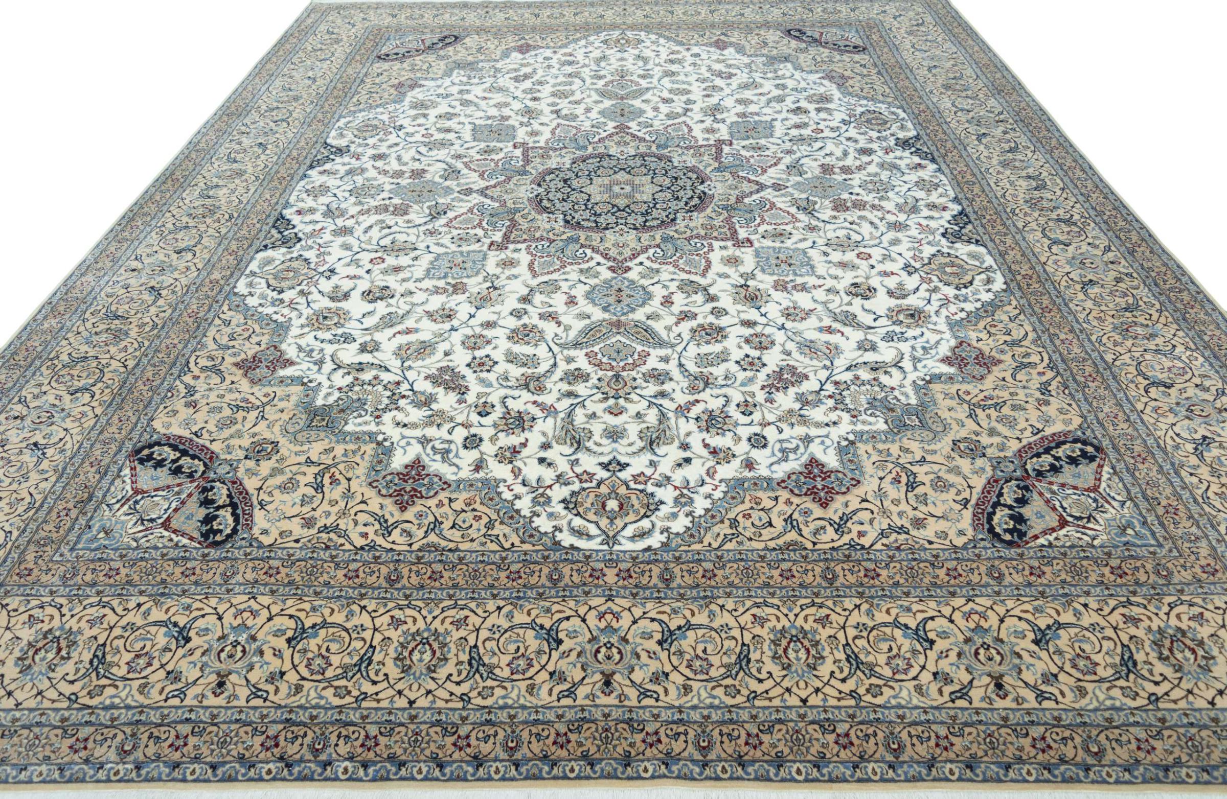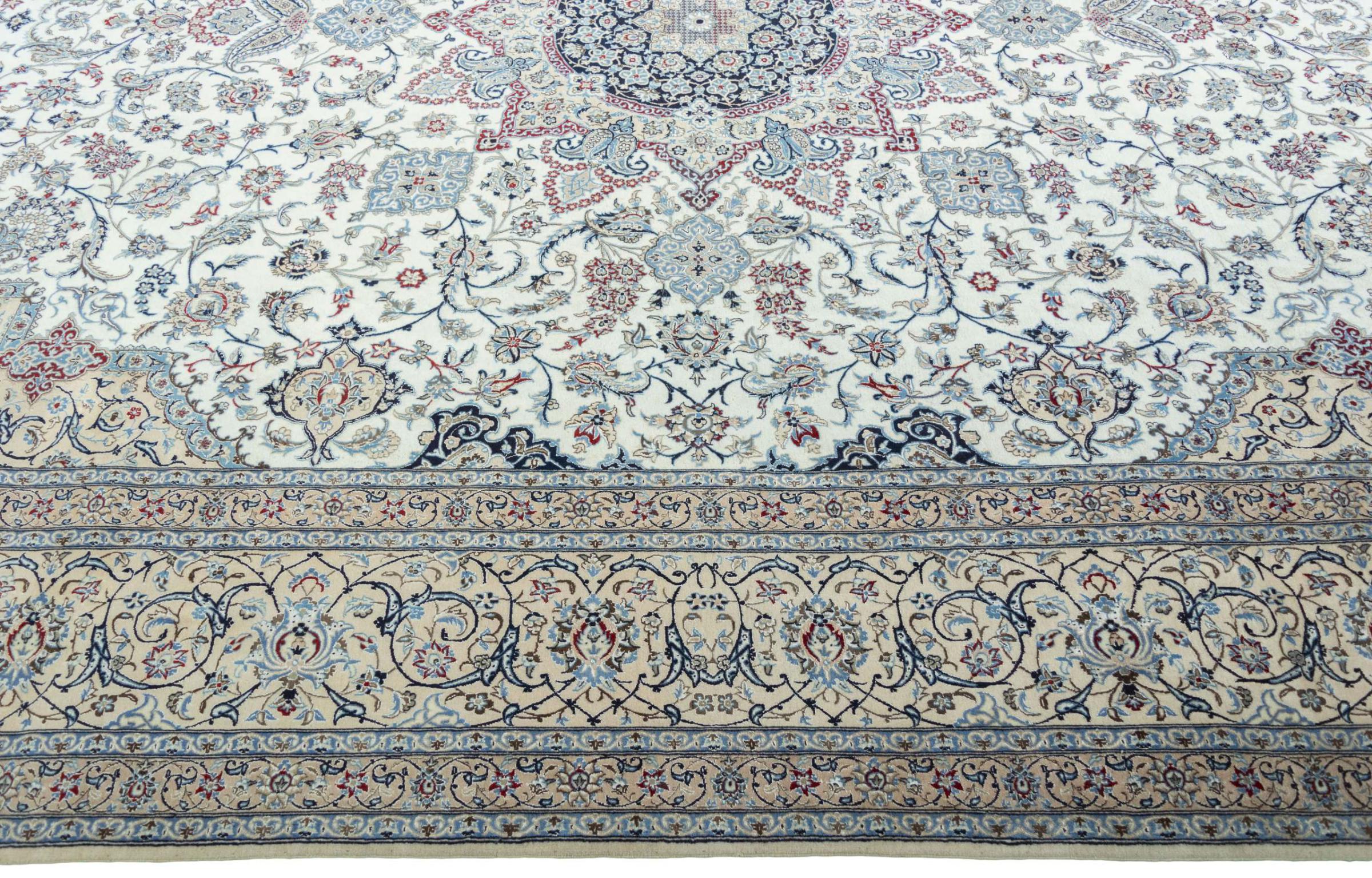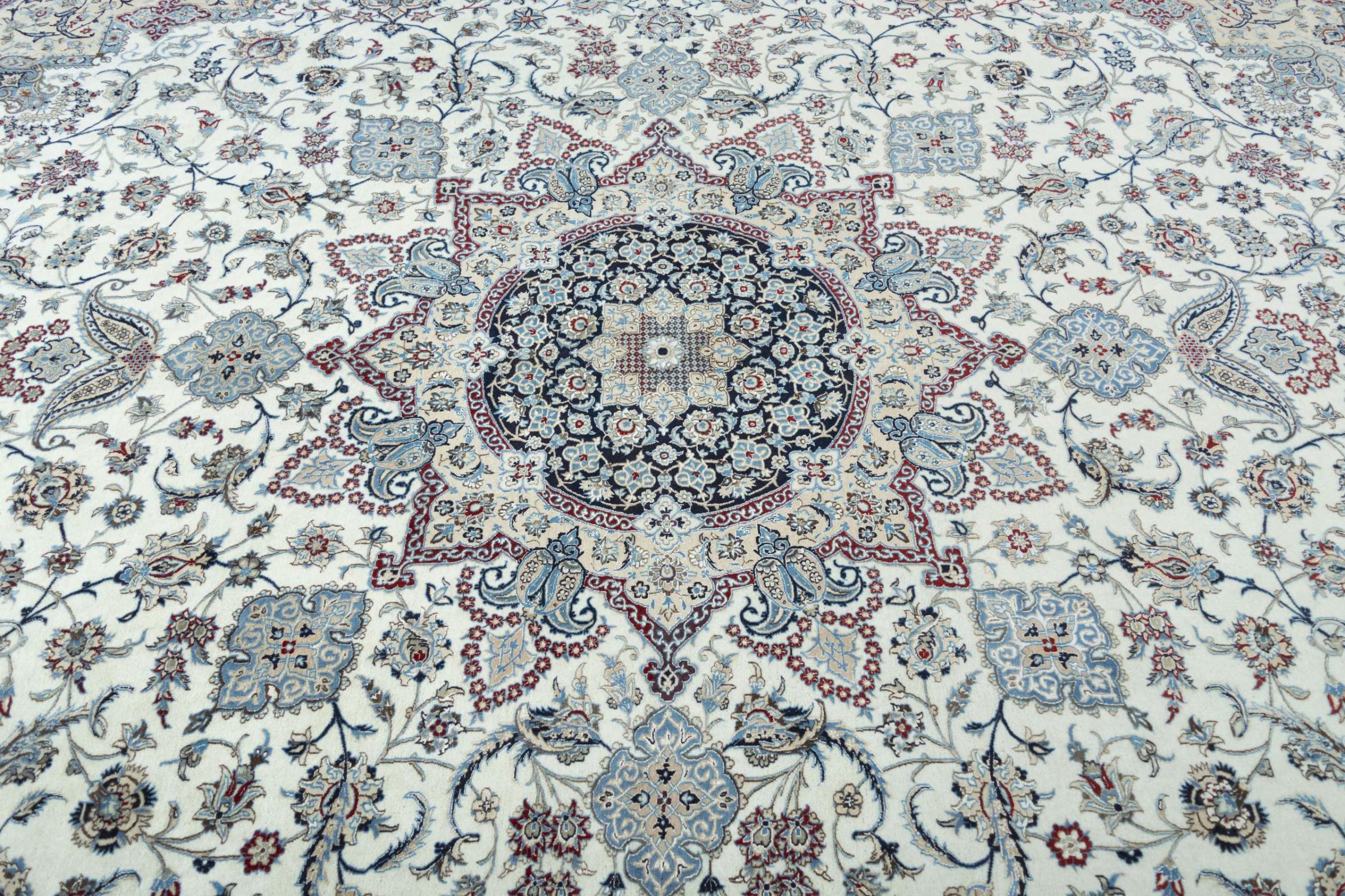 Las alfombras de la ciudad de Nain, en la frontera de uno de los mayores desiertos de Irán, están entre las alfombras persas más famosas del mundo. Su diseño típico es inconfundible con adornos florales, un medallón central y tonos beige y rojo o azul. Gracias a sus designaciones 4La, 6La, 9La y 12La, las sutilezas de una alfombra de Nain se pueden ver a simple vista. Cuanto más bajo sea el número "La", más alta es la densidad del nudo y por lo tanto más fina es la alfombra.