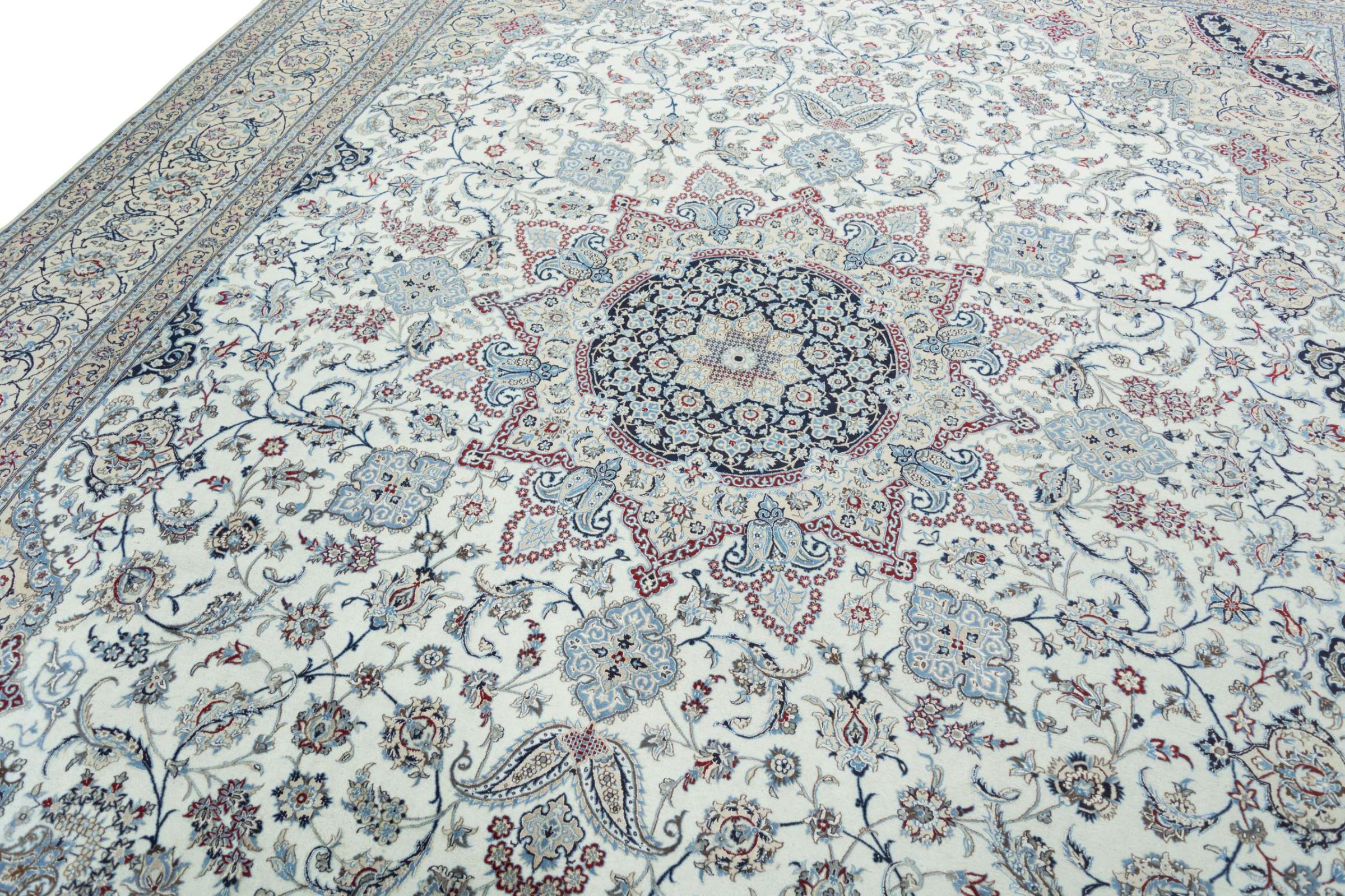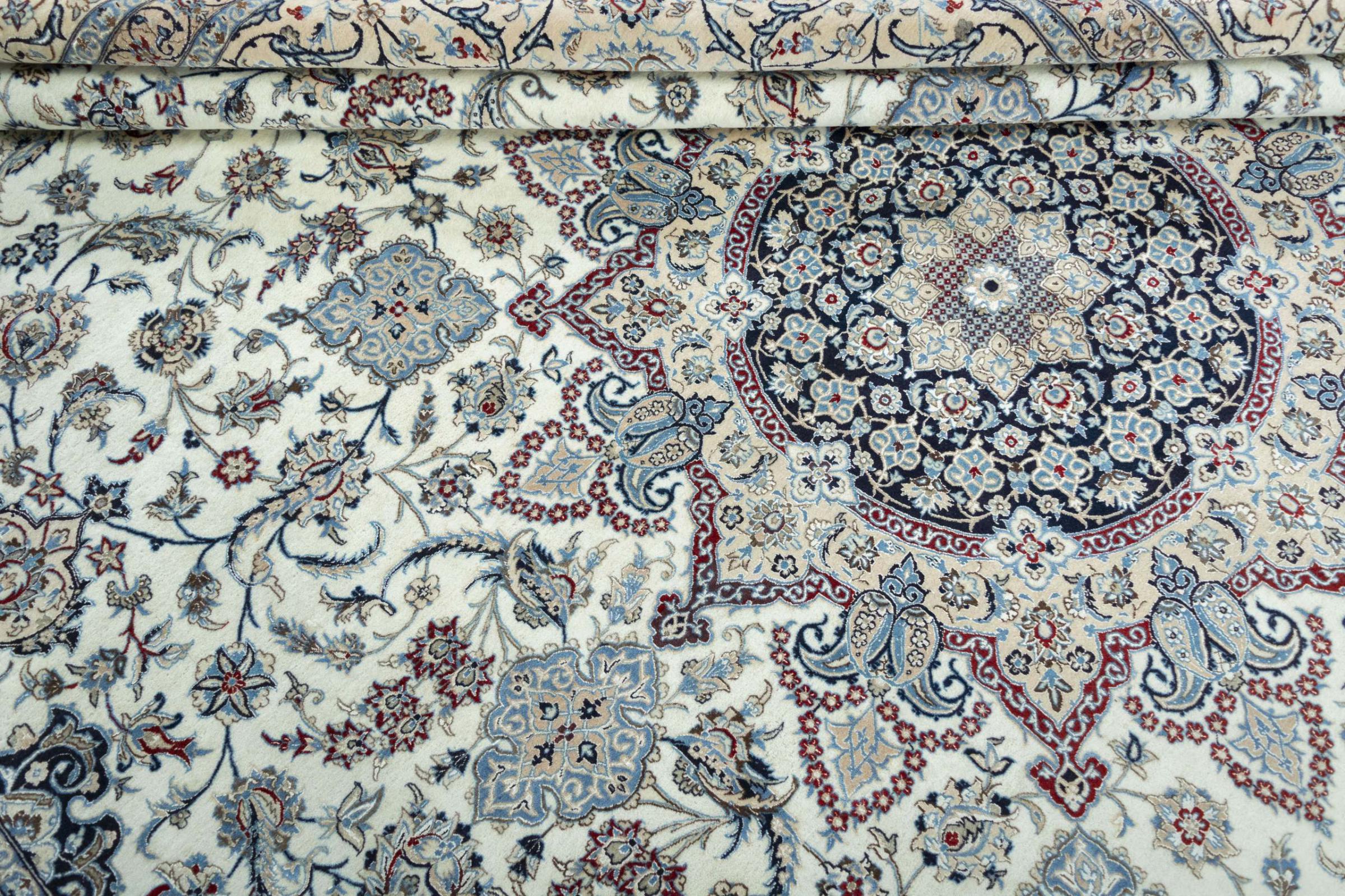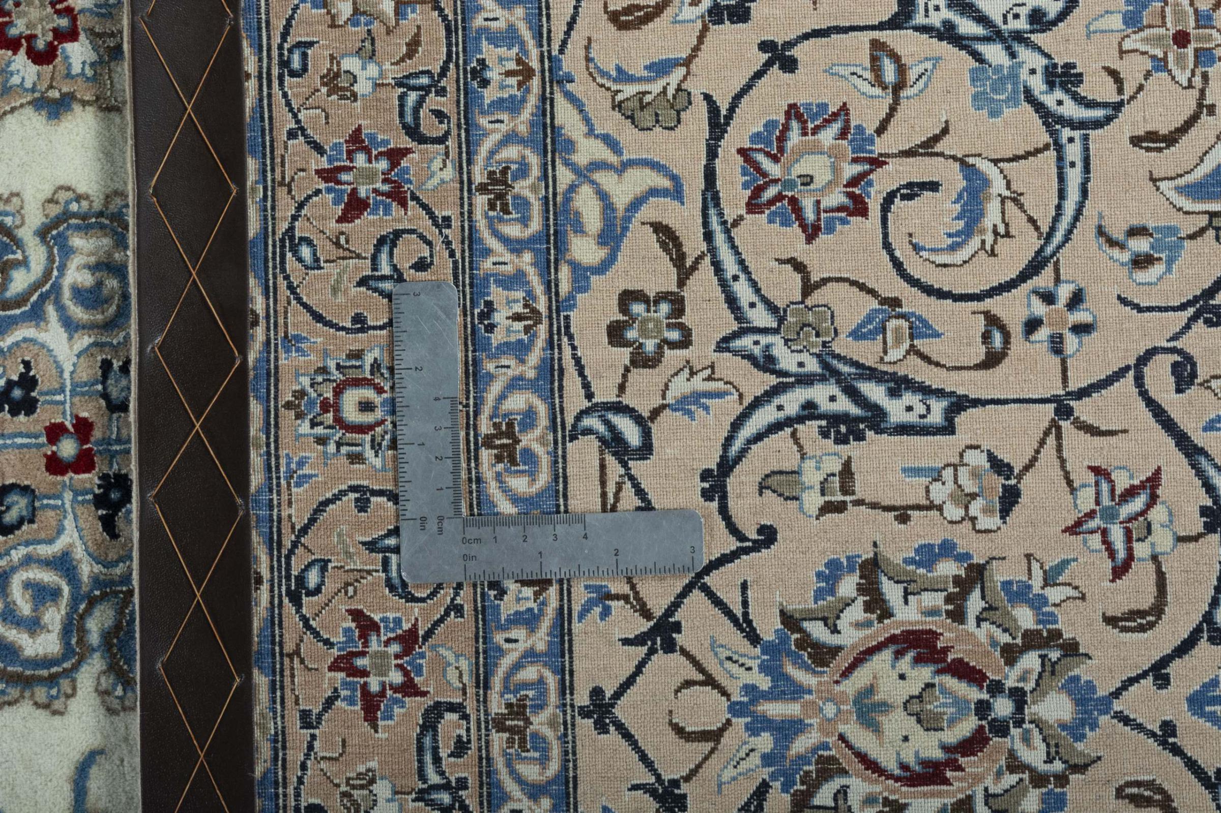Esta alfombra Nain aporta una combinación perfecta de calidad, tradición y un diseño inconfundible. Fue elaborada en la ciudad de Nain, con lana de corcho de alta calidad y anudada a mano con seda natural. A los amantes de las valiosas alfombras iraníes les encantará esta alfombra persa. Con las alfombras Nain de la clasificación 6La y 4La no existe lugar para errores.