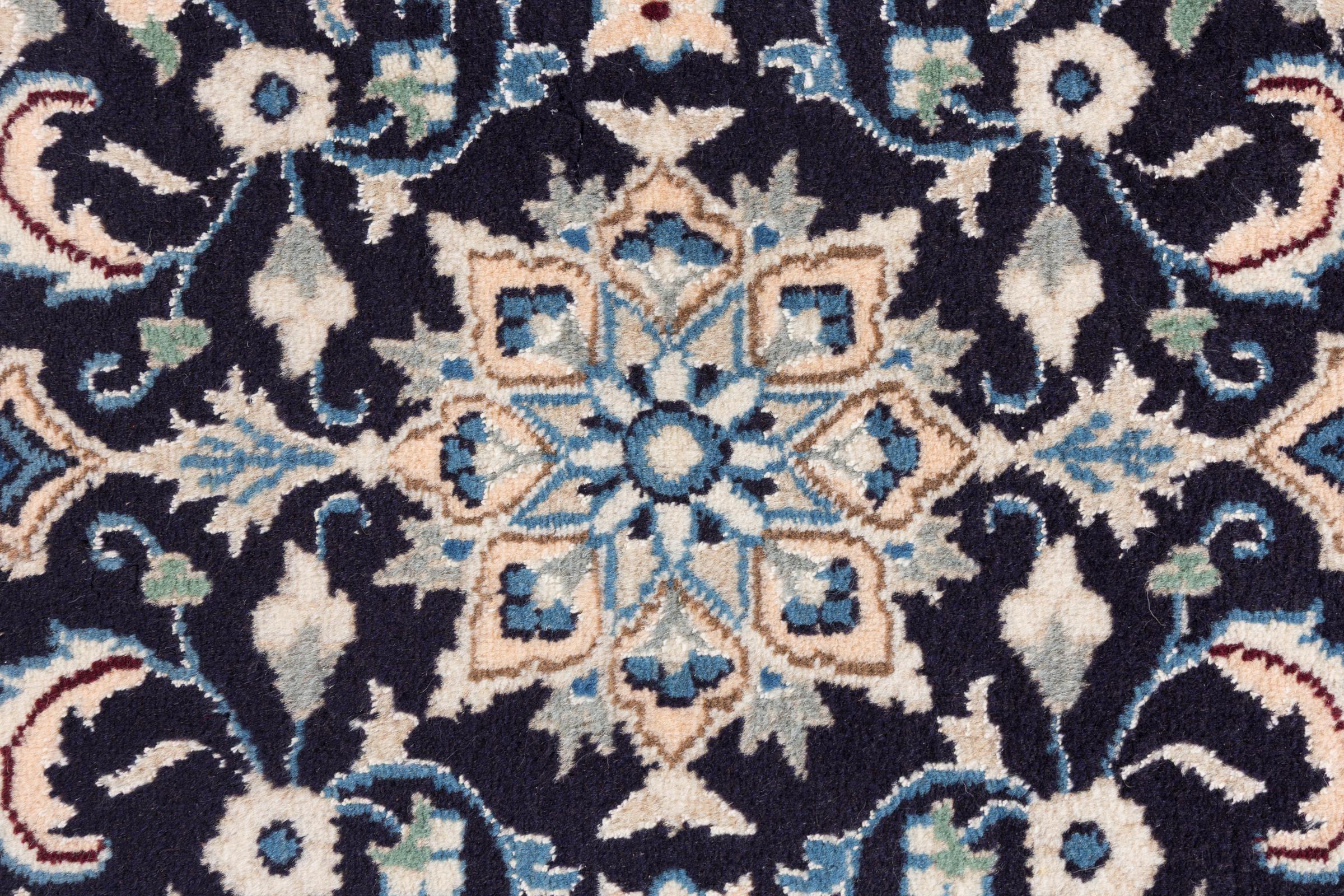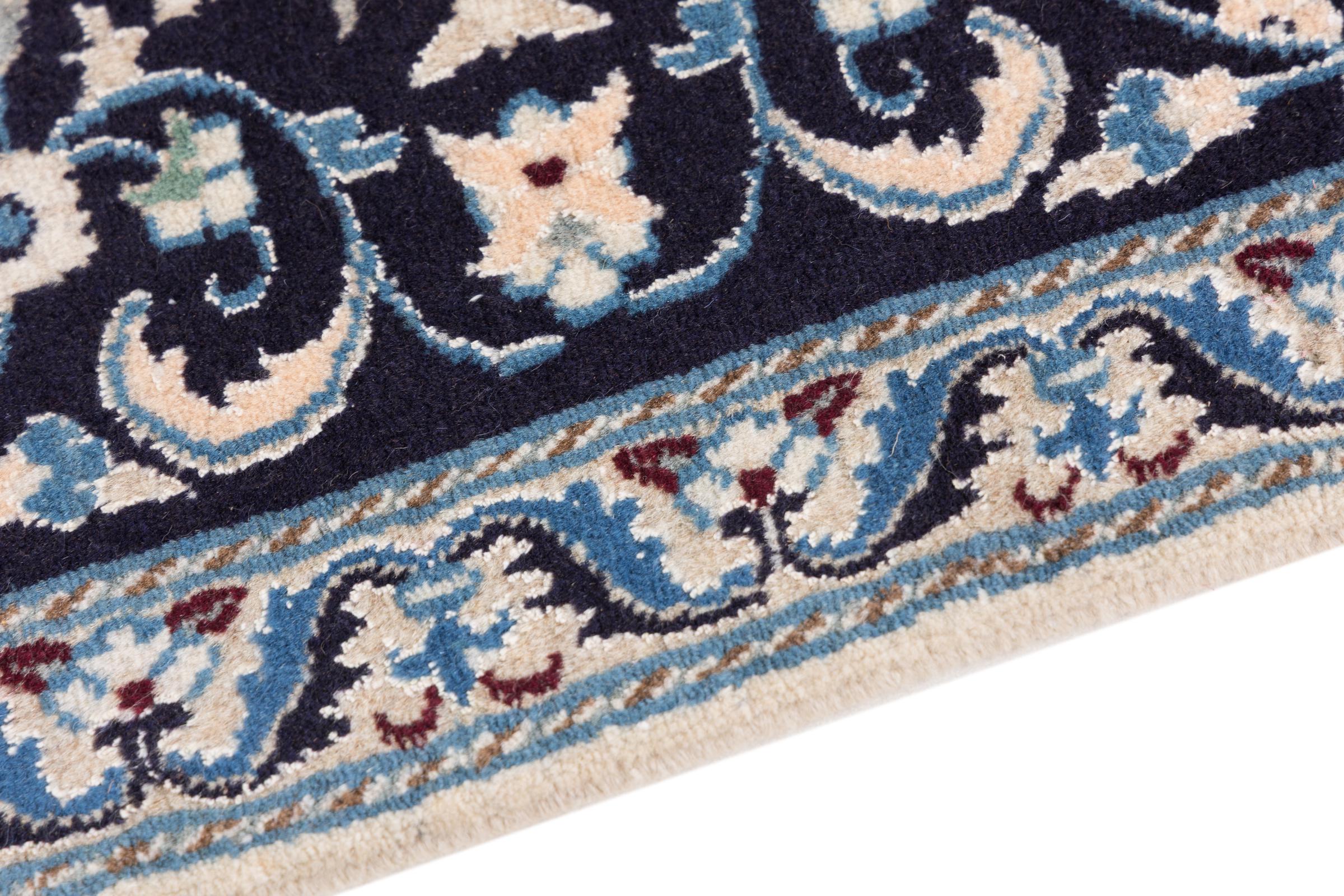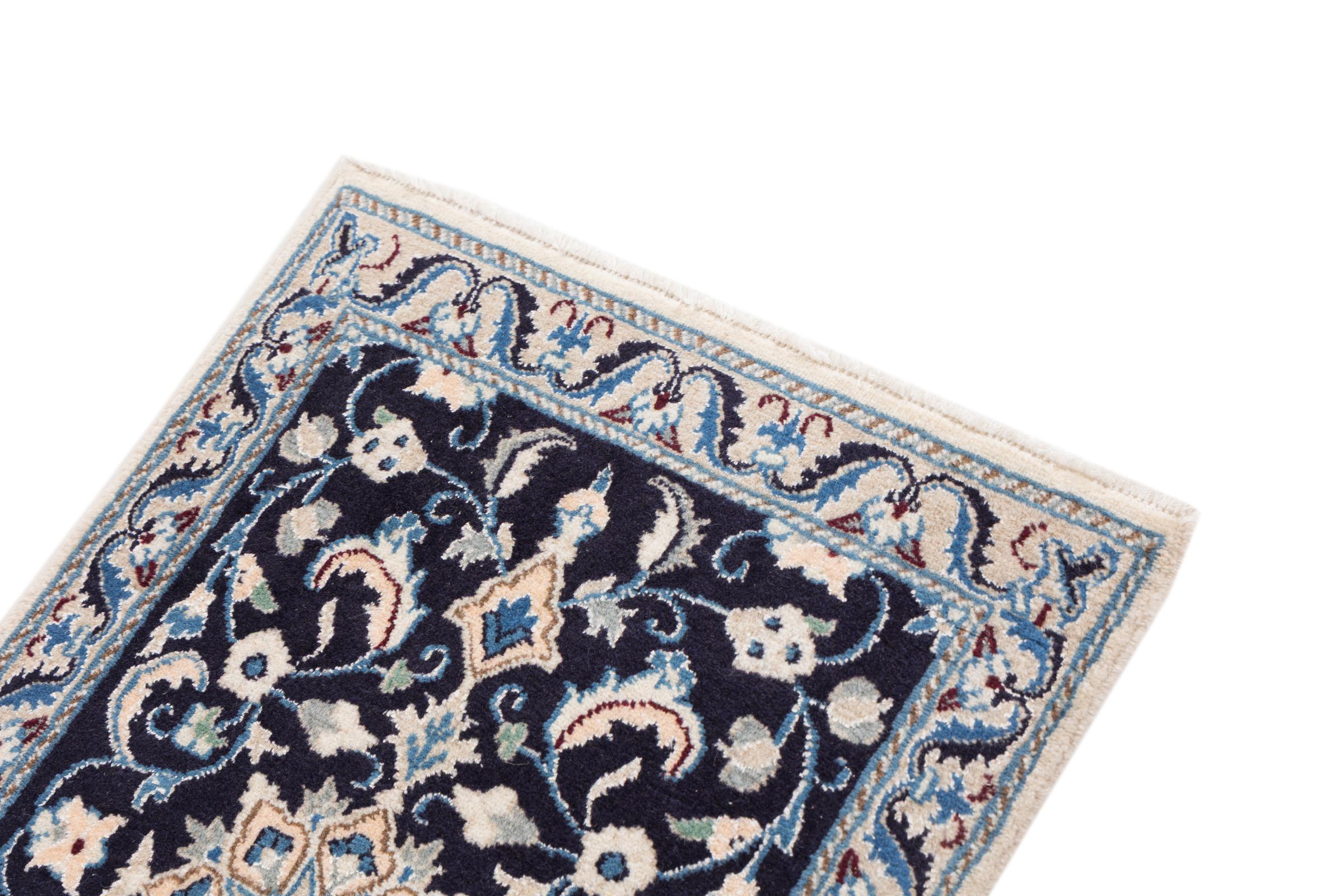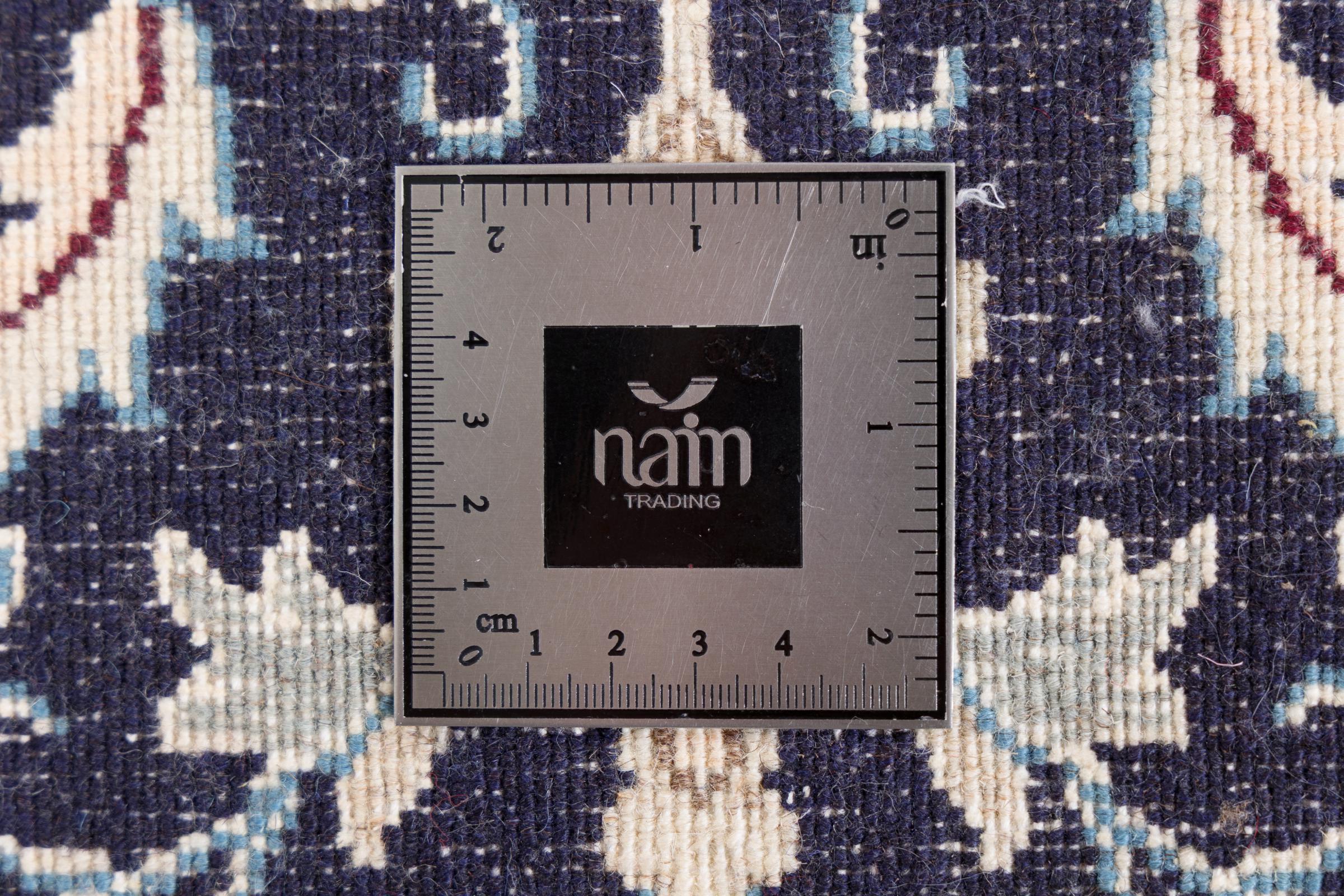 Esta alfombra Nain está clasificada como 9La. Su excelente calidad y su bello diseño oriental con motivos curvilíneos harán las delicias de cualquier comprador. Esta alfombra persa fue anudada a mano en la ciudad de Nain, situada en el extremo occidental del desierto de Dasht-e-Kavir, con lana de alta calidad y seda natural. Las alfombras Nain 9La son claramente más finas que las 12La y ya muestran bellos detalles.