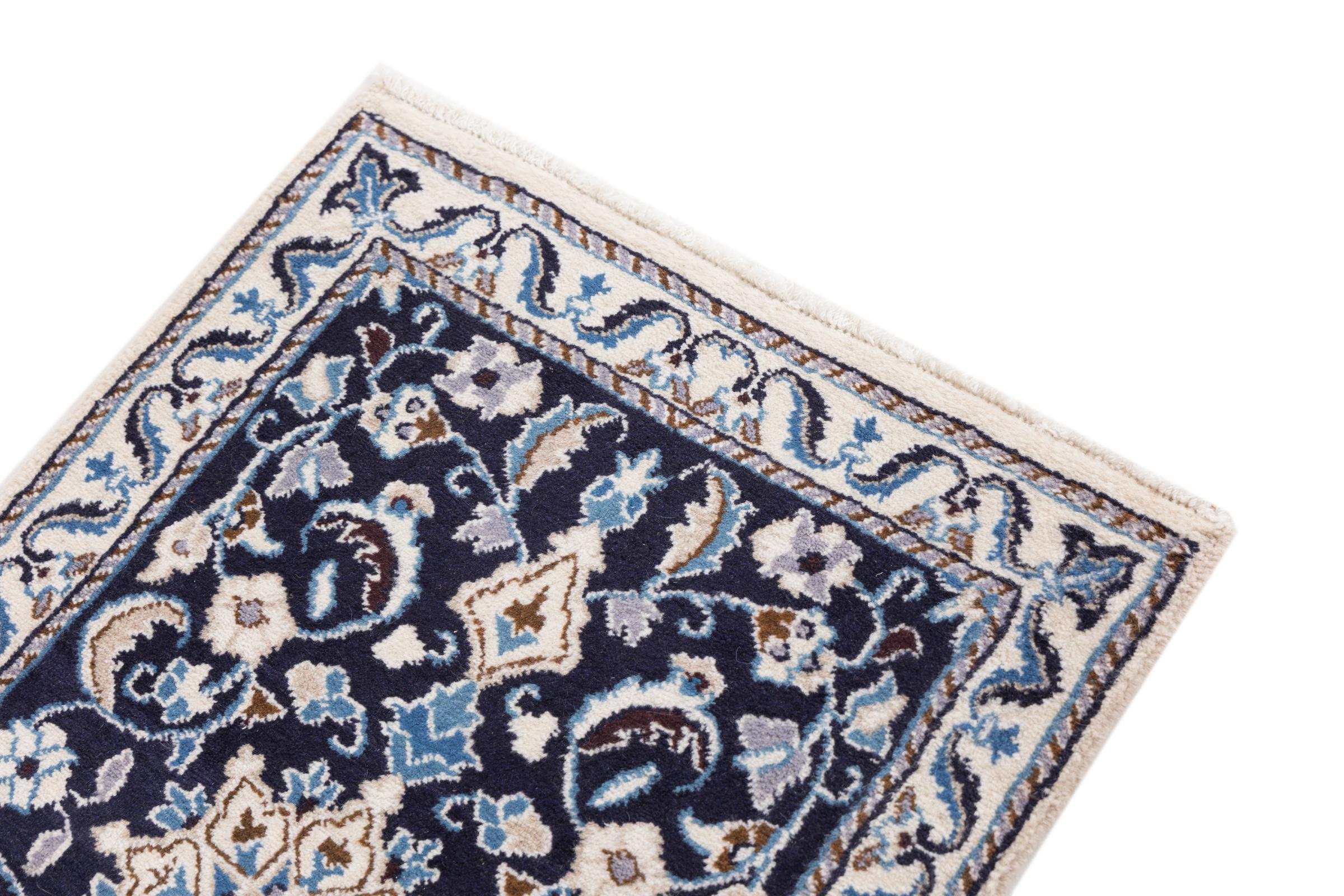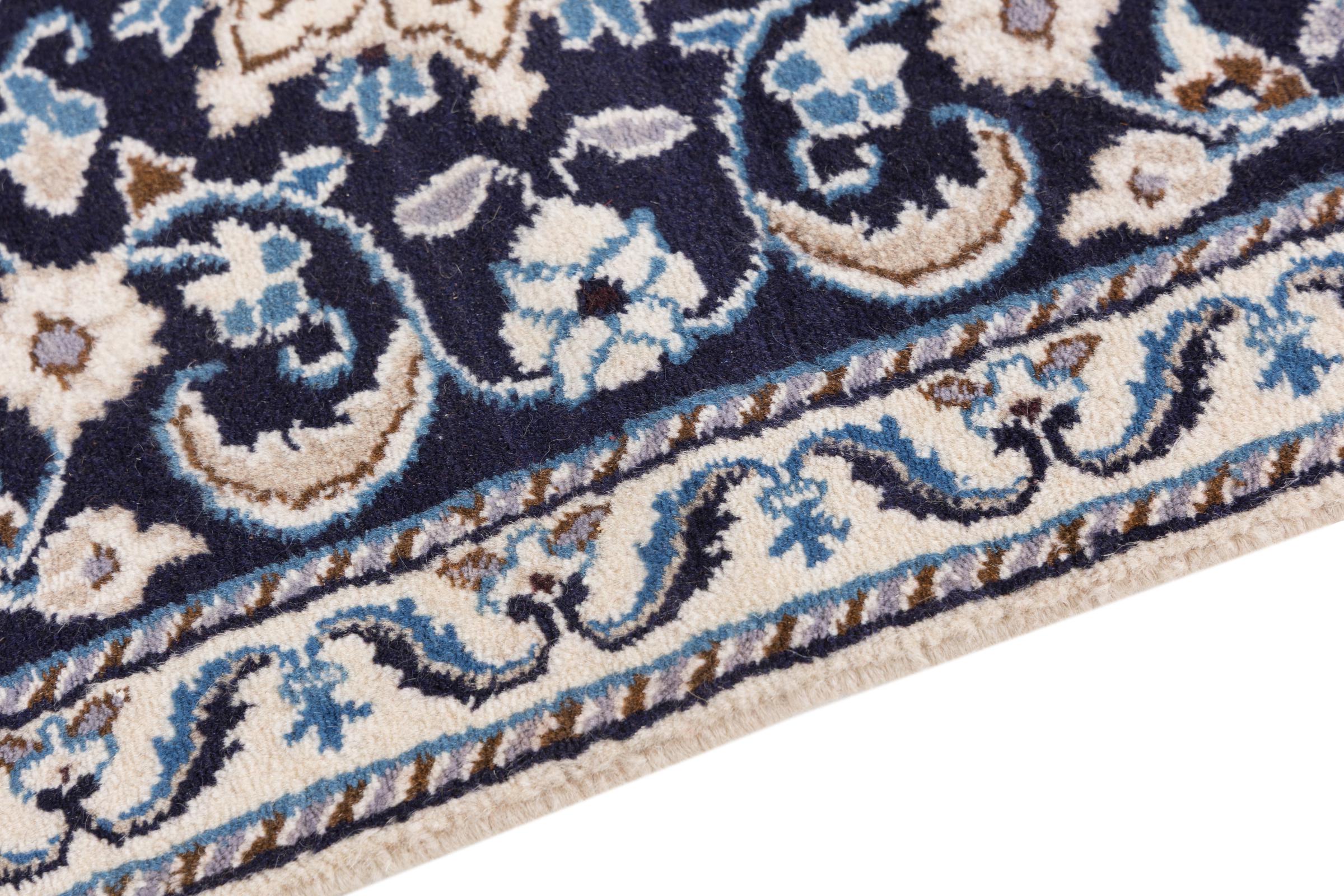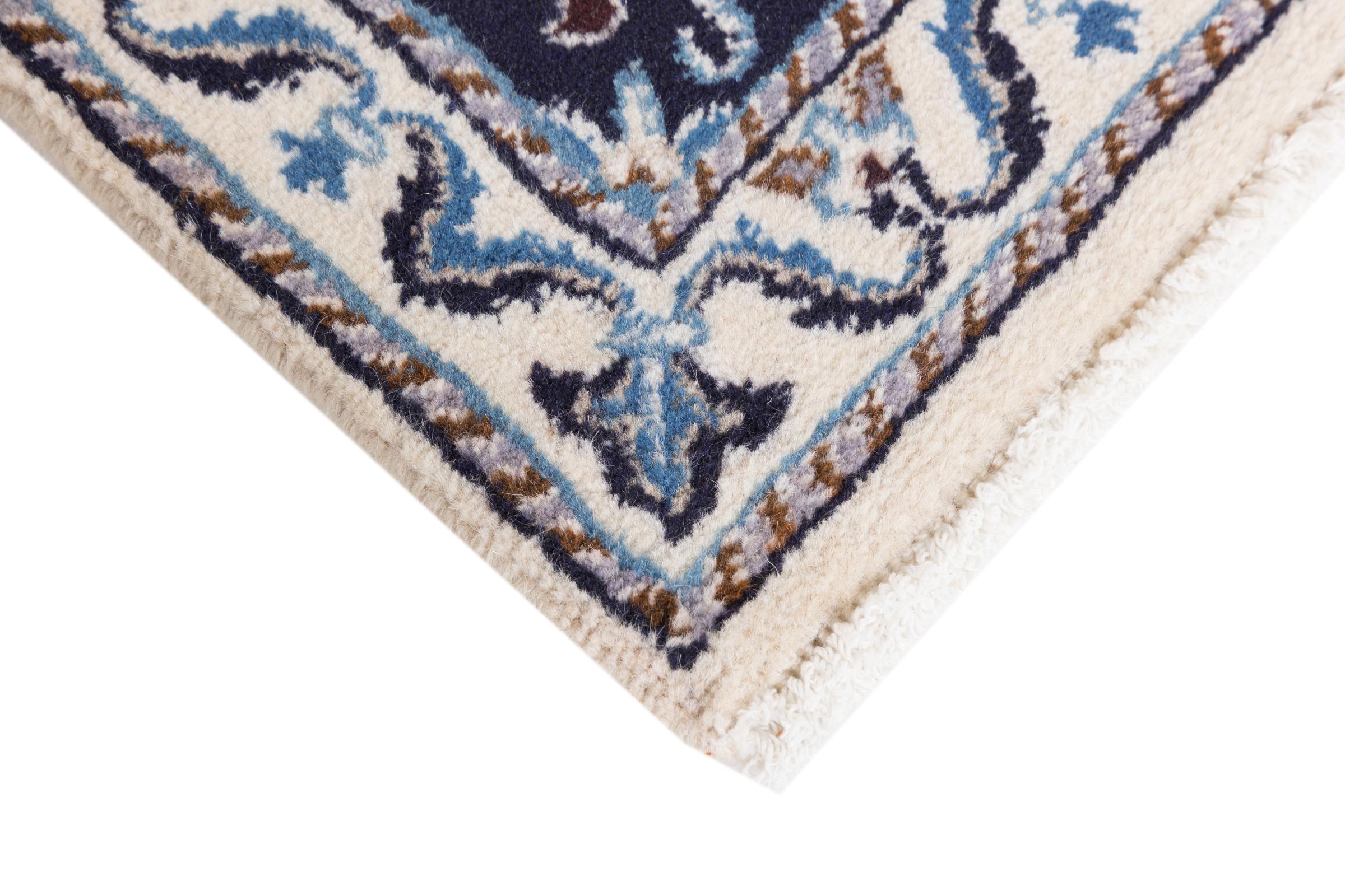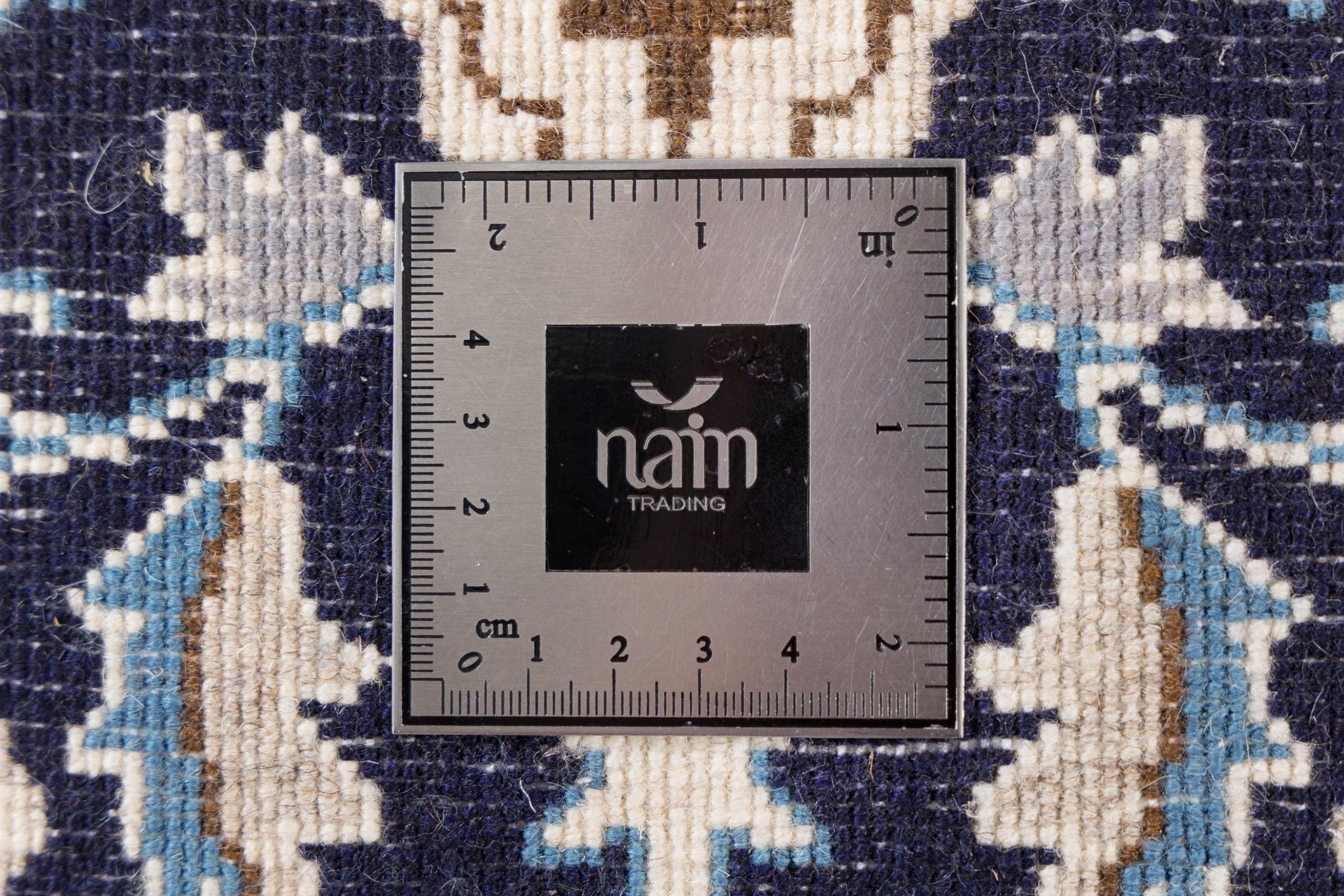 Esta alfombra Nain está clasificada como 9La. Su excelente calidad y su bello diseño oriental con motivos curvilíneos harán las delicias de cualquier comprador. Esta alfombra persa fue anudada a mano en la ciudad de Nain, situada en el extremo occidental del desierto de Dasht-e-Kavir, con lana de alta calidad y seda natural. Las alfombras Nain 9La son claramente más finas que las 12La y ya muestran bellos detalles.