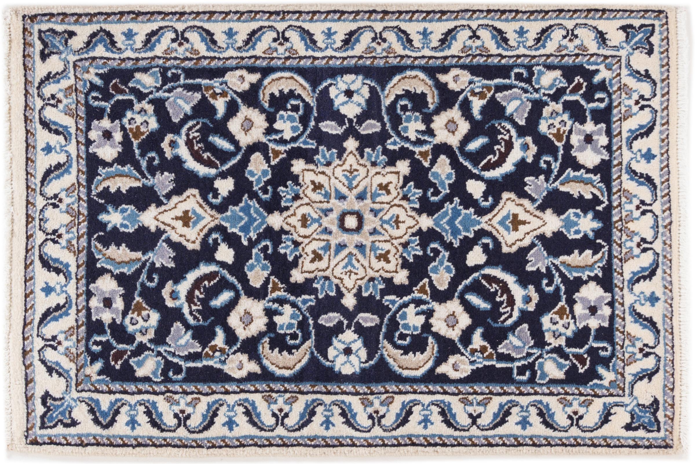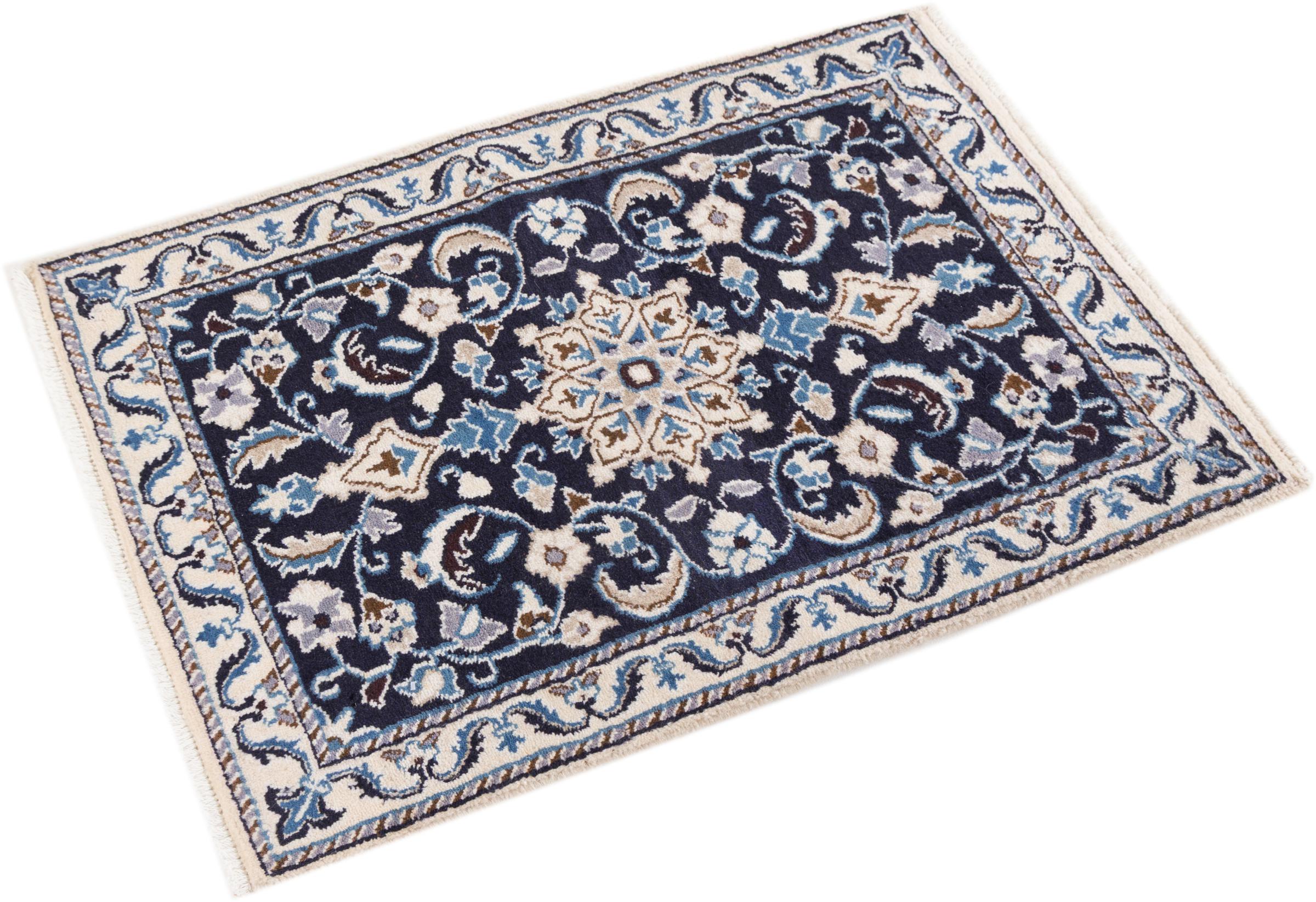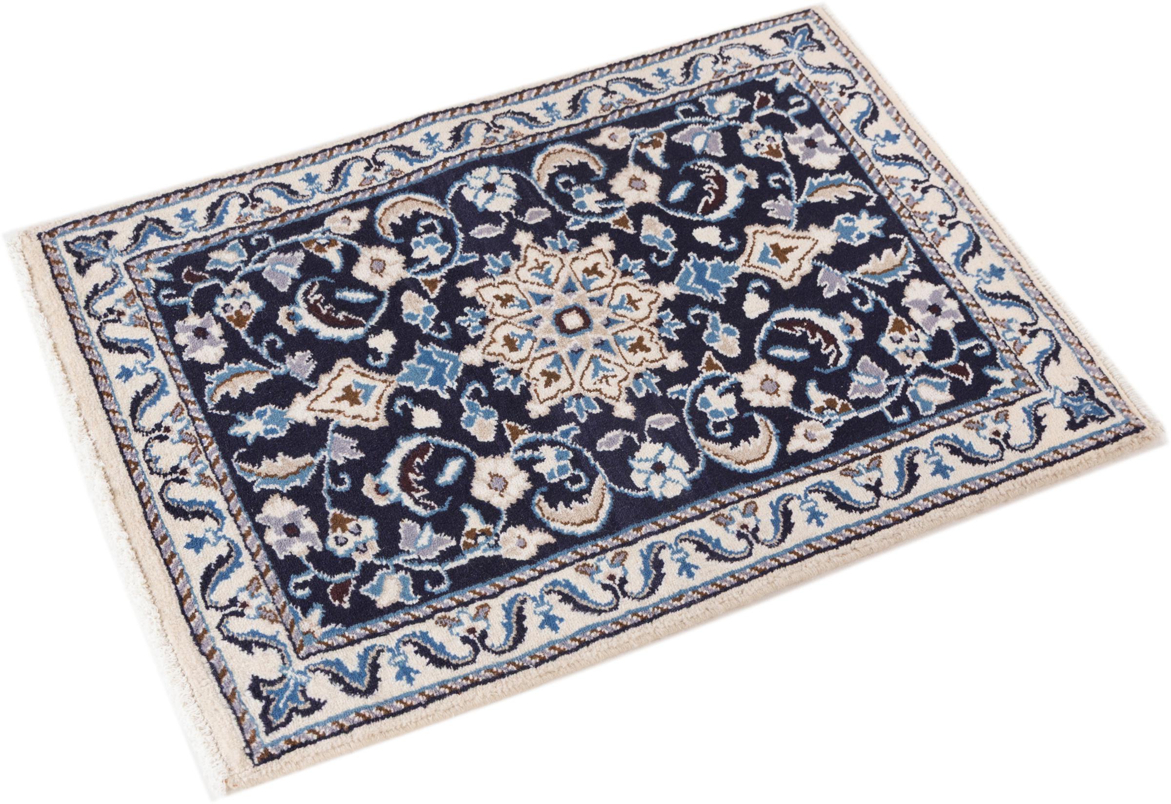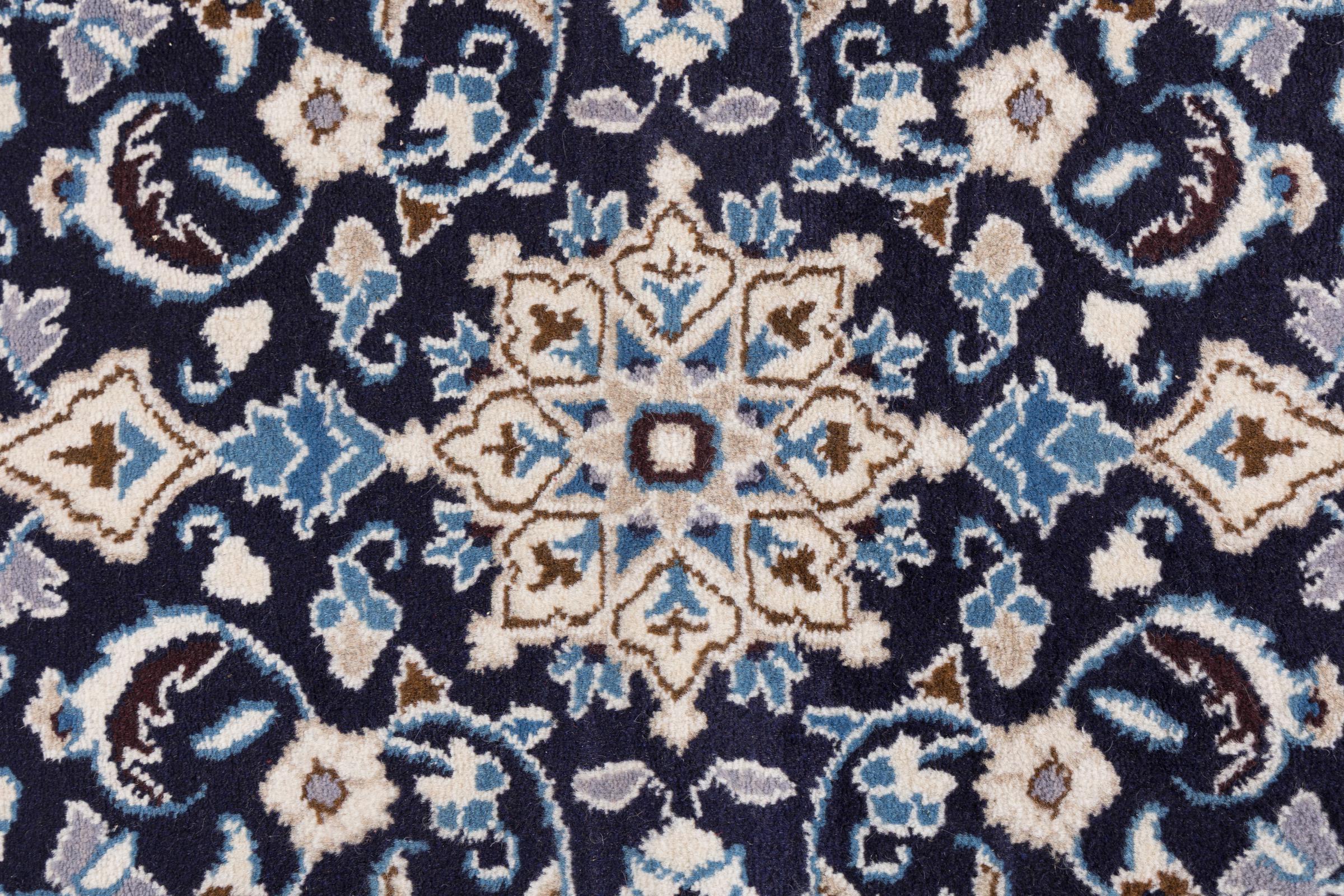 Esta alfombra Nain está clasificada como 9La. Su excelente calidad y su bello diseño oriental con motivos curvilíneos harán las delicias de cualquier comprador. Esta alfombra persa fue anudada a mano en la ciudad de Nain, situada en el extremo occidental del desierto de Dasht-e-Kavir, con lana de alta calidad y seda natural. Las alfombras Nain 9La son claramente más finas que las 12La y ya muestran bellos detalles.
