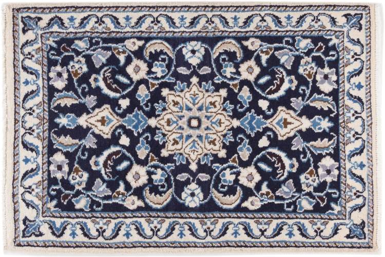 Las alfombras de la ciudad de Nain, en la frontera de uno de los mayores desiertos de Irán, están entre las alfombras persas más famosas del mundo. Su diseño típico es inconfundible con adornos florales, un medallón central y tonos beige y rojo o azul. Gracias a sus designaciones 4La, 6La, 9La y 12La, las sutilezas de una alfombra de Nain se pueden ver a simple vista. Cuanto más bajo sea el número "La", más alta es la densidad del nudo y por lo tanto más fina es la alfombra.