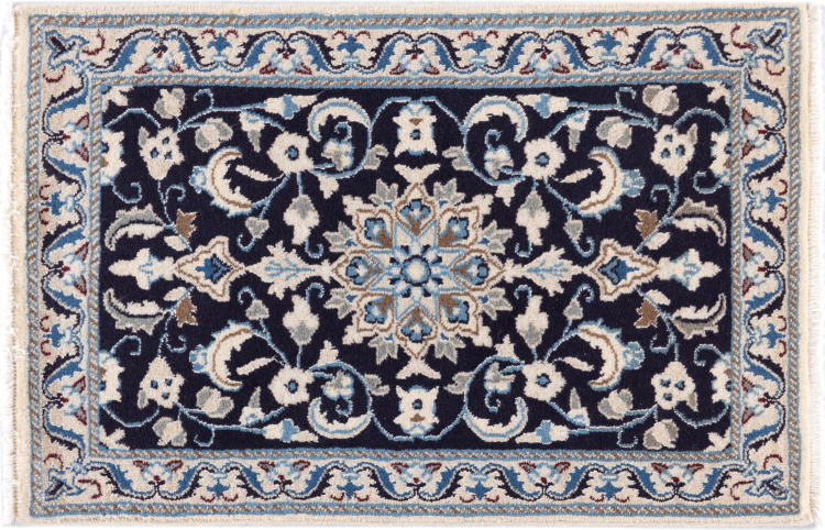 Las alfombras de la ciudad de Nain, en la frontera de uno de los mayores desiertos de Irán, están entre las alfombras persas más famosas del mundo. Su diseño típico es inconfundible con adornos florales, un medallón central y tonos beige y rojo o azul. Gracias a sus designaciones 4La, 6La, 9La y 12La, las sutilezas de una alfombra de Nain se pueden ver a simple vista. Cuanto más bajo sea el número "La", más alta es la densidad del nudo y por lo tanto más fina es la alfombra.