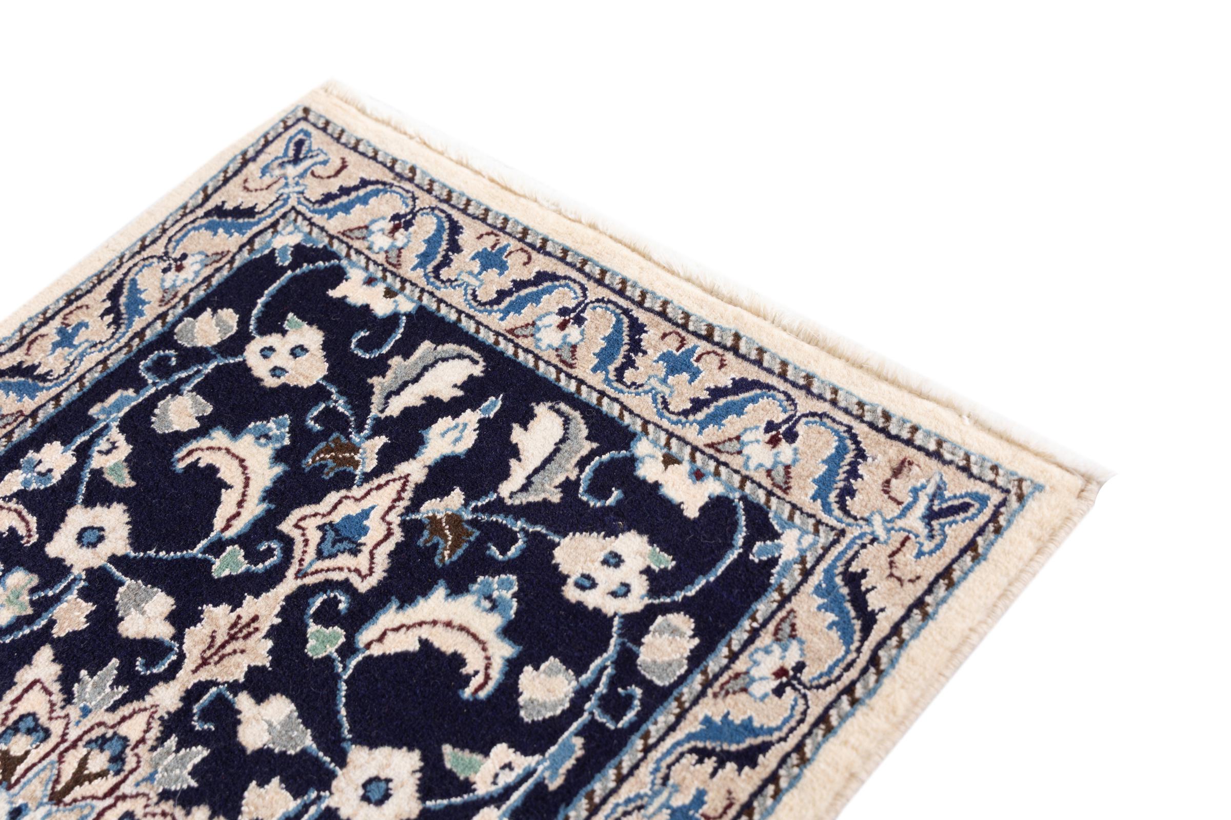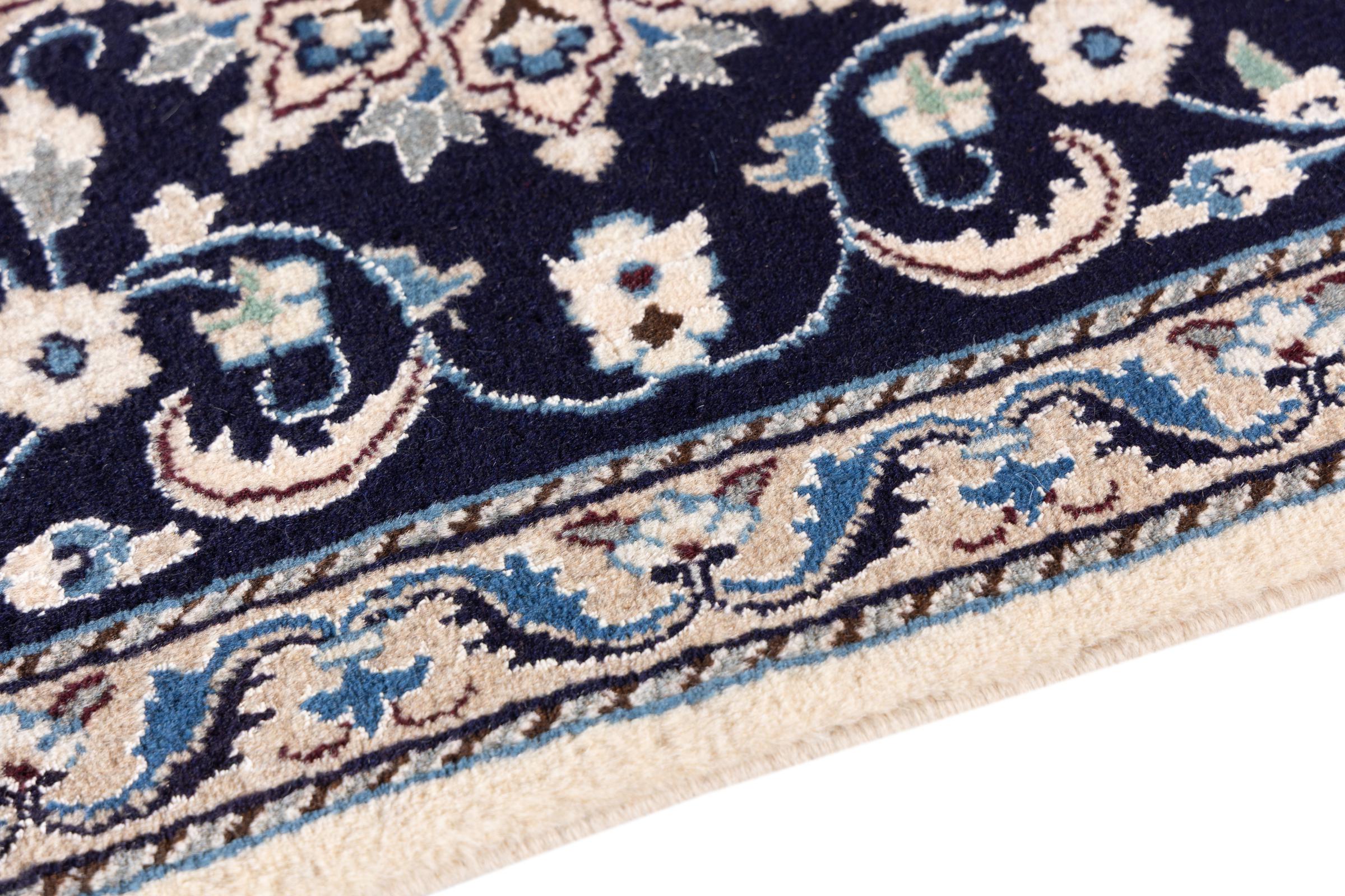 Esta alfombra Nain está clasificada como 9La. Su excelente calidad y su bello diseño oriental con motivos curvilíneos harán las delicias de cualquier comprador. Esta alfombra persa fue anudada a mano en la ciudad de Nain, situada en el extremo occidental del desierto de Dasht-e-Kavir, con lana de alta calidad y seda natural. Las alfombras Nain 9La son claramente más finas que las 12La y ya muestran bellos detalles.