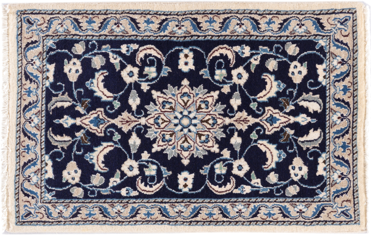 Las alfombras de la ciudad de Nain, en la frontera de uno de los mayores desiertos de Irán, están entre las alfombras persas más famosas del mundo. Su diseño típico es inconfundible con adornos florales, un medallón central y tonos beige y rojo o azul. Gracias a sus designaciones 4La, 6La, 9La y 12La, las sutilezas de una alfombra de Nain se pueden ver a simple vista. Cuanto más bajo sea el número "La", más alta es la densidad del nudo y por lo tanto más fina es la alfombra.