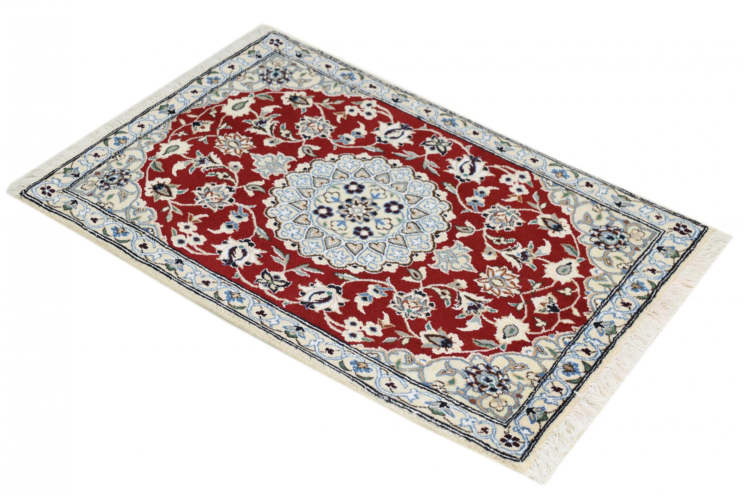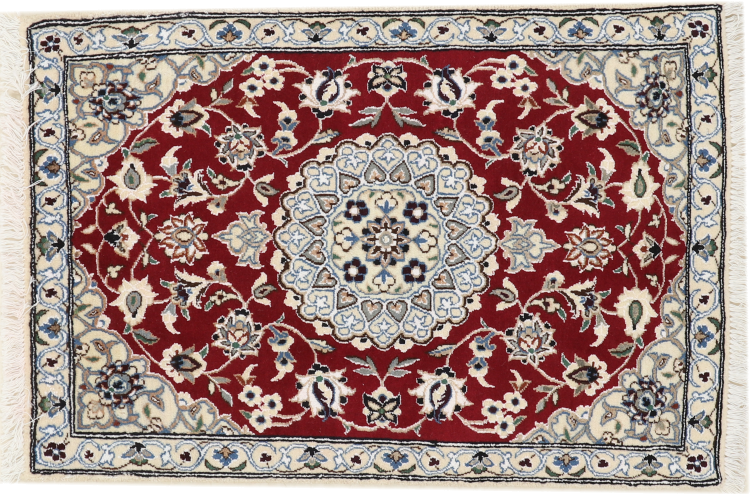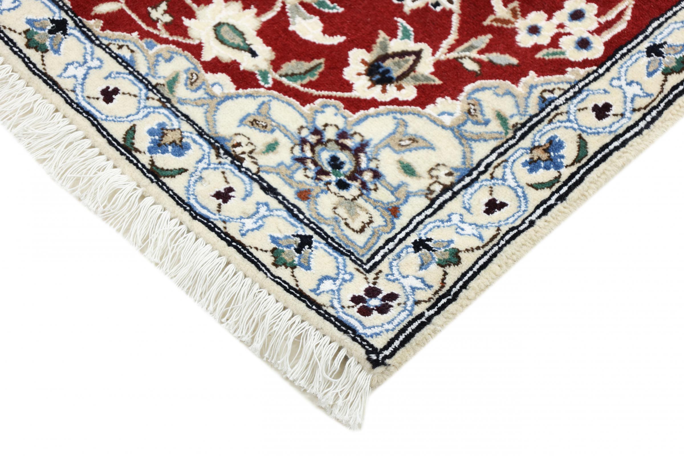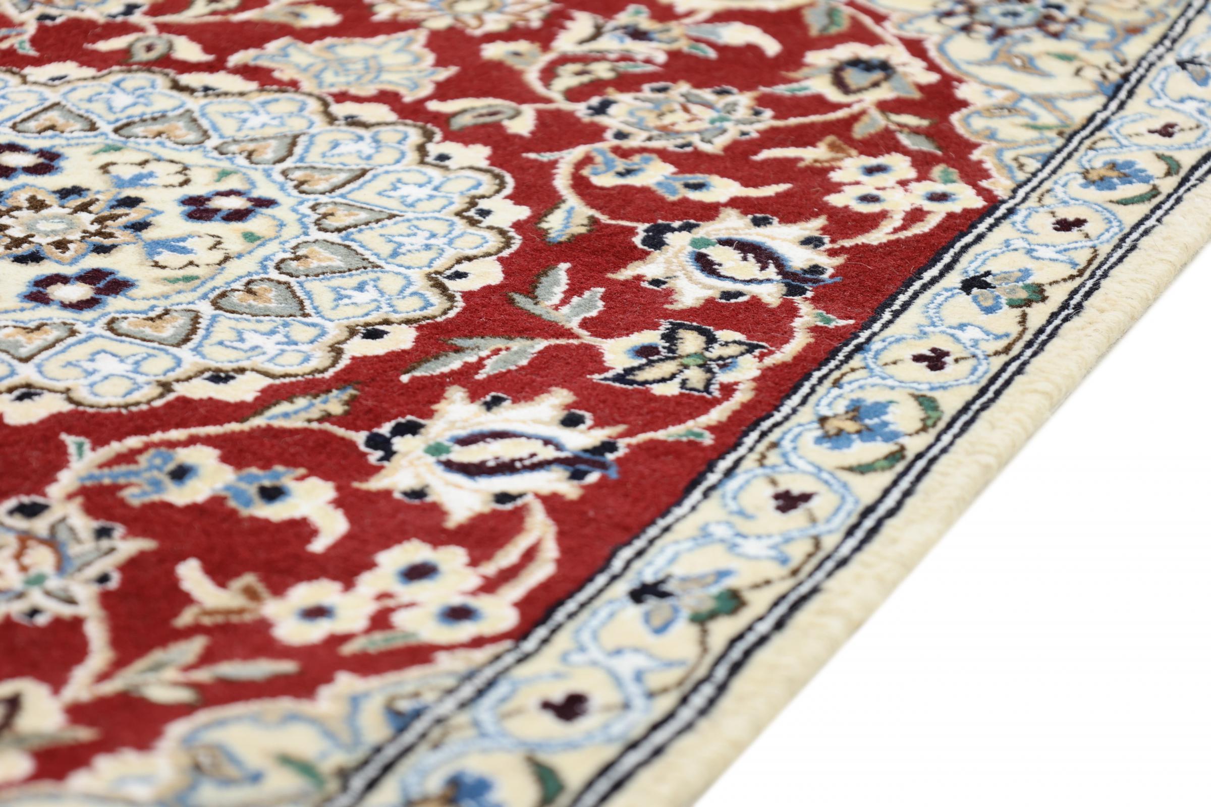 Las alfombras de la ciudad de Nain, en la frontera de uno de los mayores desiertos de Irán, están entre las alfombras persas más famosas del mundo. Su diseño típico es inconfundible con adornos florales, un medallón central y tonos beige y rojo o azul. Gracias a sus designaciones 4La, 6La, 9La y 12La, las sutilezas de una alfombra de Nain se pueden ver a simple vista. Cuanto más bajo sea el número "La", más alta es la densidad del nudo y por lo tanto más fina es la alfombra.