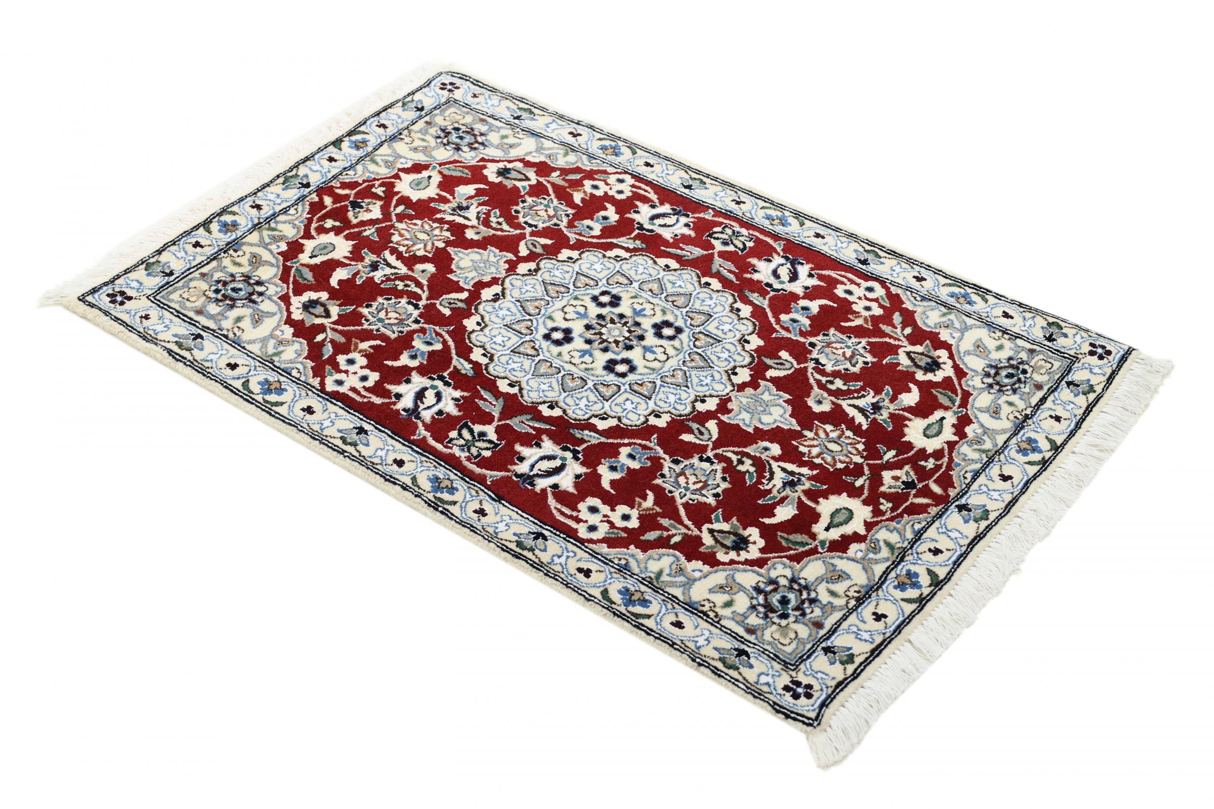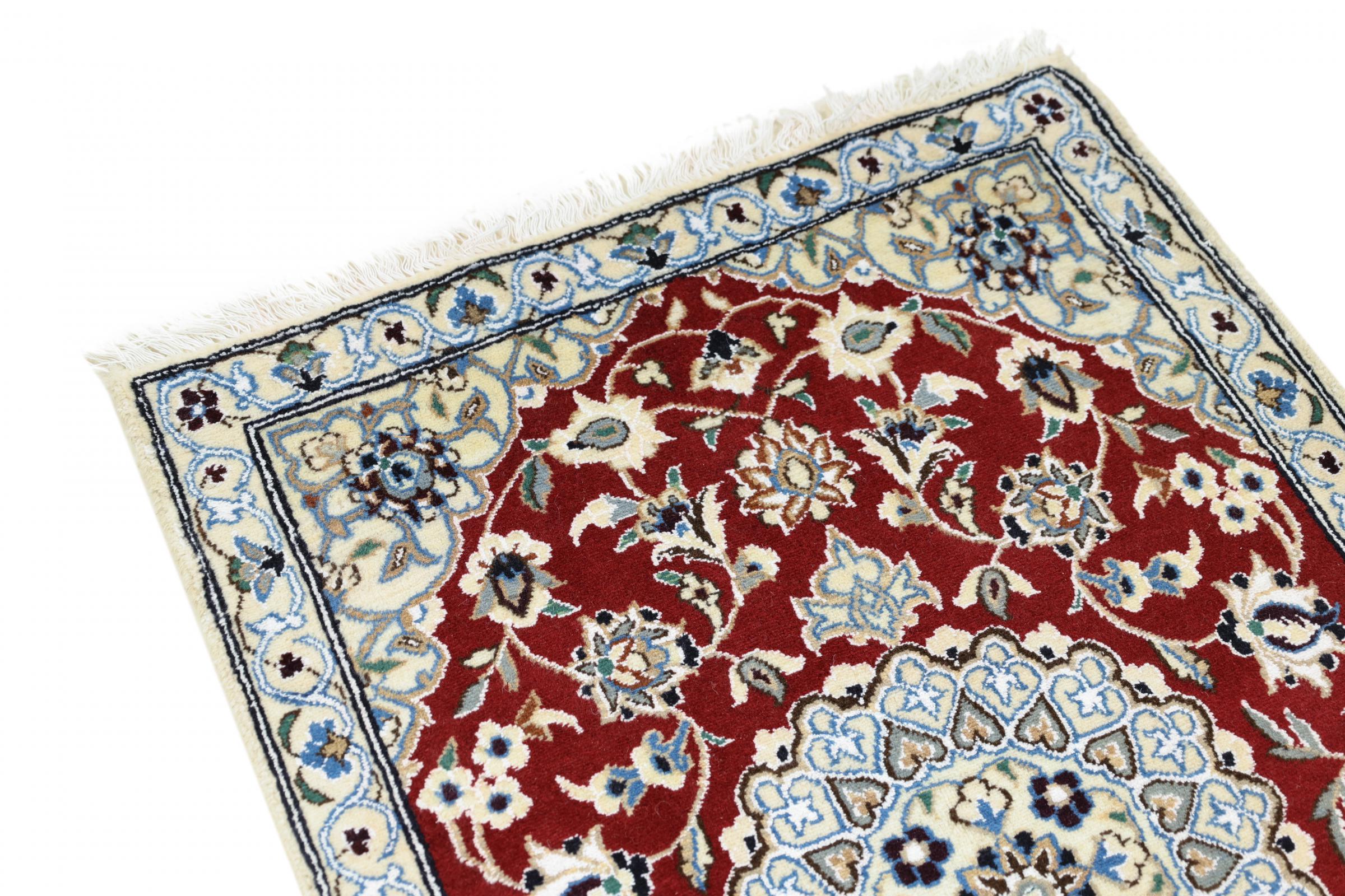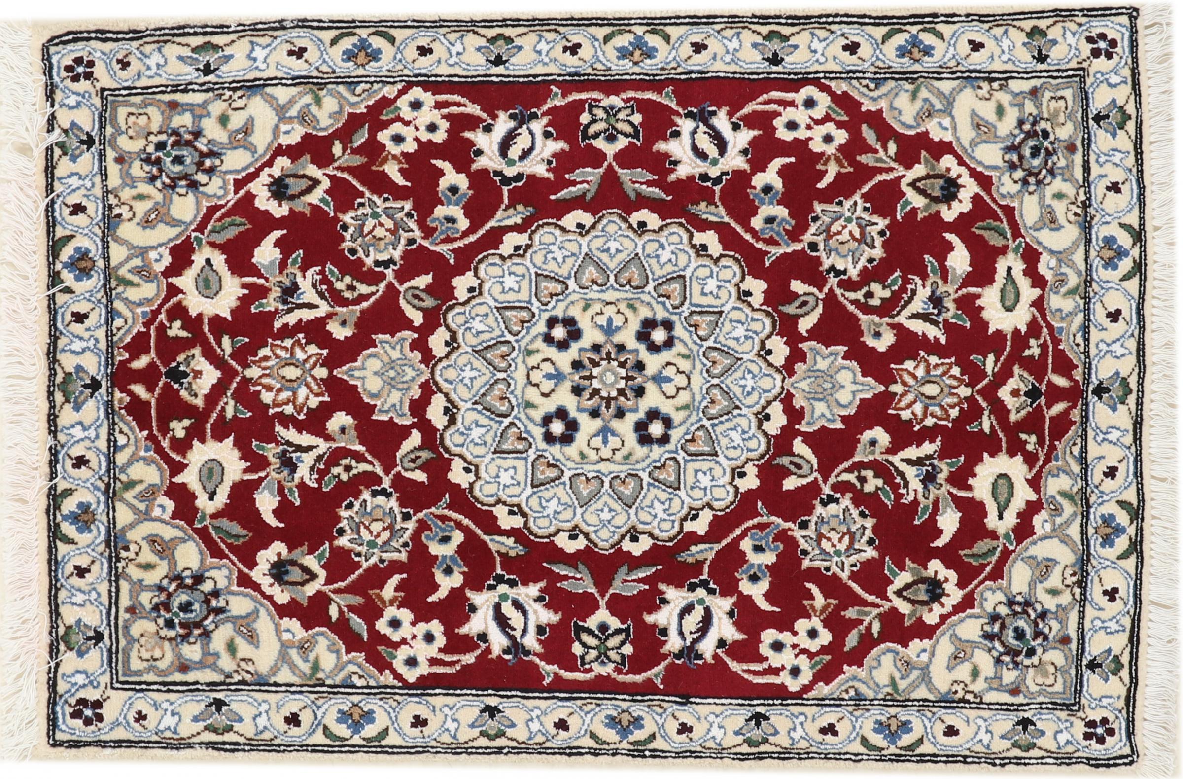 Las alfombras de la ciudad de Nain, en la frontera de uno de los mayores desiertos de Irán, están entre las alfombras persas más famosas del mundo. Su diseño típico es inconfundible con adornos florales, un medallón central y tonos beige y rojo o azul. Gracias a sus designaciones 4La, 6La, 9La y 12La, las sutilezas de una alfombra de Nain se pueden ver a simple vista. Cuanto más bajo sea el número "La", más alta es la densidad del nudo y por lo tanto más fina es la alfombra.