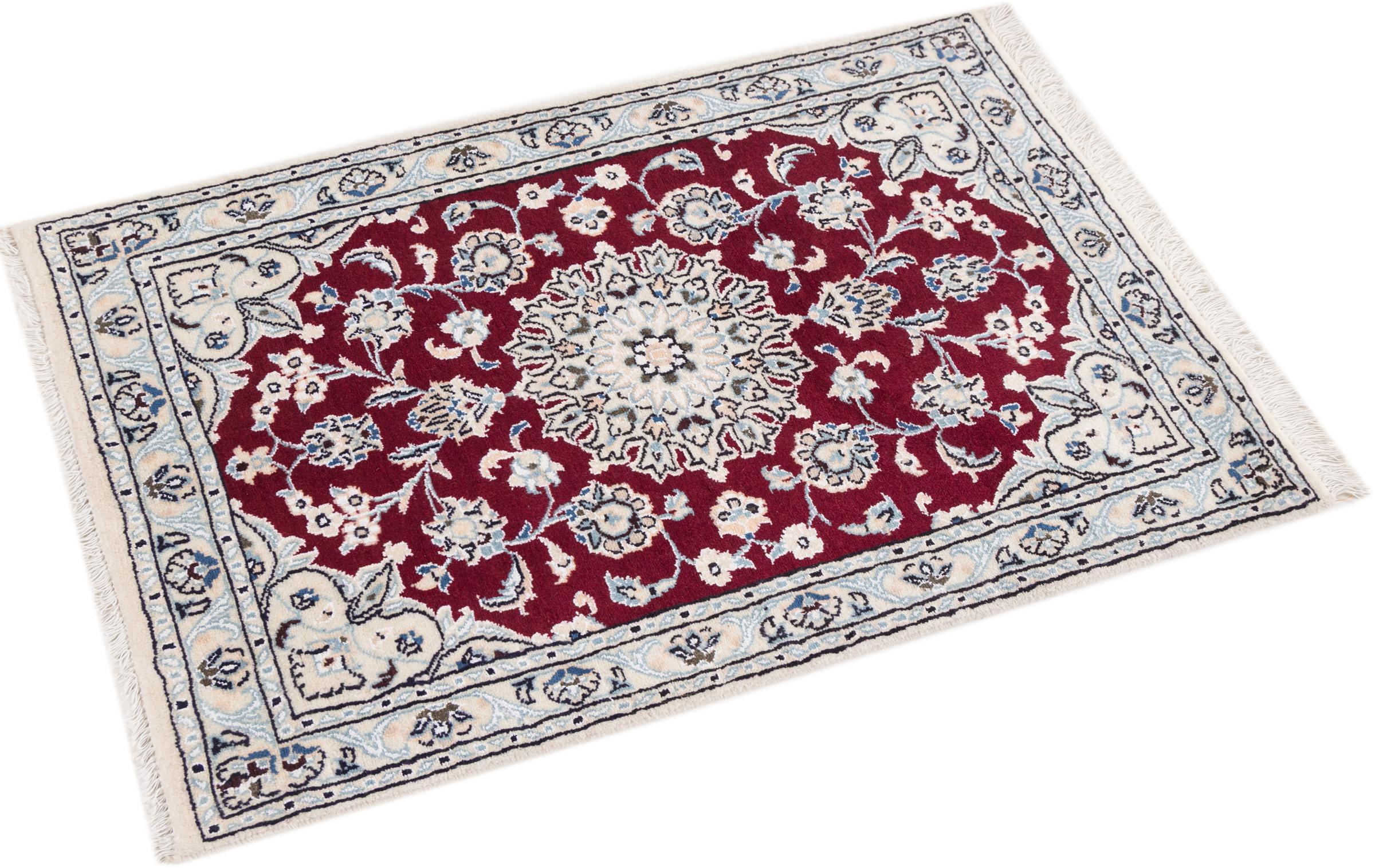 Las alfombras de la ciudad de Nain, en la frontera de uno de los mayores desiertos de Irán, están entre las alfombras persas más famosas del mundo. Su diseño típico es inconfundible con adornos florales, un medallón central y tonos beige y rojo o azul. Gracias a sus designaciones 4La, 6La, 9La y 12La, las sutilezas de una alfombra de Nain se pueden ver a simple vista. Cuanto más bajo sea el número "La", más alta es la densidad del nudo y por lo tanto más fina es la alfombra.