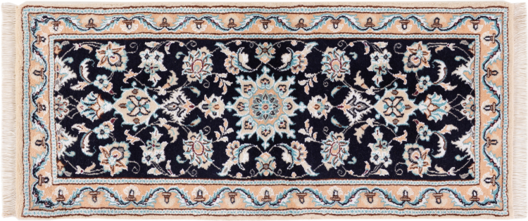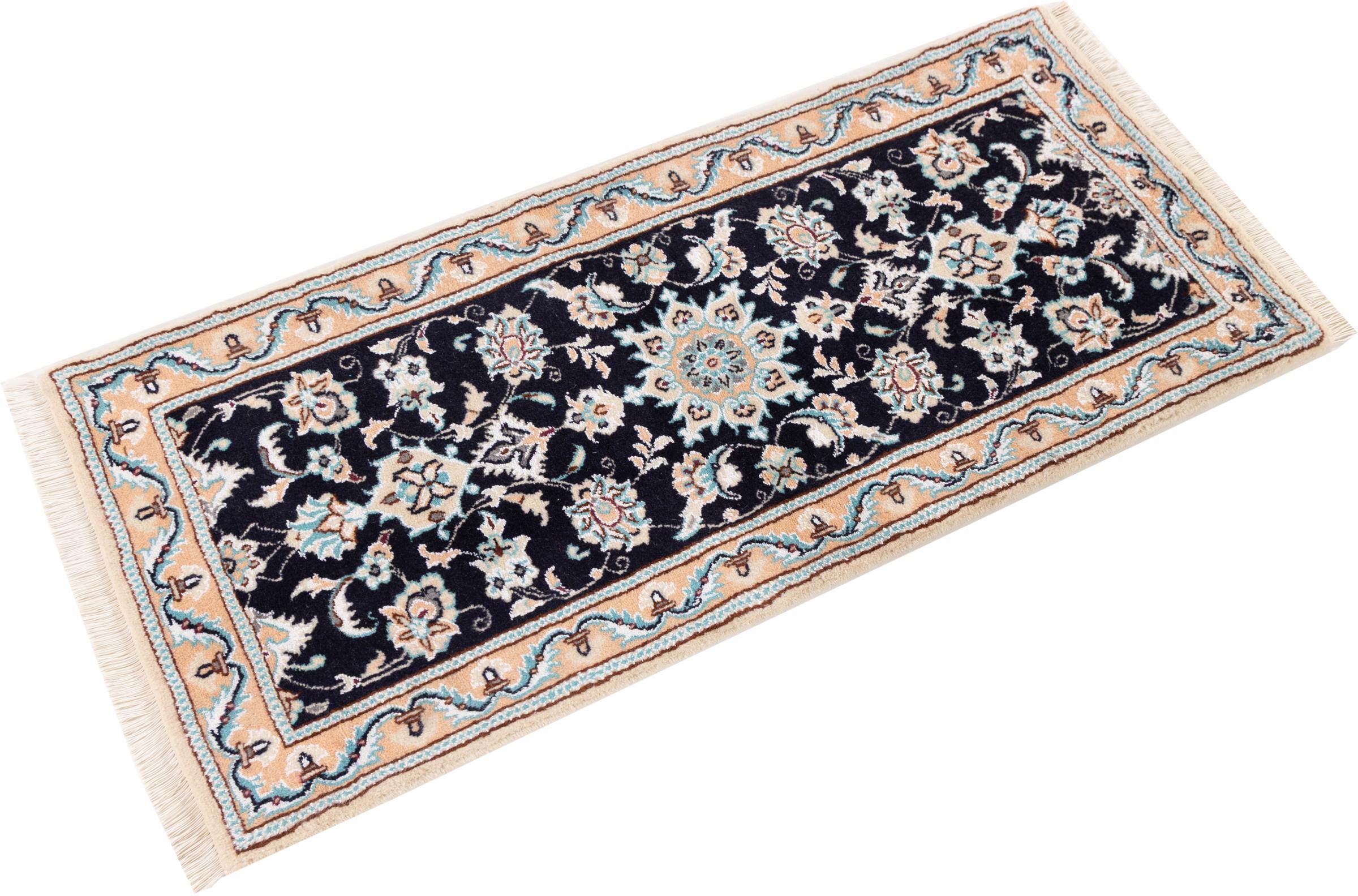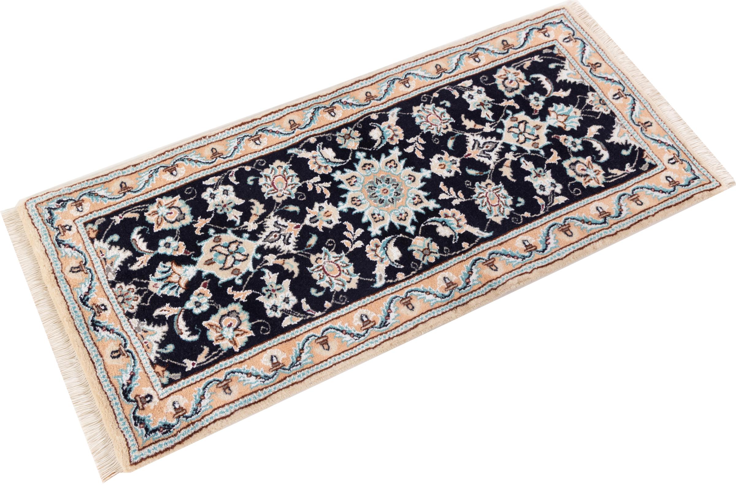 Alfombra número: 3069450021730 Tamaño: 113x50 cm Espesor: alrededor de 10 mm Nudos: 440 000 - 490 000 / m² Elaboración: Anudado a mano Crespón: Lana con seda Urdimbre: Algodón Origen: Persia / Iran Edad: Nuevo Peso: alrededor de 2 kg Cantidad en stock: Única - Solo 1 en stock