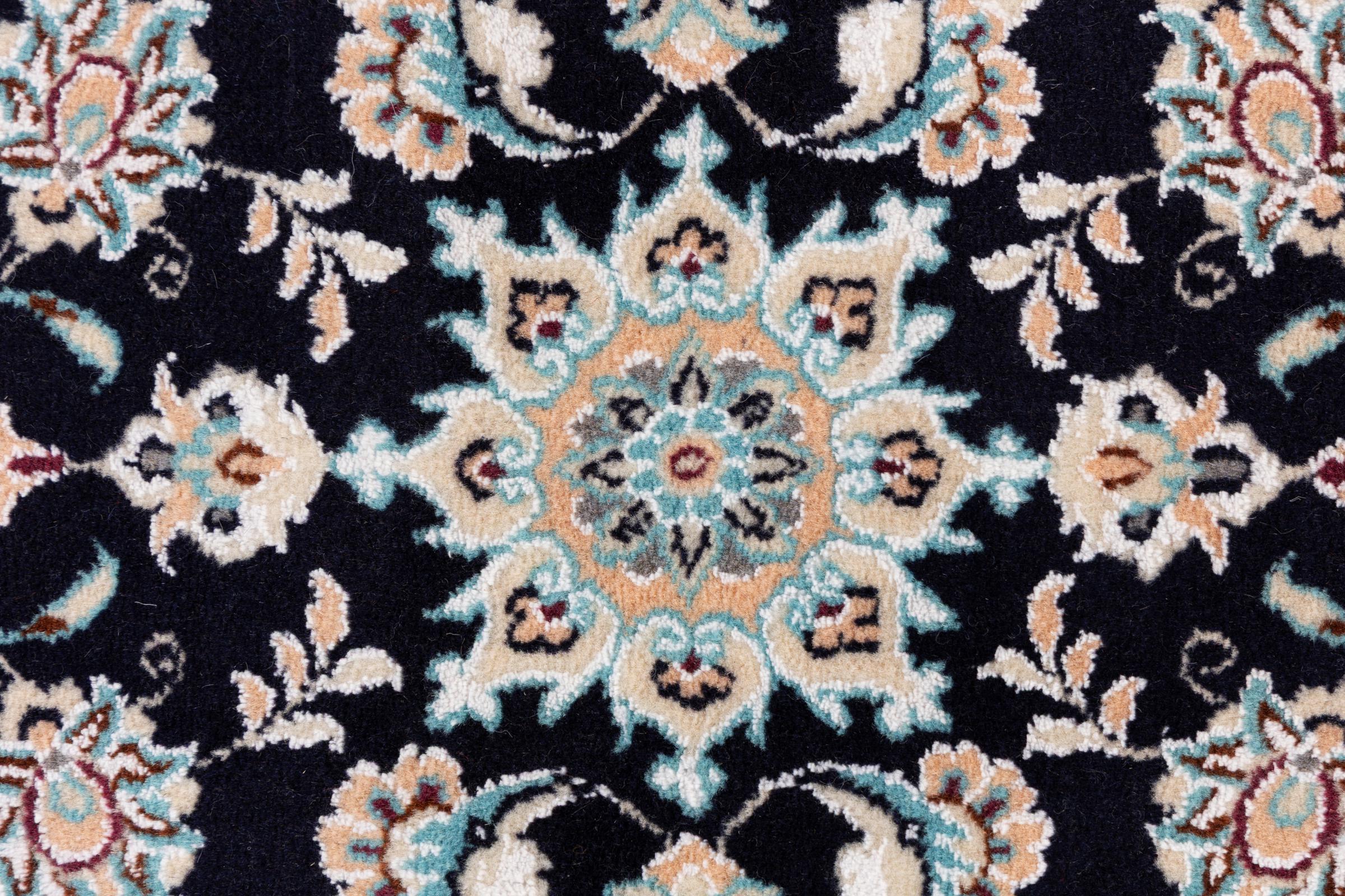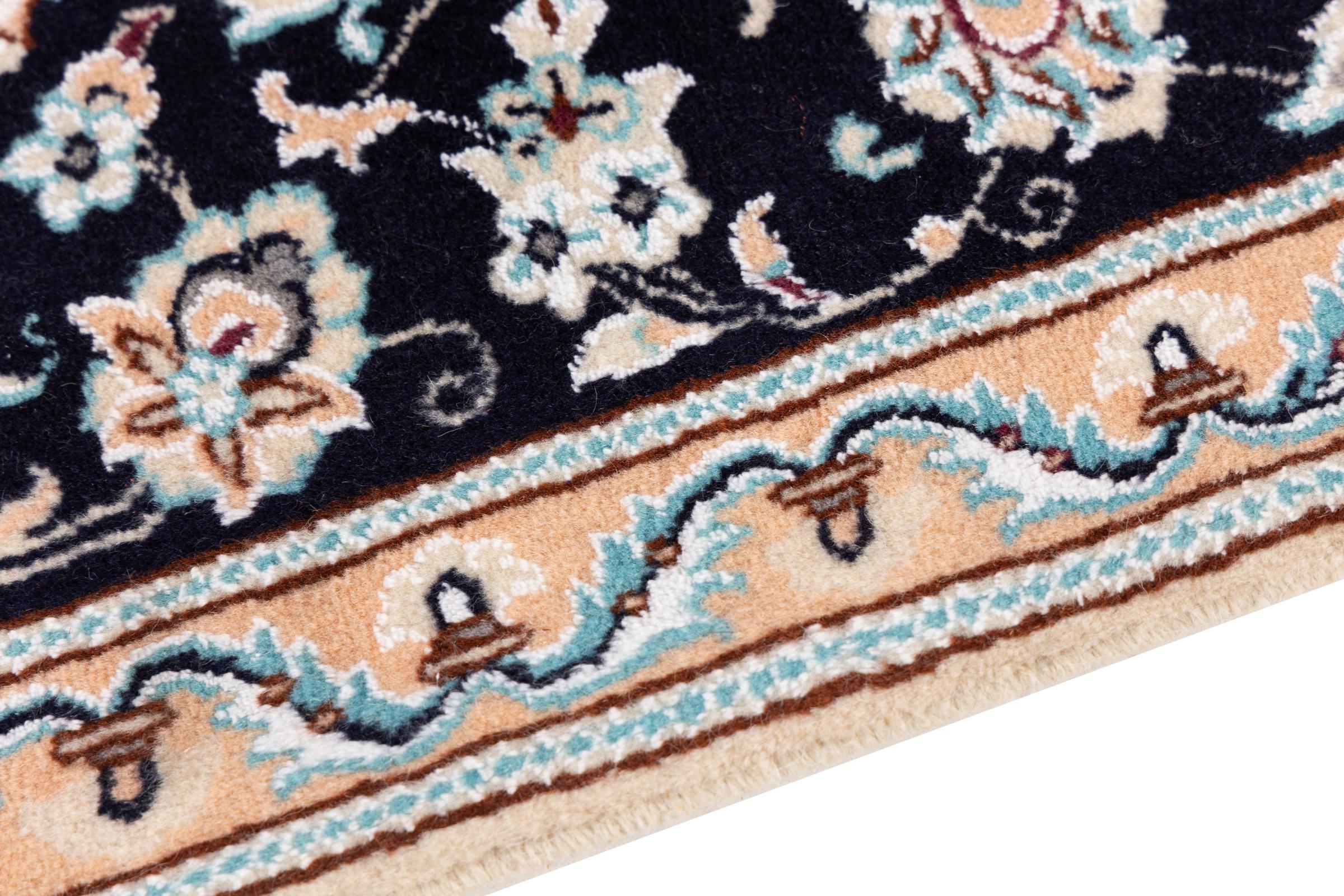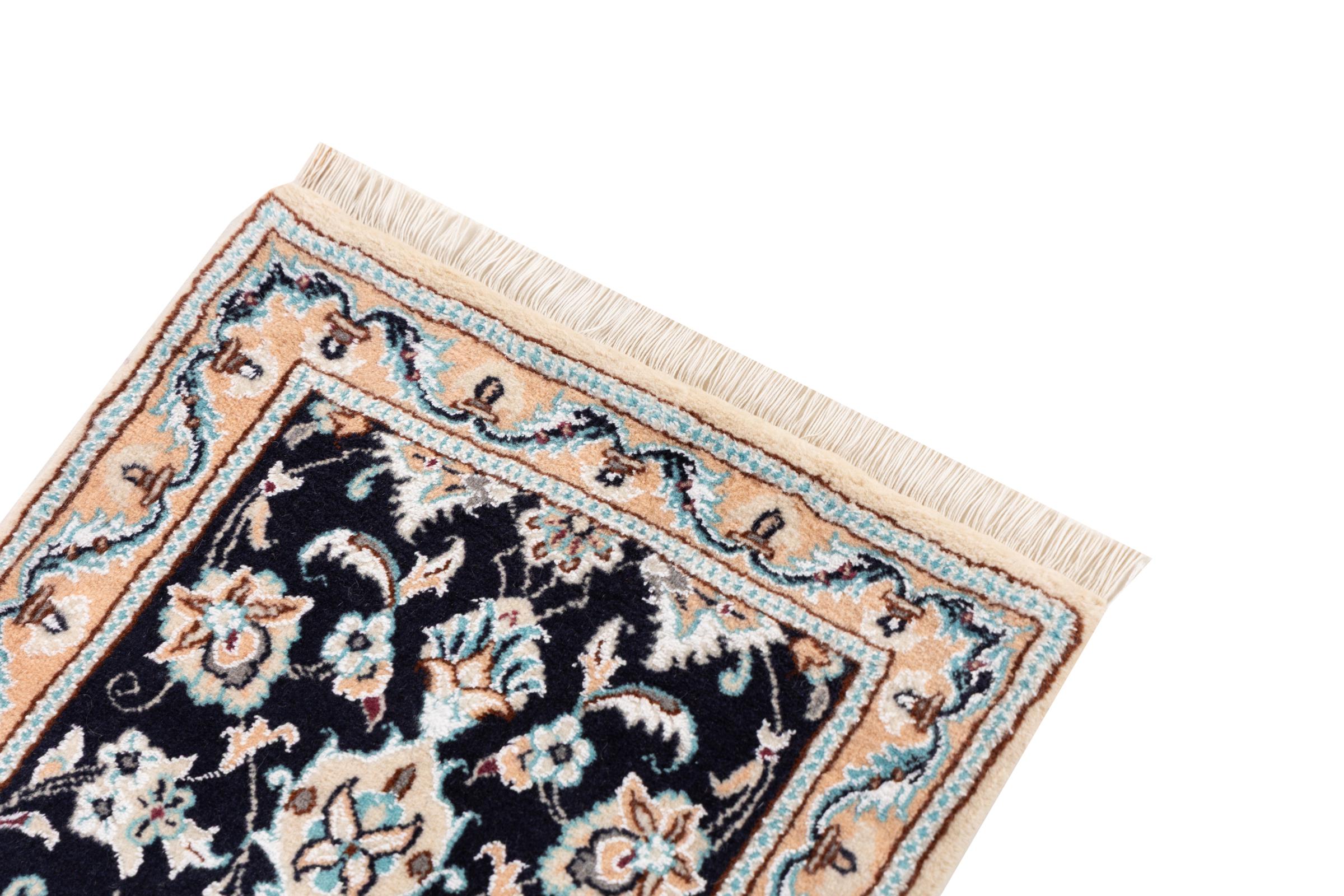 Esta alfombra Nain está clasificada como 9La. Su excelente calidad y su bello diseño oriental con motivos curvilíneos harán las delicias de cualquier comprador. Esta alfombra persa fue anudada a mano en la ciudad de Nain, situada en el extremo occidental del desierto de Dasht-e-Kavir, con lana de alta calidad y seda natural. Las alfombras Nain 9La son claramente más finas que las 12La y ya muestran bellos detalles.