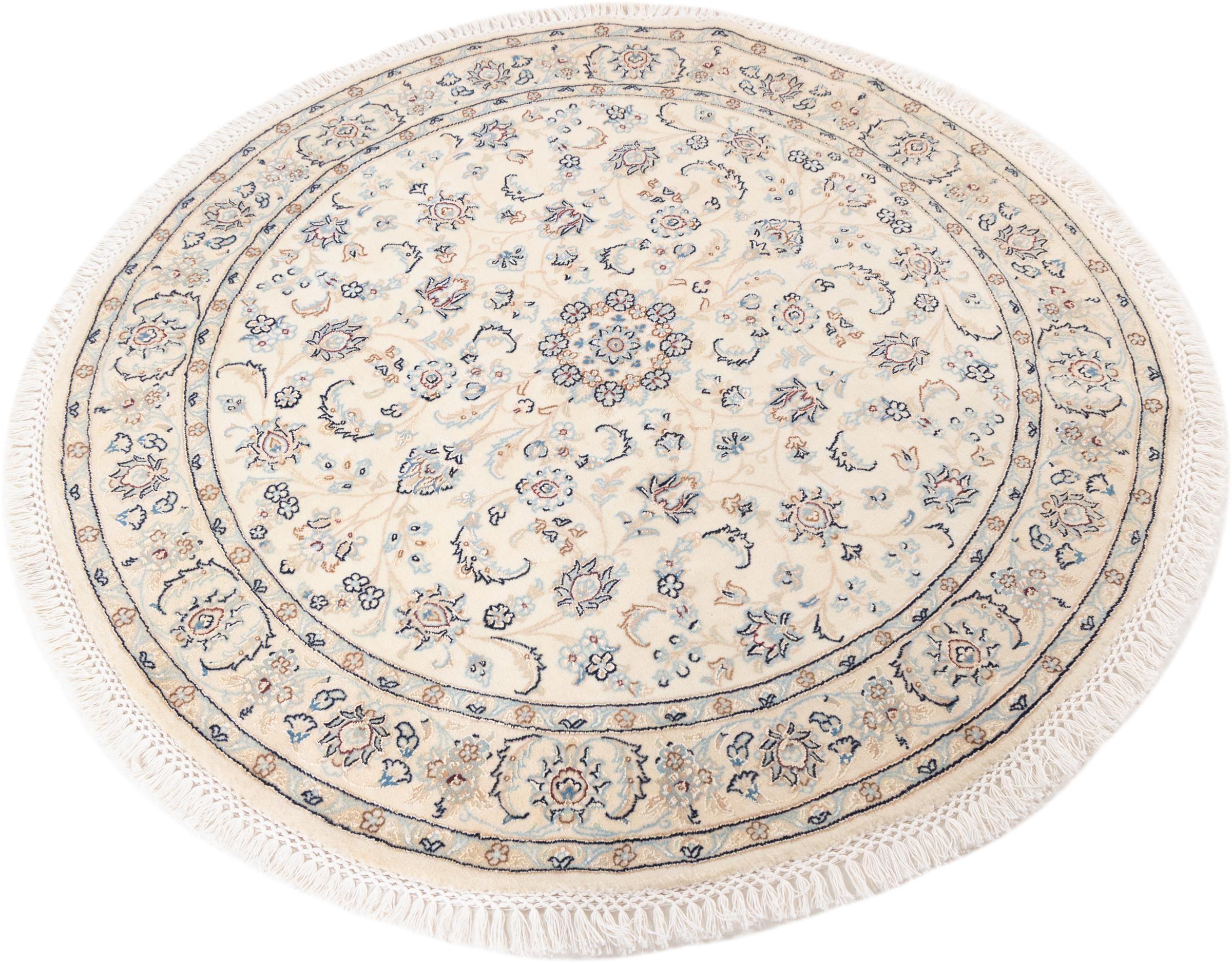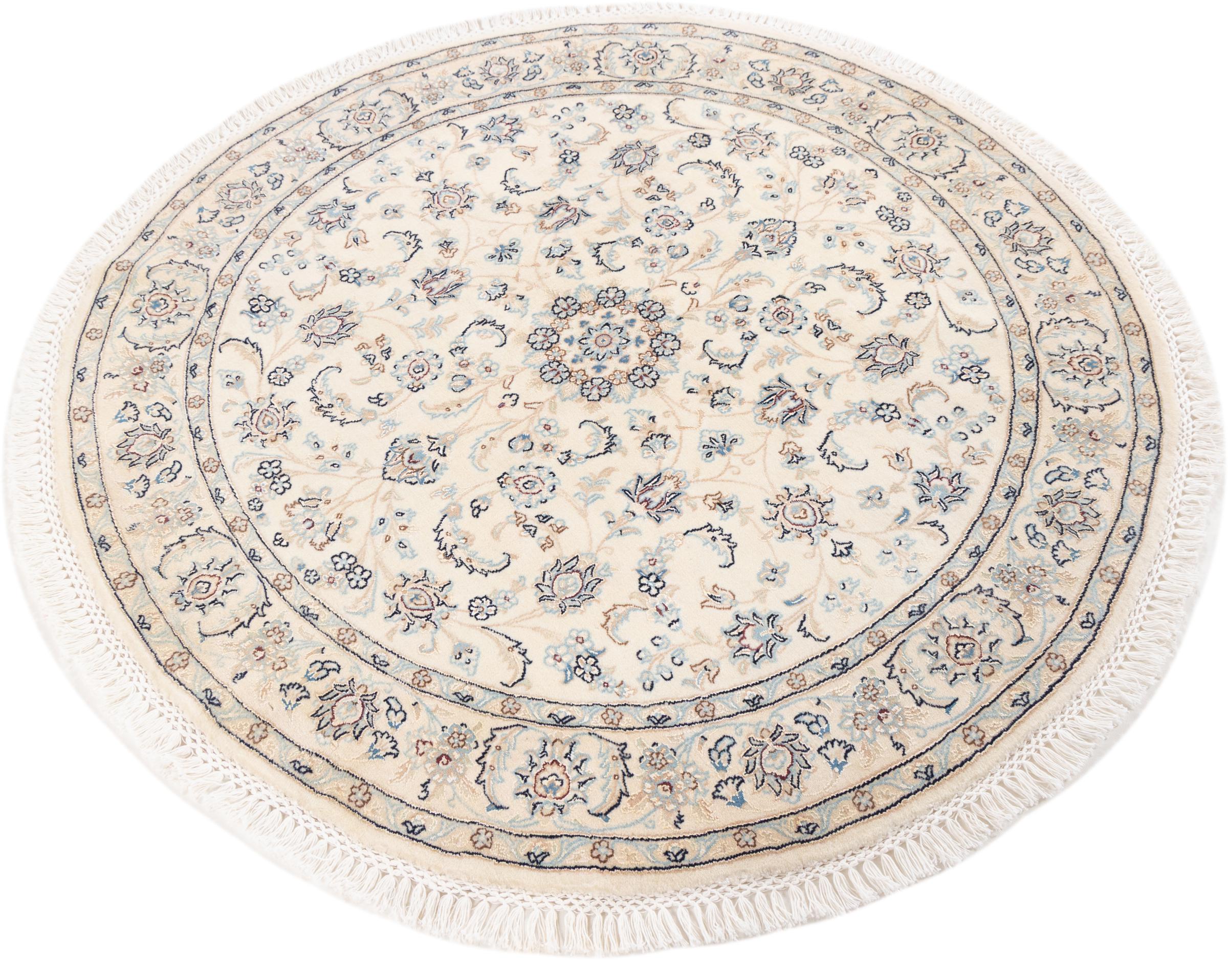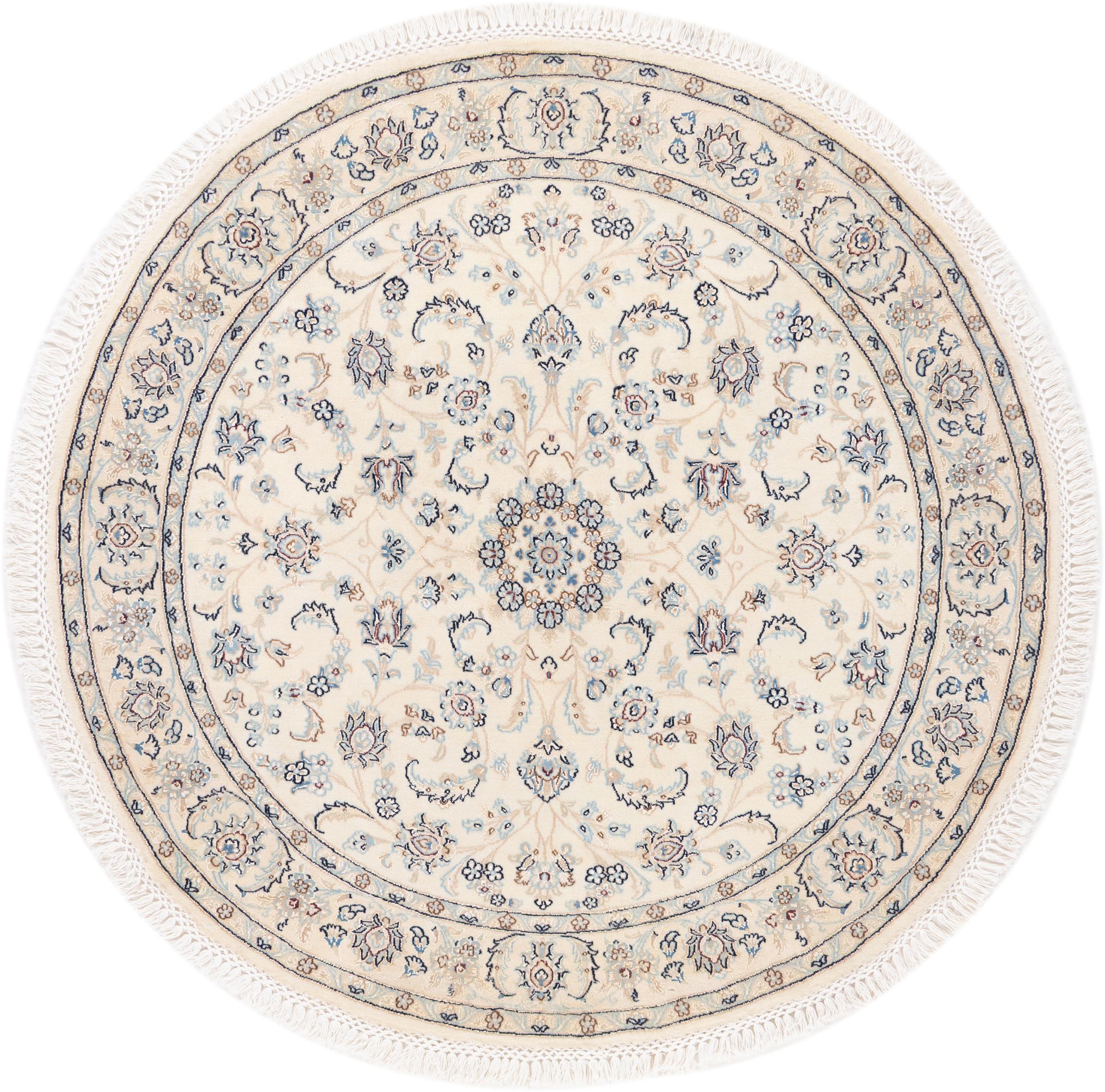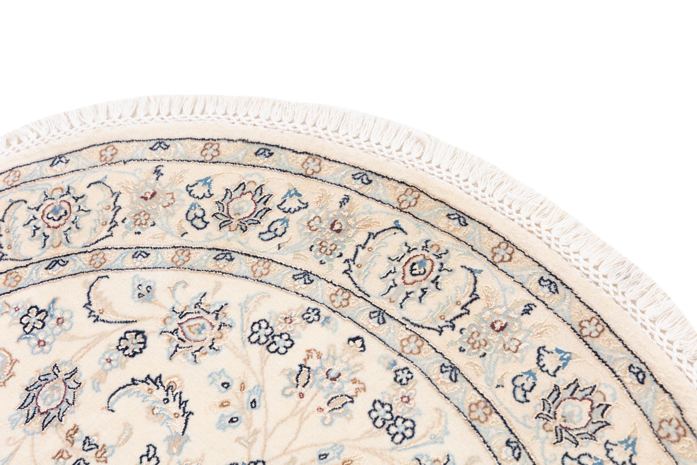 Esta alfombra Nain está clasificada como 9La. Su excelente calidad y su bello diseño oriental con motivos curvilíneos harán las delicias de cualquier comprador. Esta alfombra persa fue anudada a mano en la ciudad de Nain, situada en el extremo occidental del desierto de Dasht-e-Kavir, con lana de alta calidad y seda natural. Las alfombras Nain 9La son claramente más finas que las 12La y ya muestran bellos detalles.