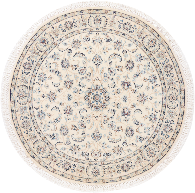Las alfombras de la ciudad de Nain, en la frontera de uno de los mayores desiertos de Irán, están entre las alfombras persas más famosas del mundo. Su diseño típico es inconfundible con adornos florales, un medallón central y tonos beige y rojo o azul. Gracias a sus designaciones 4La, 6La, 9La y 12La, las sutilezas de una alfombra de Nain se pueden ver a simple vista. Cuanto más bajo sea el número "La", más alta es la densidad del nudo y por lo tanto más fina es la alfombra.