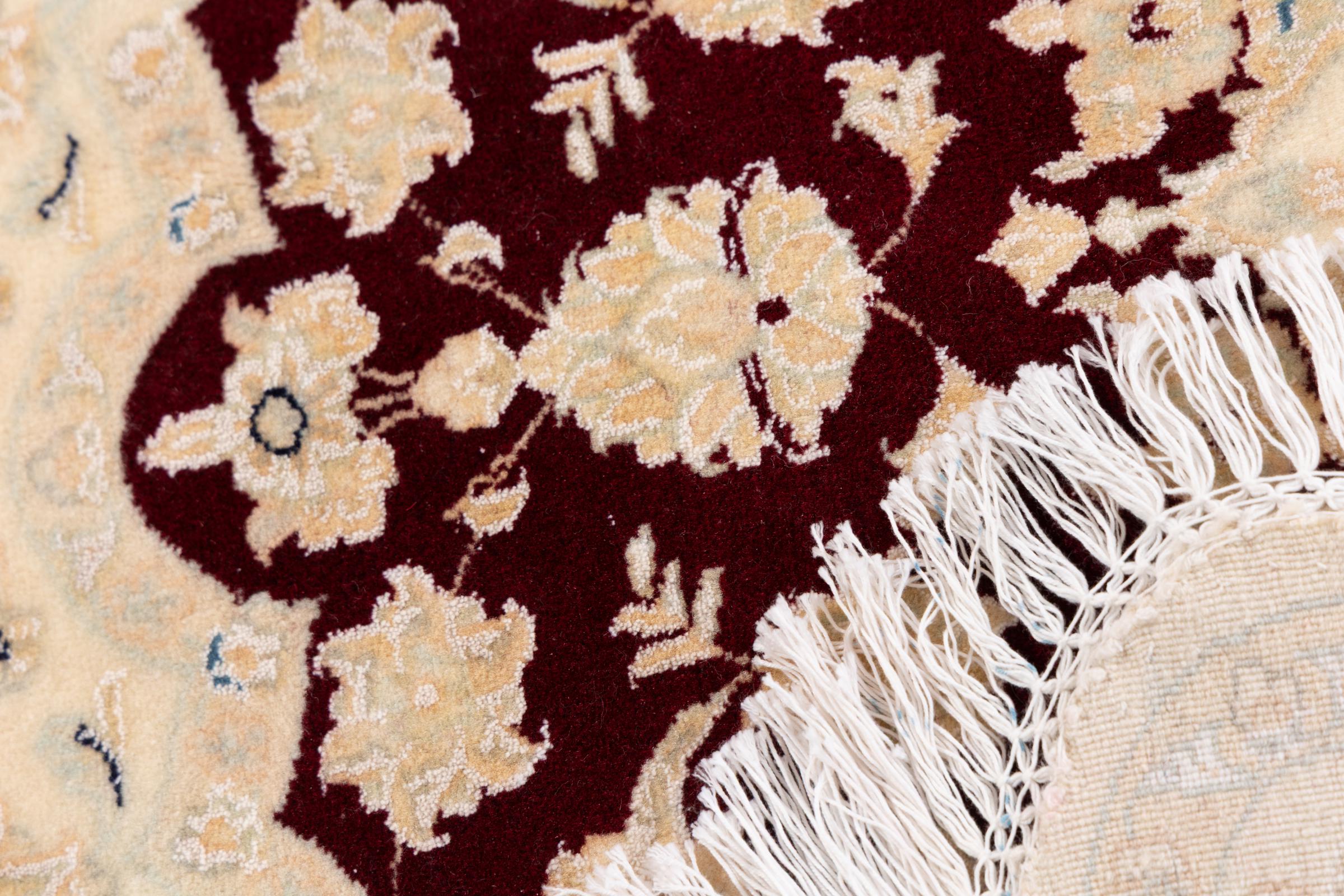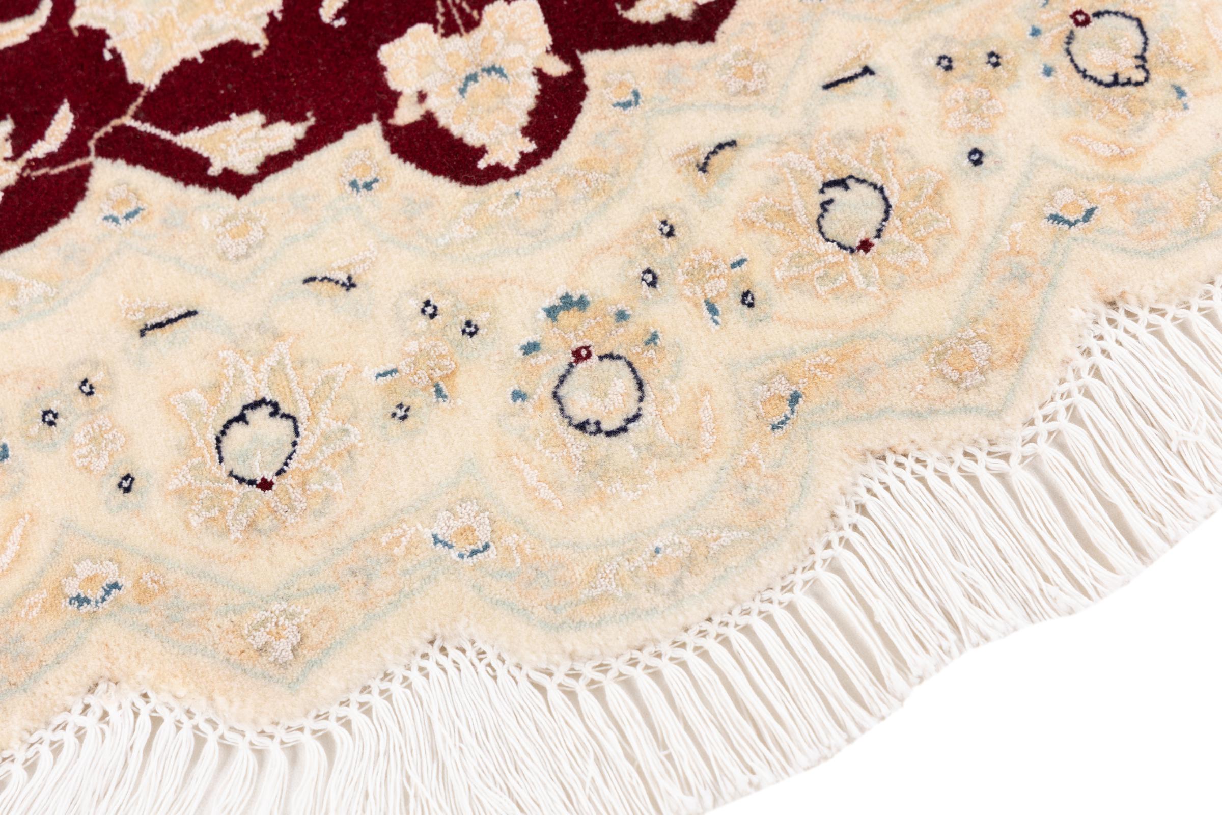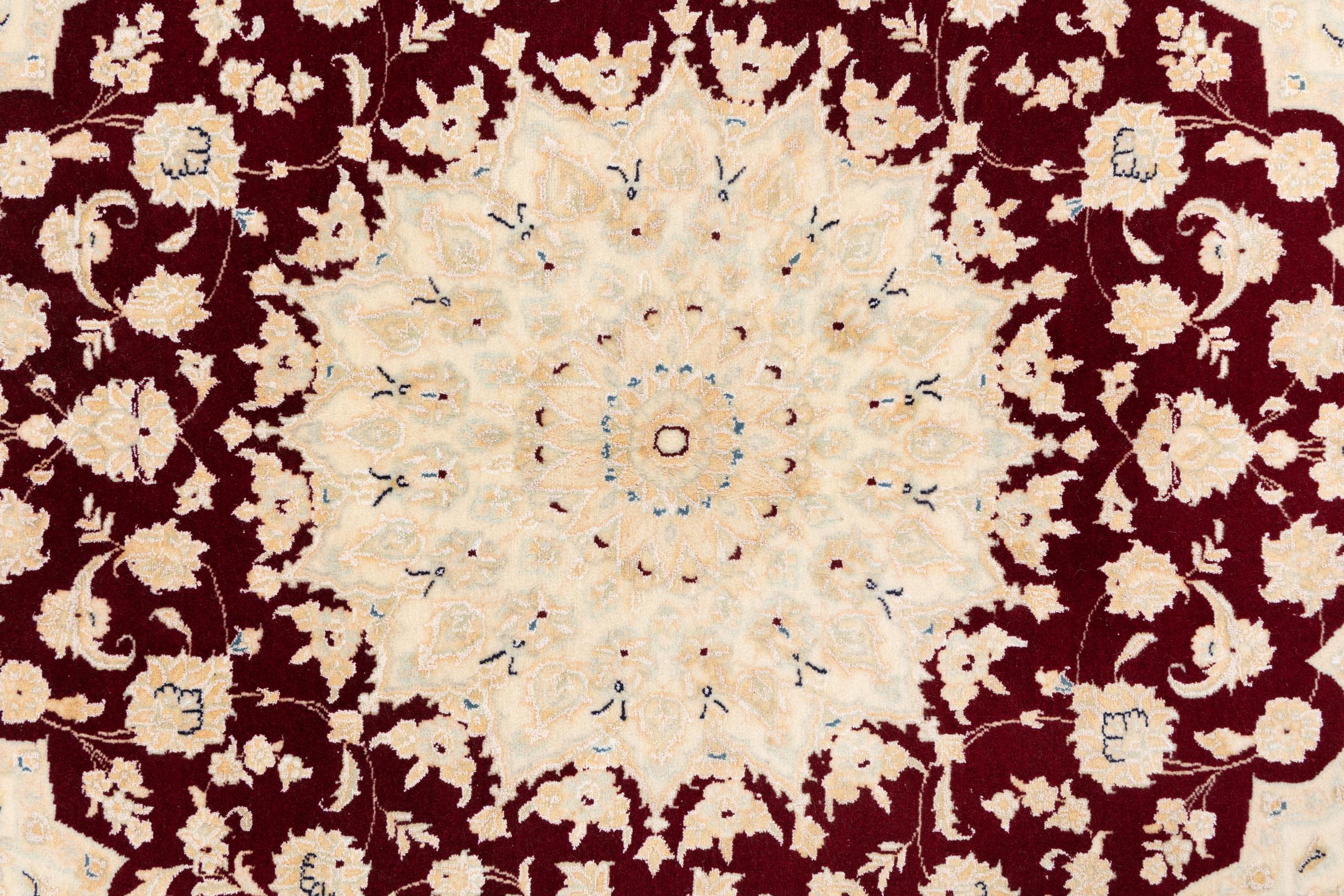 Esta alfombra Nain está clasificada como 9La. Su excelente calidad y su bello diseño oriental con motivos curvilíneos harán las delicias de cualquier comprador. Esta alfombra persa fue anudada a mano en la ciudad de Nain, situada en el extremo occidental del desierto de Dasht-e-Kavir, con lana de alta calidad y seda natural. Las alfombras Nain 9La son claramente más finas que las 12La y ya muestran bellos detalles.