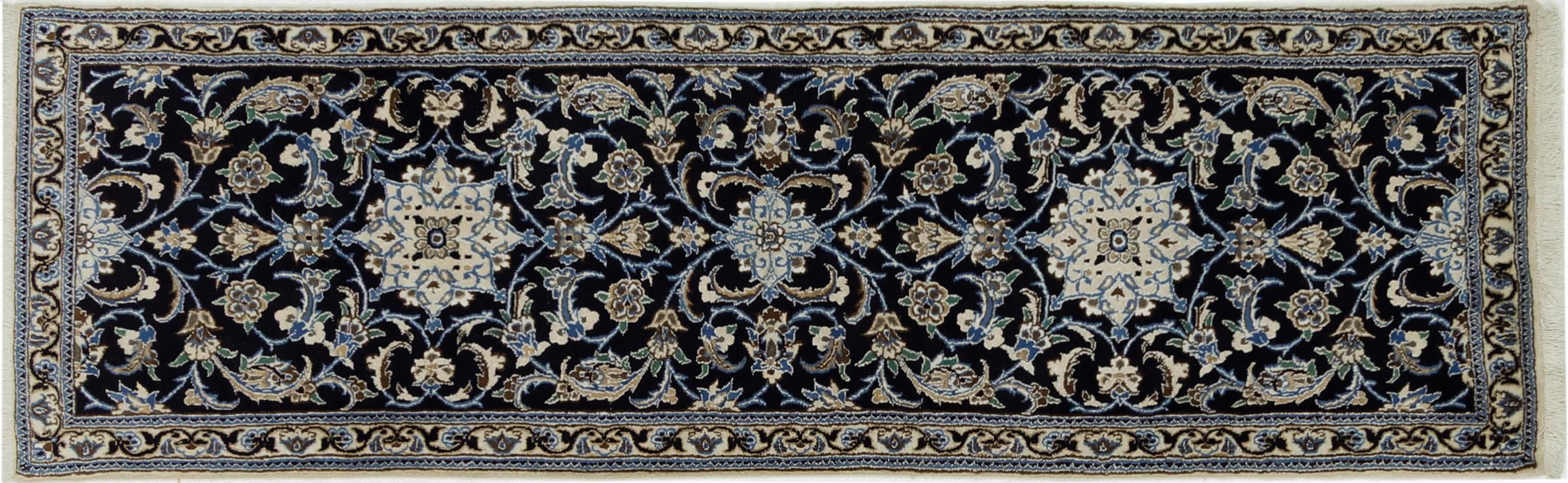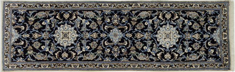 Alfombra número: 303973008556566 Tamaño: 194x61 cm Espesor: alrededor de 10 mm Nudos: 320 000 - 360 000 / m² Elaboración: Anudado a mano Crespón: Lana con seda Urdimbre: Algodón Origen: Persia / Iran Edad: Nuevo Peso: alrededor de 4 kg Cantidad en stock: Única - Solo 1 en stock