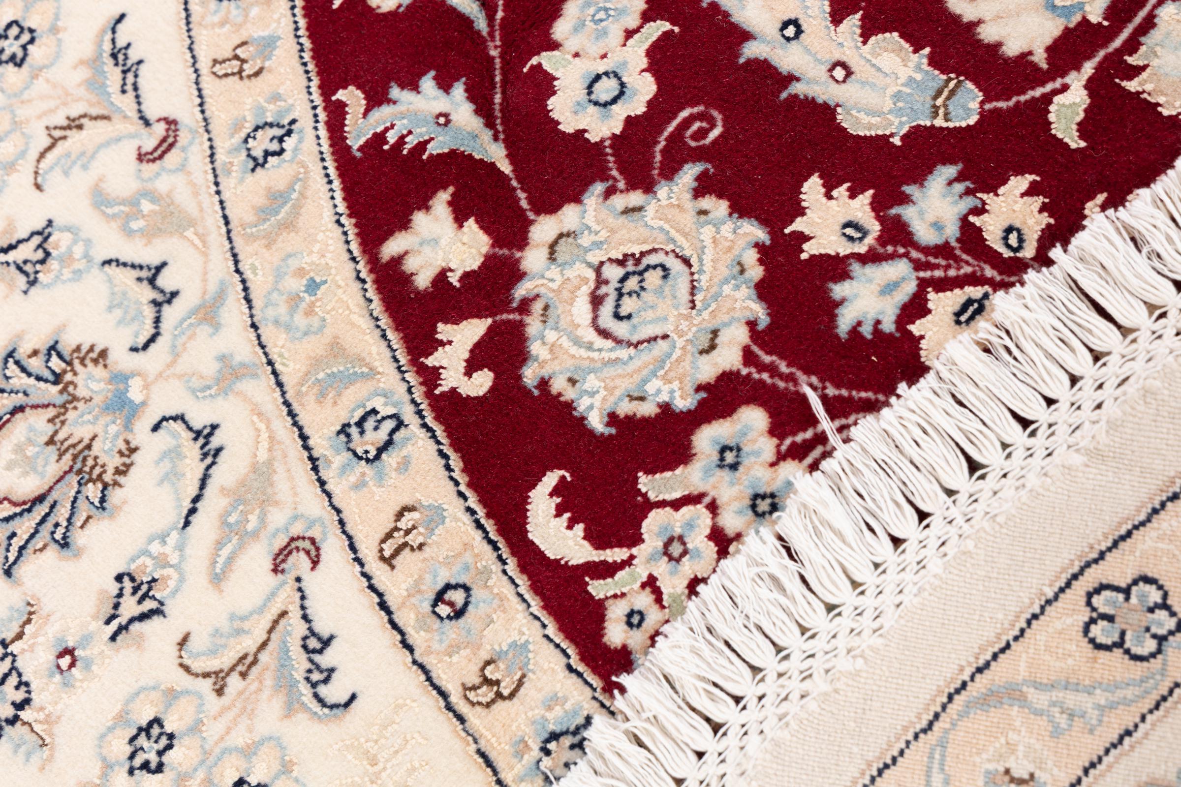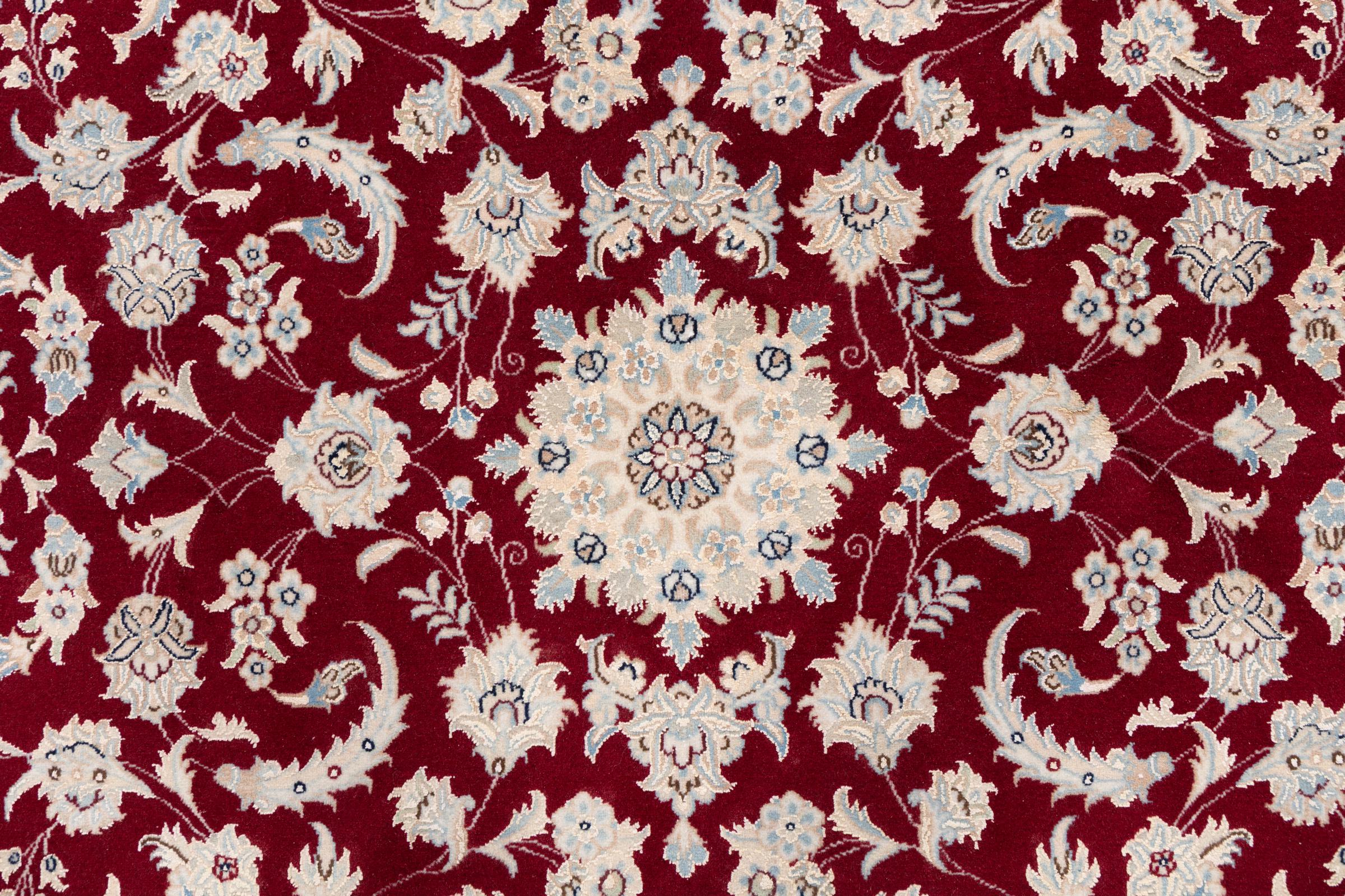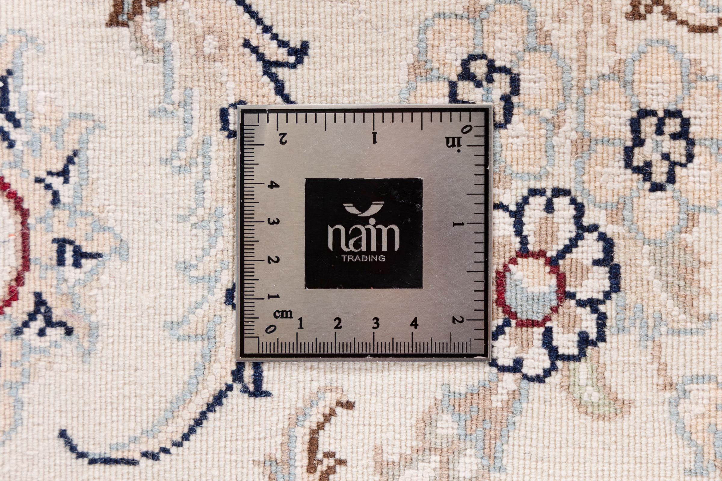 Esta alfombra Nain está clasificada como 9La. Su excelente calidad y su bello diseño oriental con motivos curvilíneos harán las delicias de cualquier comprador. Esta alfombra persa fue anudada a mano en la ciudad de Nain, situada en el extremo occidental del desierto de Dasht-e-Kavir, con lana de alta calidad y seda natural. Las alfombras Nain 9La son claramente más finas que las 12La y ya muestran bellos detalles.