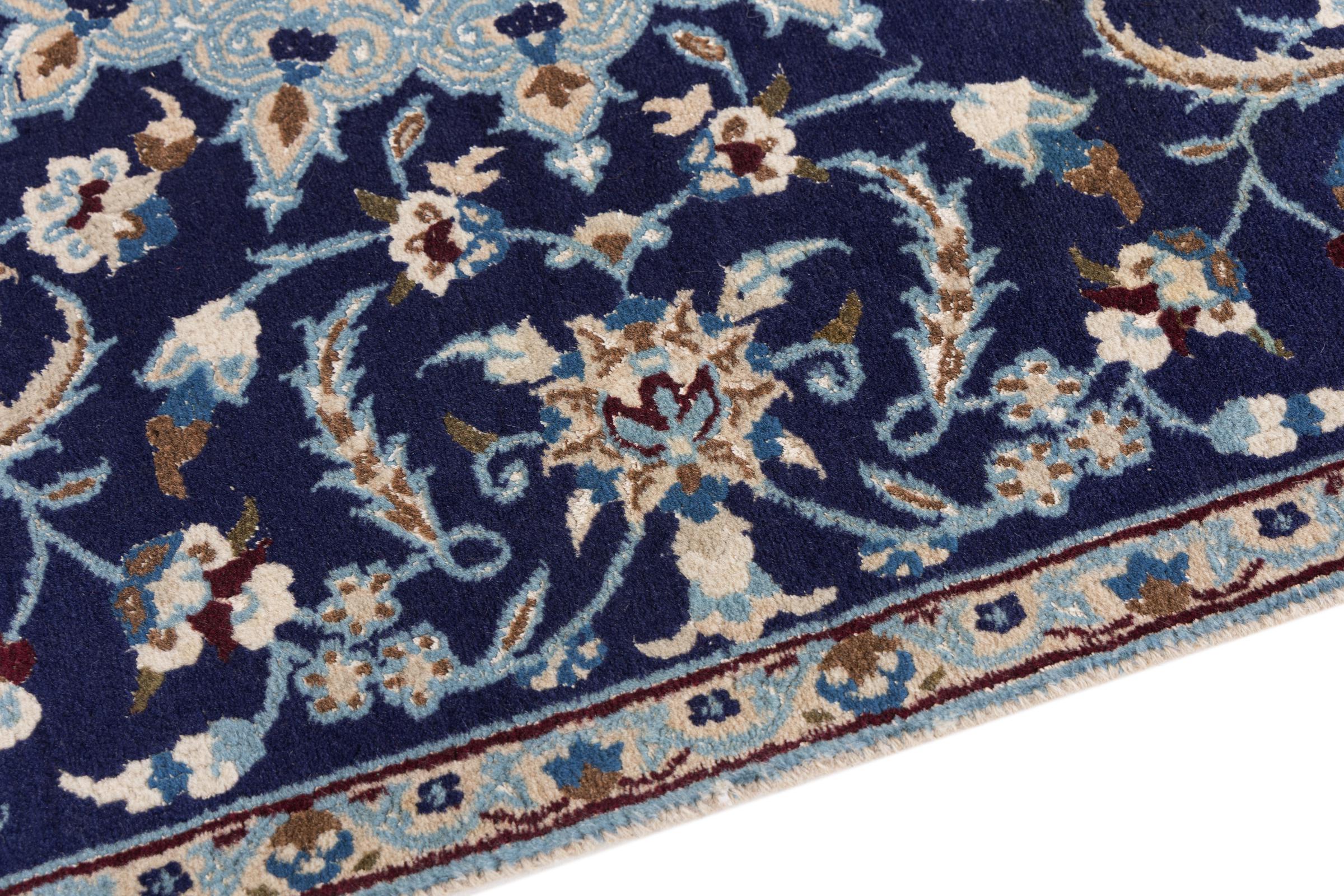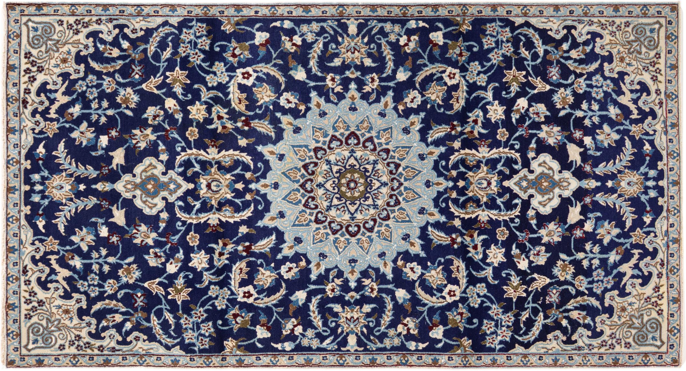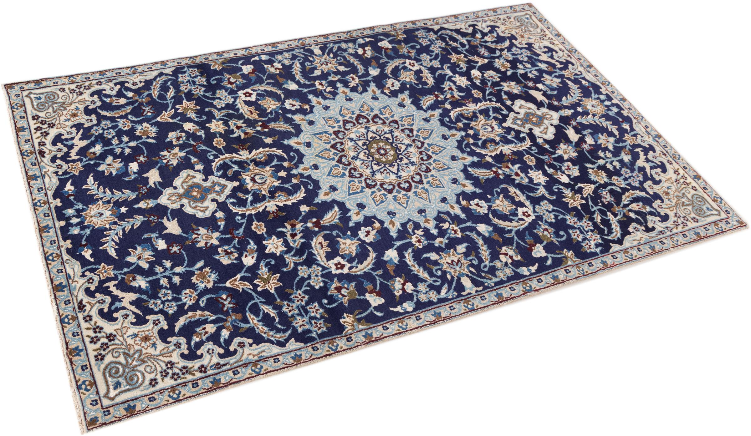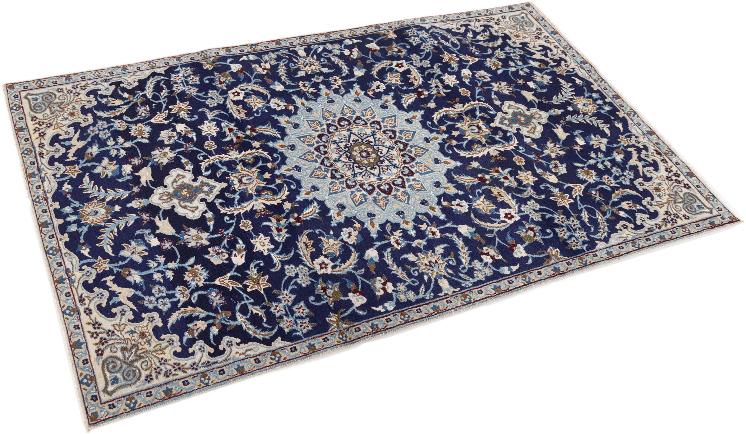 Esta alfombra Nain está clasificada como 9La. Su excelente calidad y su bello diseño oriental con motivos curvilíneos harán las delicias de cualquier comprador. Esta alfombra persa fue anudada a mano en la ciudad de Nain, situada en el extremo occidental del desierto de Dasht-e-Kavir, con lana de alta calidad y seda natural. Las alfombras Nain 9La son claramente más finas que las 12La y ya muestran bellos detalles.