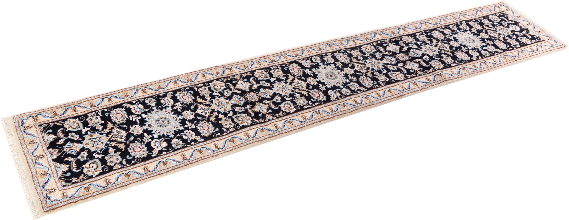 Alfombra número: 3069310021727 Tamaño: 312x50 cm Espesor: alrededor de 10 mm Nudos: 440 000 - 490 000 / m² Elaboración: Anudado a mano Crespón: Lana con seda Urdimbre: Algodón Origen: Persia / Iran Edad: Nuevo Peso: alrededor de 5 kg Cantidad en stock: Única - Solo 1 en stock
