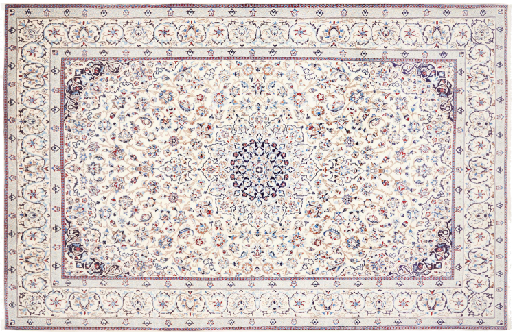 Las alfombras de la ciudad de Nain, en la frontera de uno de los mayores desiertos de Irán, están entre las alfombras persas más famosas del mundo. Su diseño típico es inconfundible con adornos florales, un medallón central y tonos beige y rojo o azul. Gracias a sus designaciones 4La, 6La, 9La y 12La, las sutilezas de una alfombra de Nain se pueden ver a simple vista. Cuanto más bajo sea el número "La", más alta es la densidad del nudo y por lo tanto más fina es la alfombra.
