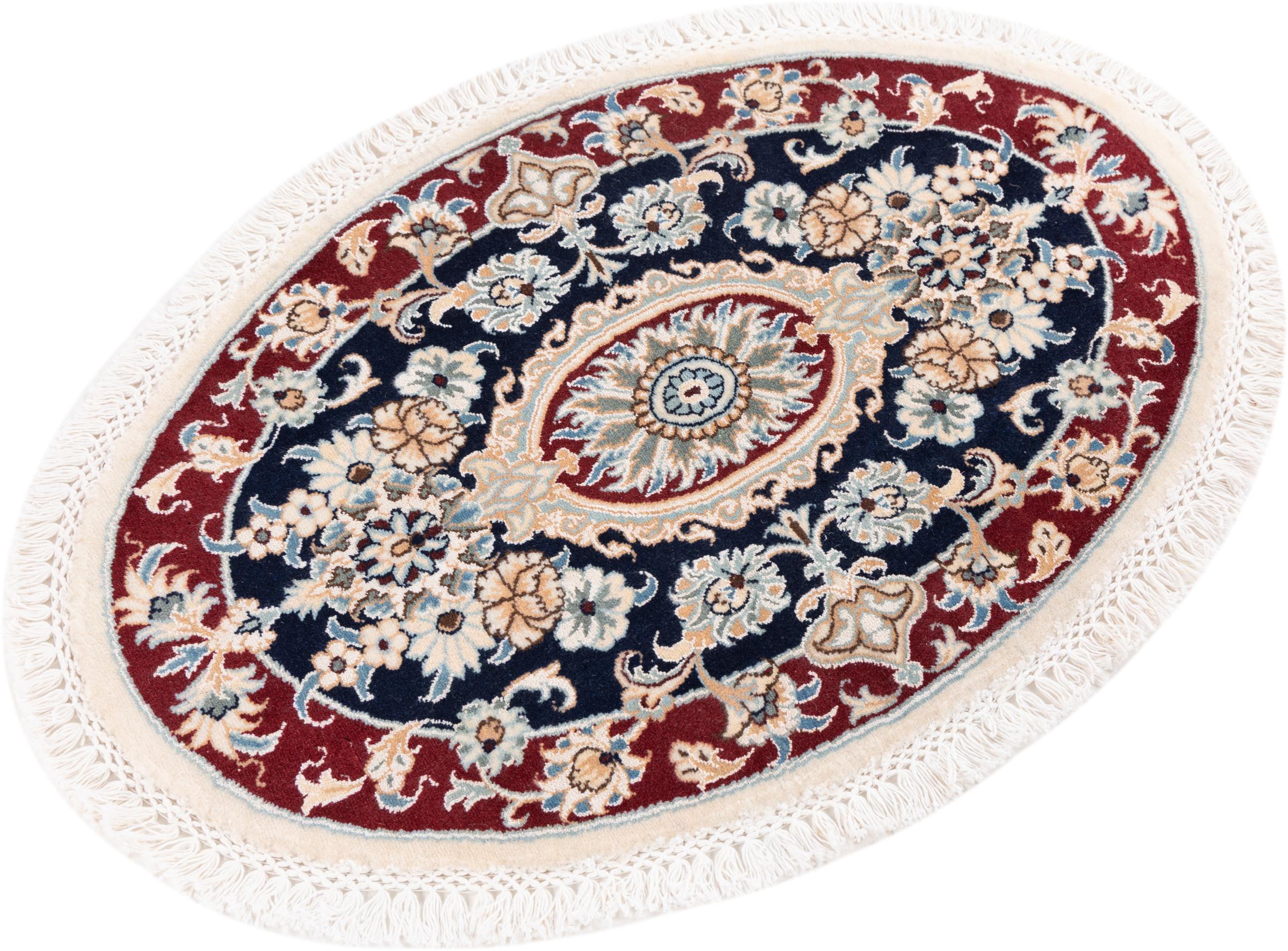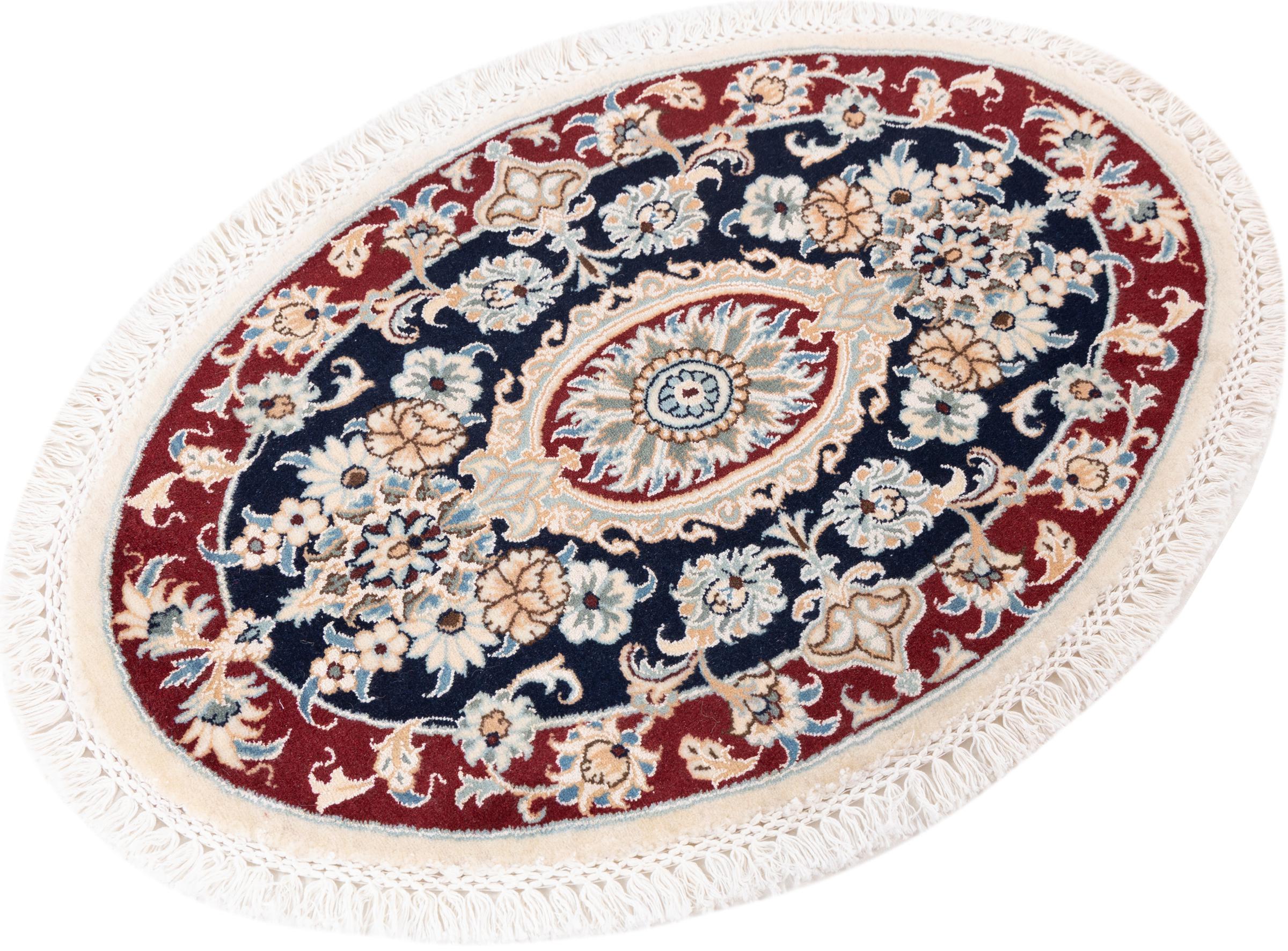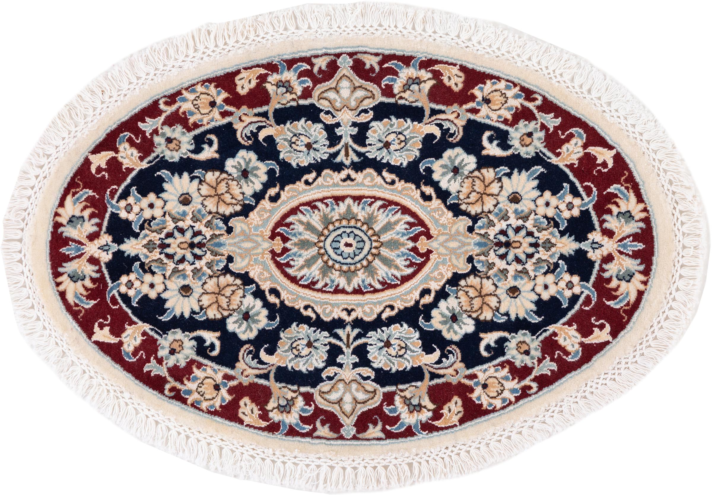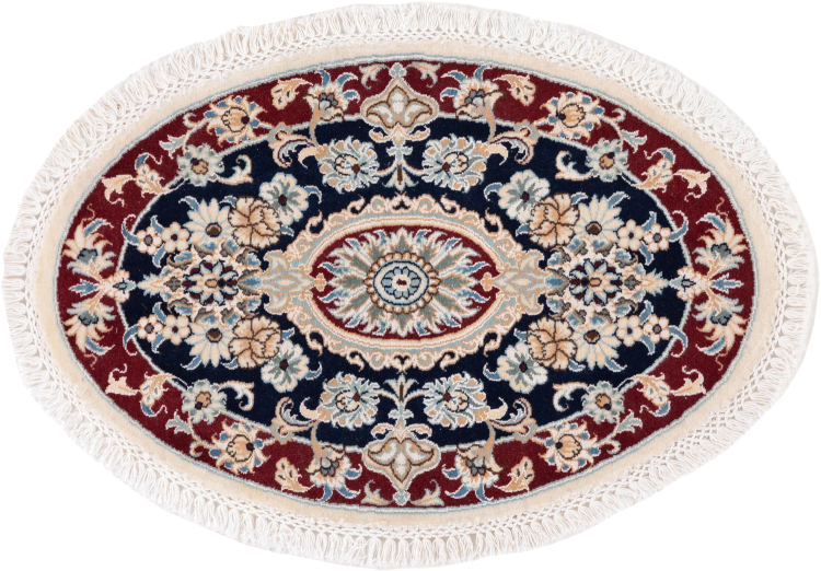Las alfombras de la ciudad de Nain, en la frontera de uno de los mayores desiertos de Irán, están entre las alfombras persas más famosas del mundo. Su diseño típico es inconfundible con adornos florales, un medallón central y tonos beige y rojo o azul. Gracias a sus designaciones 4La, 6La, 9La y 12La, las sutilezas de una alfombra de Nain se pueden ver a simple vista. Cuanto más bajo sea el número "La", más alta es la densidad del nudo y por lo tanto más fina es la alfombra.