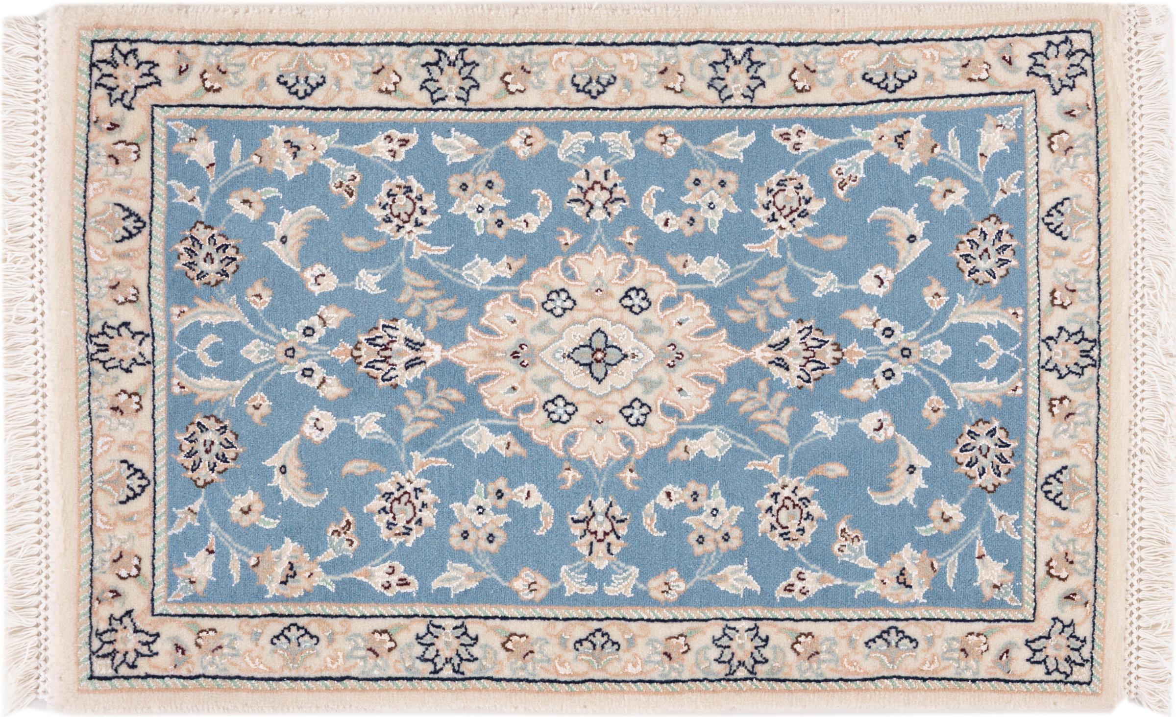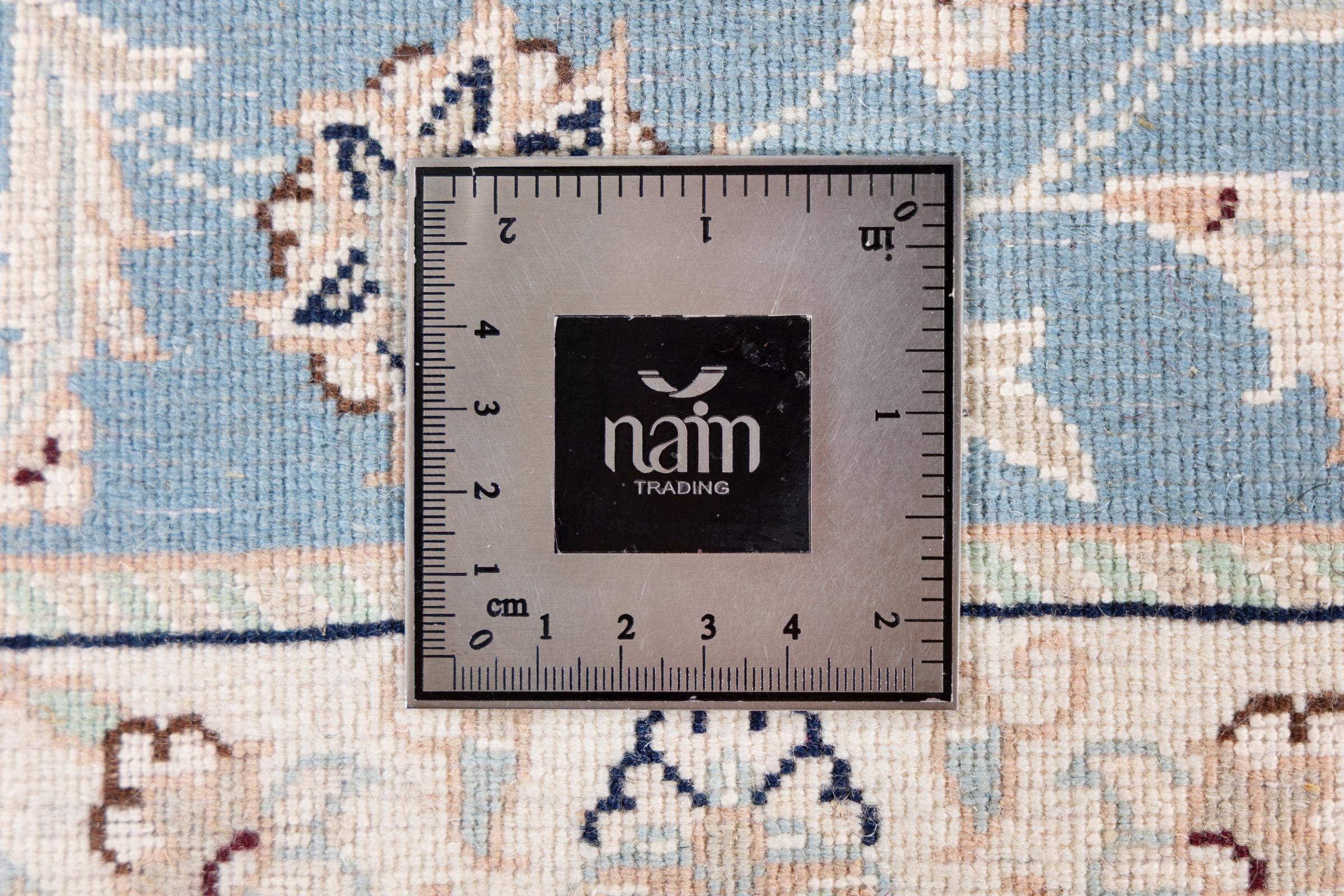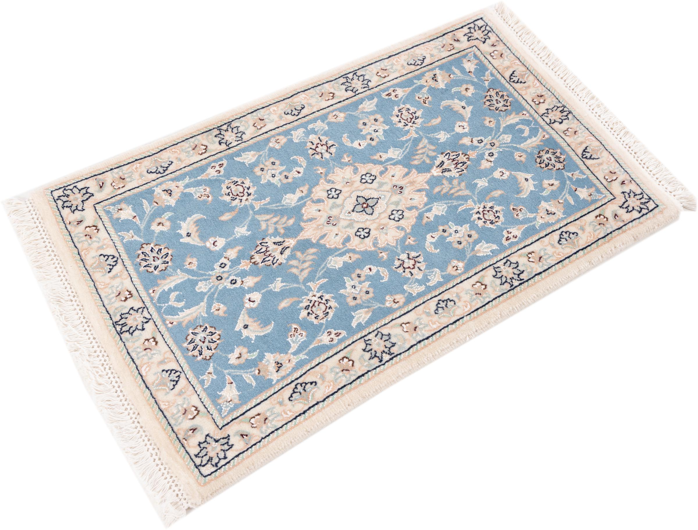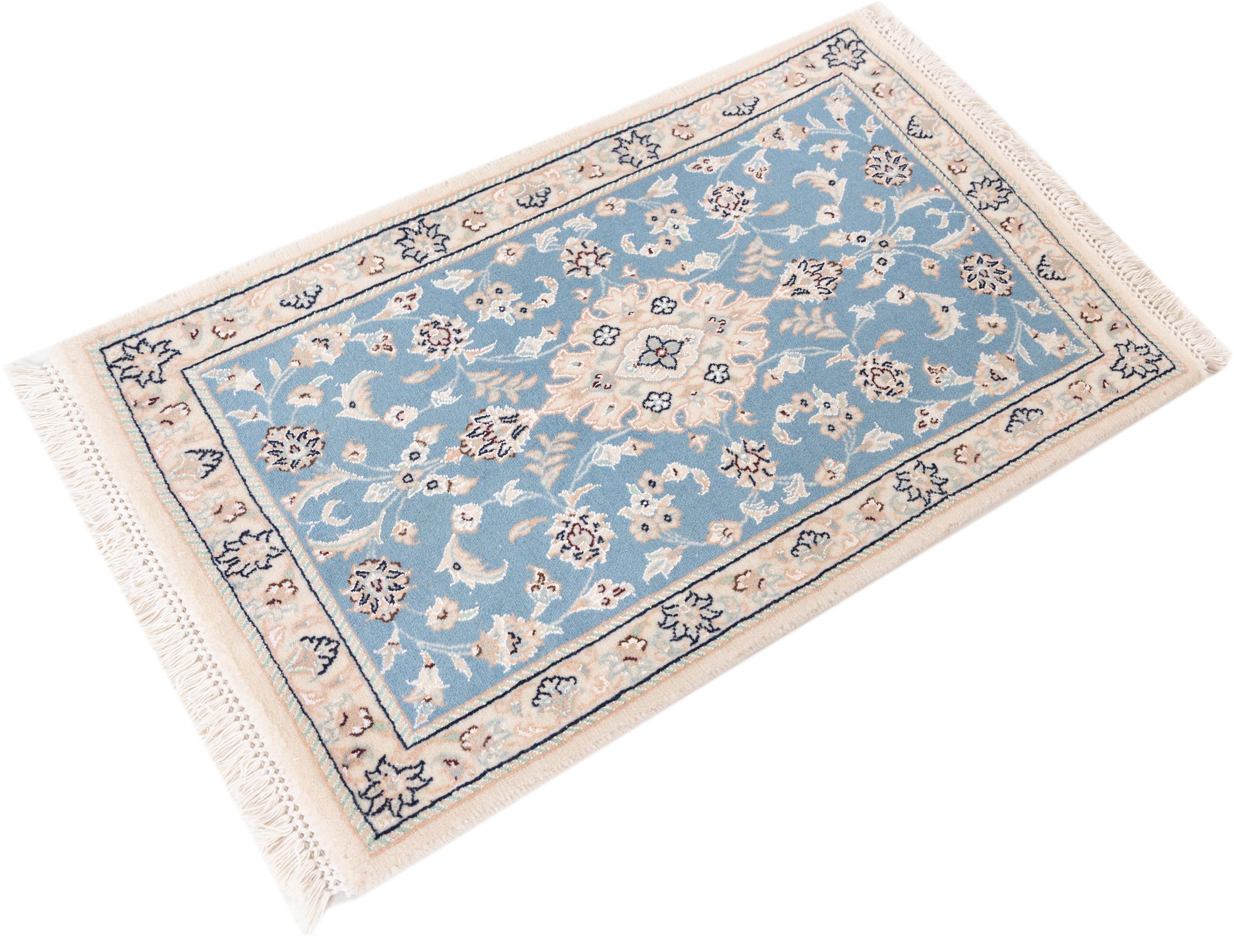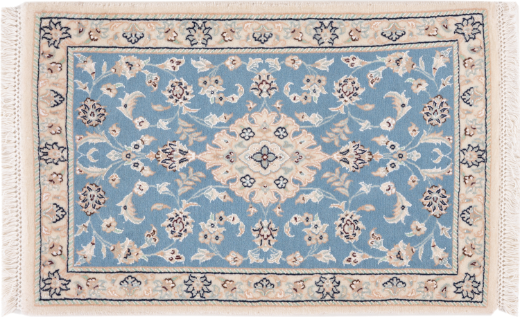 Las alfombras de la ciudad de Nain, en la frontera de uno de los mayores desiertos de Irán, están entre las alfombras persas más famosas del mundo. Su diseño típico es inconfundible con adornos florales, un medallón central y tonos beige y rojo o azul. Gracias a sus designaciones 4La, 6La, 9La y 12La, las sutilezas de una alfombra de Nain se pueden ver a simple vista. Cuanto más bajo sea el número "La", más alta es la densidad del nudo y por lo tanto más fina es la alfombra.