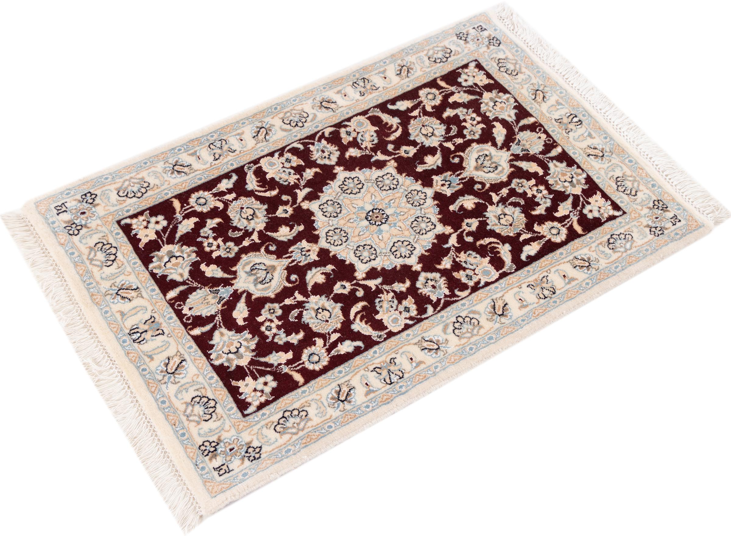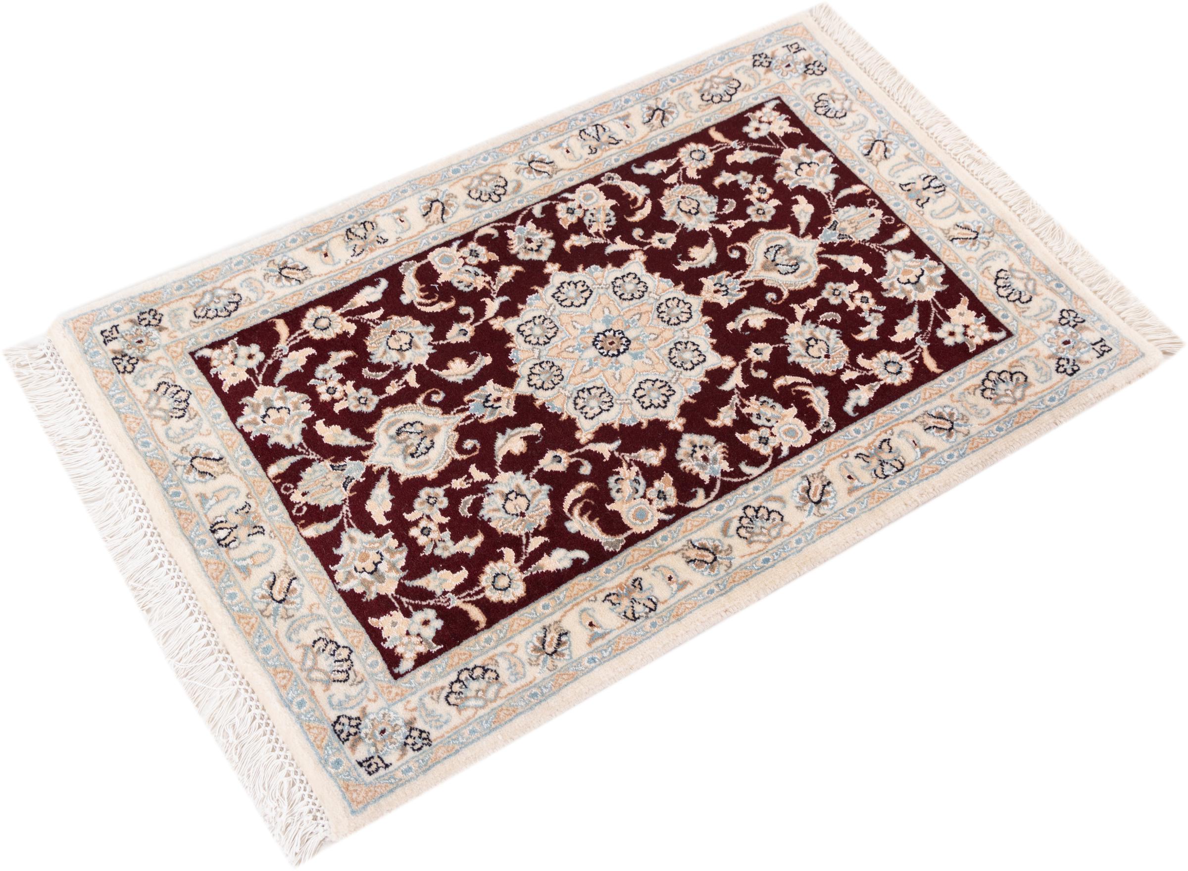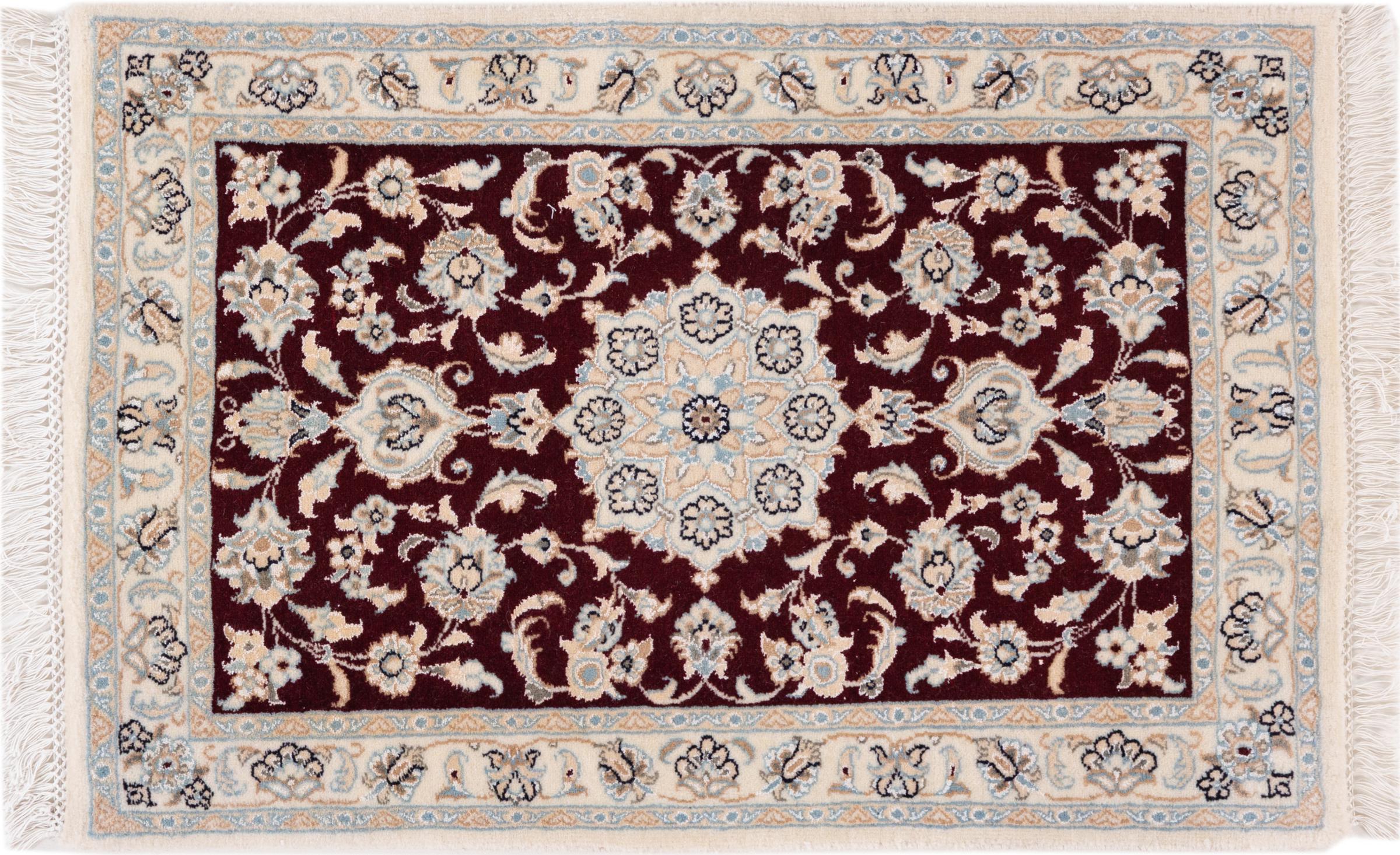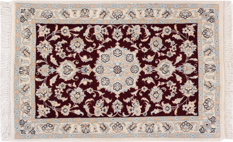 Las alfombras de la ciudad de Nain, en la frontera de uno de los mayores desiertos de Irán, están entre las alfombras persas más famosas del mundo. Su diseño típico es inconfundible con adornos florales, un medallón central y tonos beige y rojo o azul. Gracias a sus designaciones 4La, 6La, 9La y 12La, las sutilezas de una alfombra de Nain se pueden ver a simple vista. Cuanto más bajo sea el número "La", más alta es la densidad del nudo y por lo tanto más fina es la alfombra.