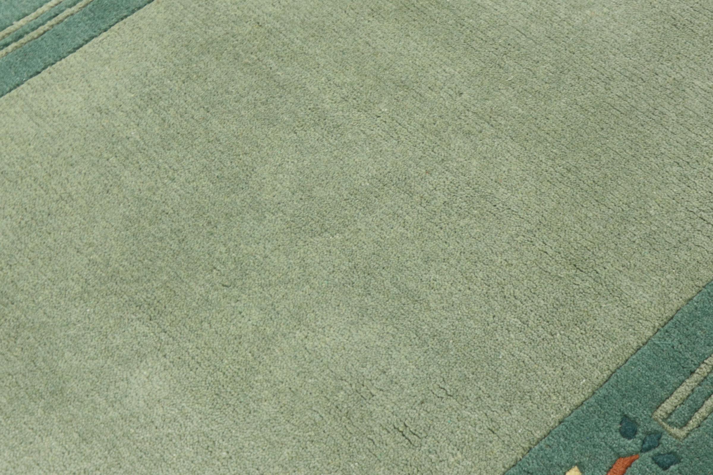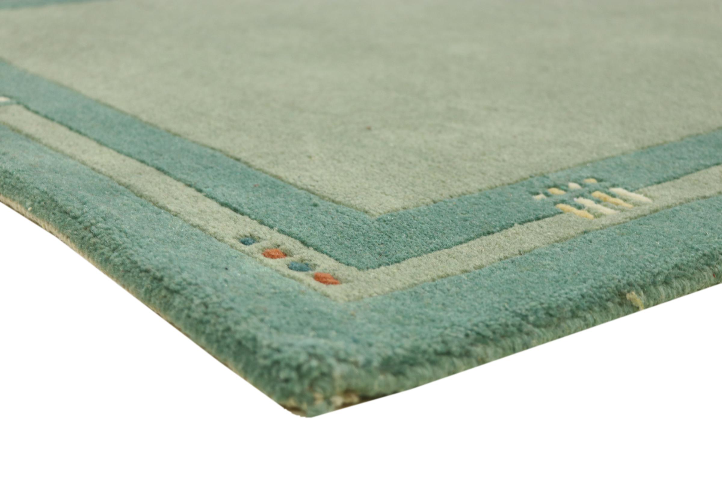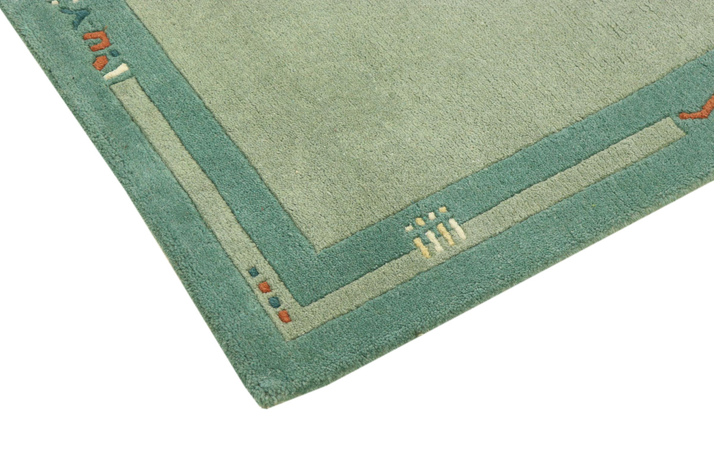 Esta alfombra viene de Nepal y fue anudada allí a mano. Típicamente las alfombras de Nepal son algo más toscas y tienen patrones modernos y coloridos. Las variaciones clásicas recogen diseños de alfombras chinas tradicionales. El aspecto de las alfombras de Nepal se ha ido adaptando con el tiempo para satisfacer la demanda de los mercados occidentales. Hoy puedes encontrar colores pastel y patrones geométricos en estas alfombras anudadas a mano.
