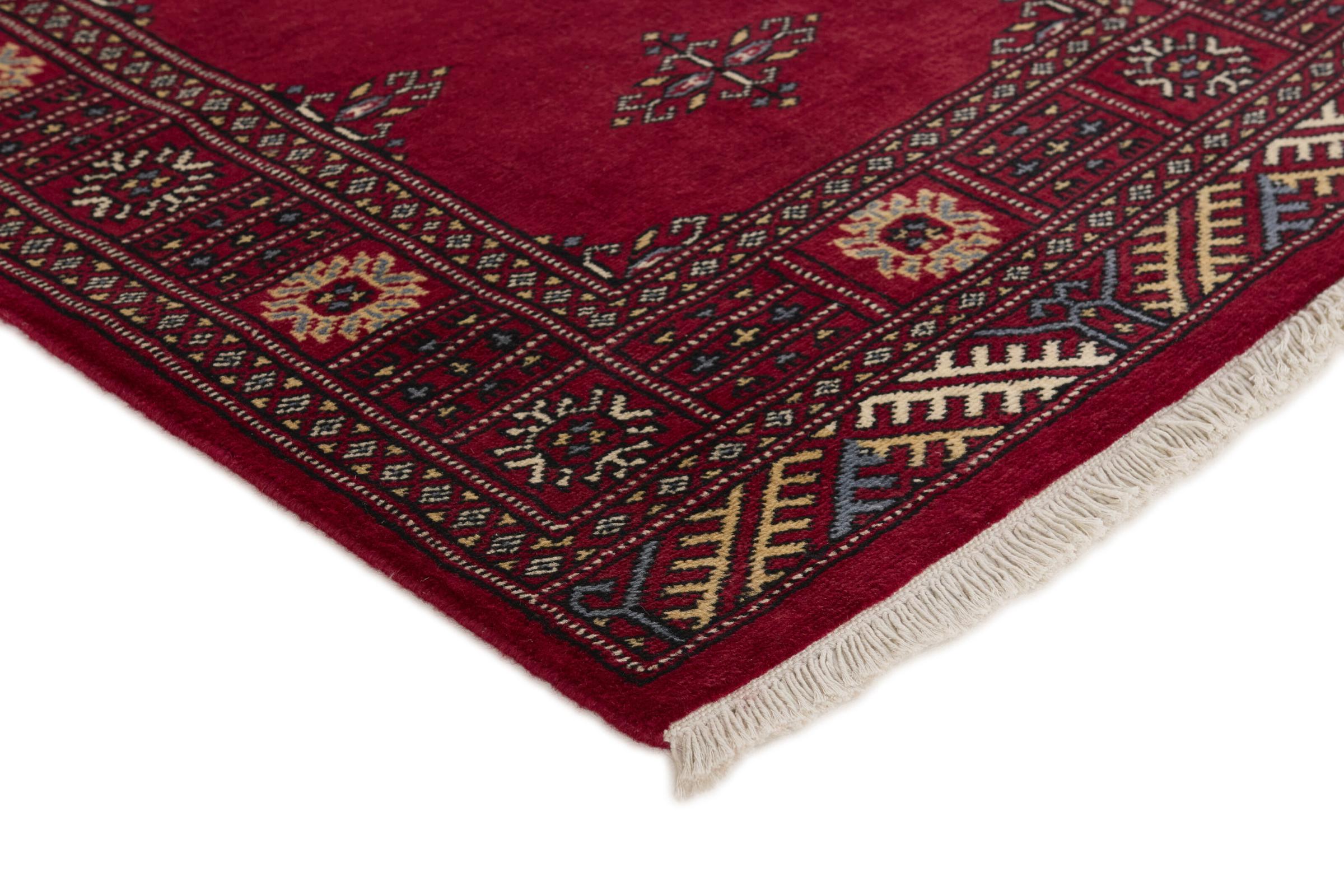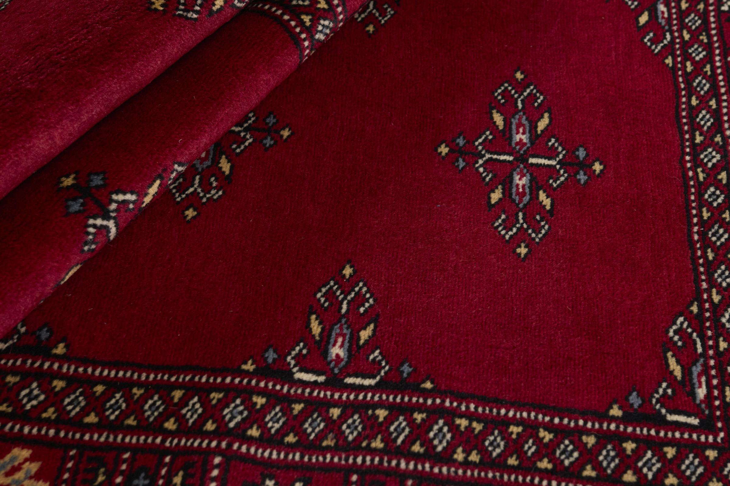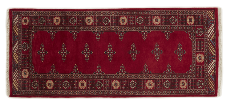 Una gran parte de la producción de alfombras pakistaníes tiene lugar en las ciudades de Lahore y Karachi y sus alrededores. Muchos de los tejedores de alfombras de esa época huyeron a Pakistán durante la guerra con la India y se establecieron allí. Hoy en día, se conocen especialmente las alfombras anudadas a mano de Pakistán Bukhara. Al igual que las alfombras orientales afganas, las alfombras paquistaníes también son de colores oscuros y en su mayoría tienen tonos rojos. También el conocido patrón de pata de elefante (patrón octogonal repetido) se puede encontrar en un pakistaní.