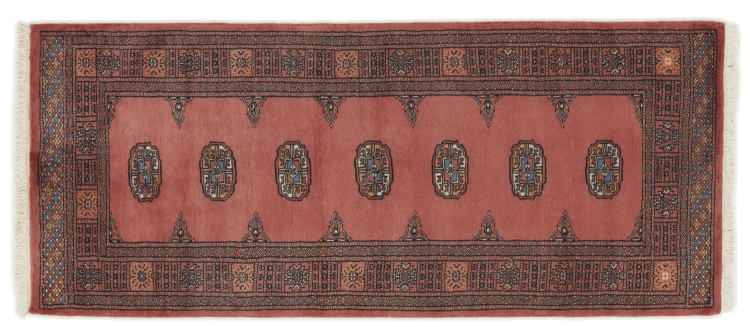 Una gran parte de la producción de alfombras pakistaníes tiene lugar en las ciudades de Lahore y Karachi y sus alrededores. Muchos de los tejedores de alfombras de esa época huyeron a Pakistán durante la guerra con la India y se establecieron allí. Hoy en día, se conocen especialmente las alfombras anudadas a mano de Pakistán Bukhara. Al igual que las alfombras orientales afganas, las alfombras paquistaníes también son de colores oscuros y en su mayoría tienen tonos rojos. También el conocido patrón de pata de elefante (patrón octogonal repetido) se puede encontrar en un pakistaní.