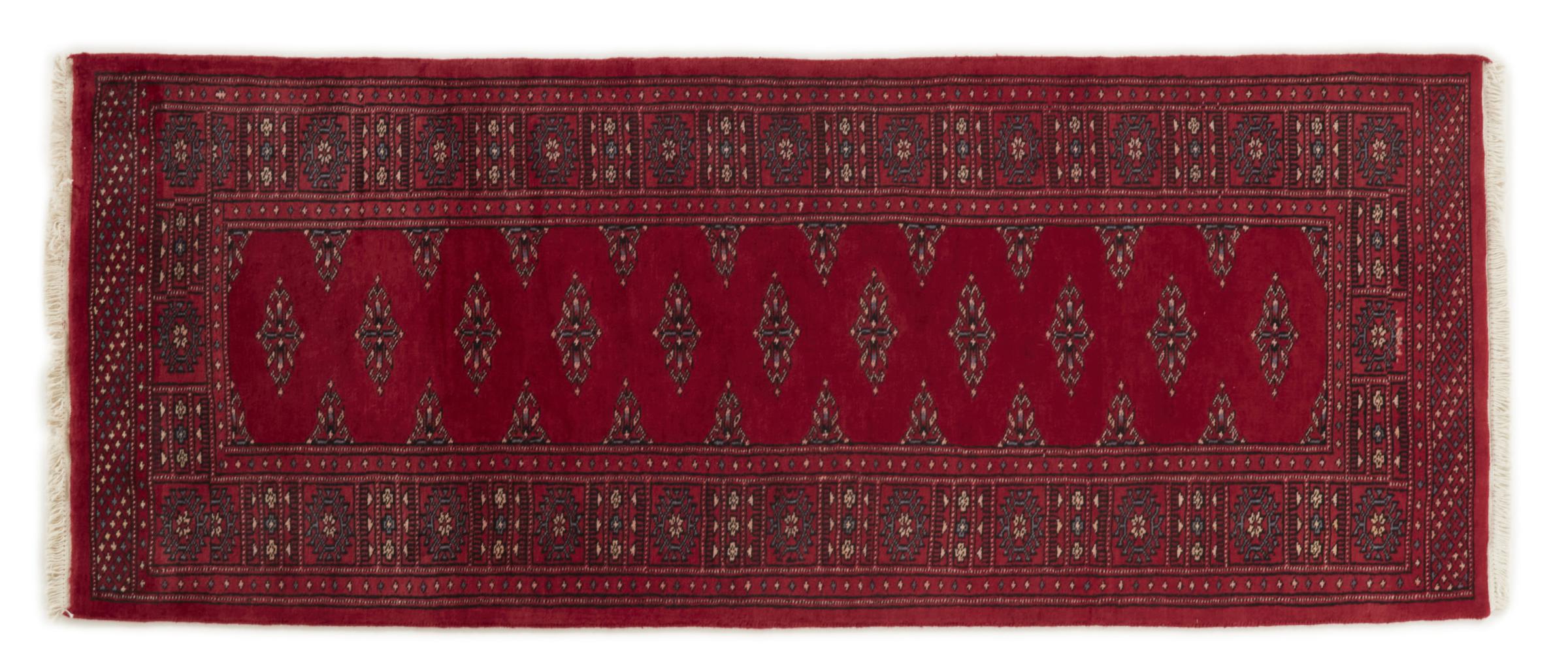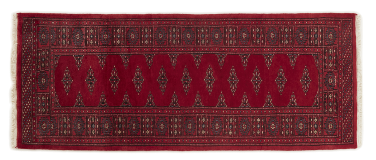 Una gran parte de la producción de alfombras pakistaníes tiene lugar en las ciudades de Lahore y Karachi y sus alrededores. Muchos de los tejedores de alfombras de esa época huyeron a Pakistán durante la guerra con la India y se establecieron allí. Hoy en día, se conocen especialmente las alfombras anudadas a mano de Pakistán Bukhara. Al igual que las alfombras orientales afganas, las alfombras paquistaníes también son de colores oscuros y en su mayoría tienen tonos rojos. También el conocido patrón de pata de elefante (patrón octogonal repetido) se puede encontrar en un pakistaní.
