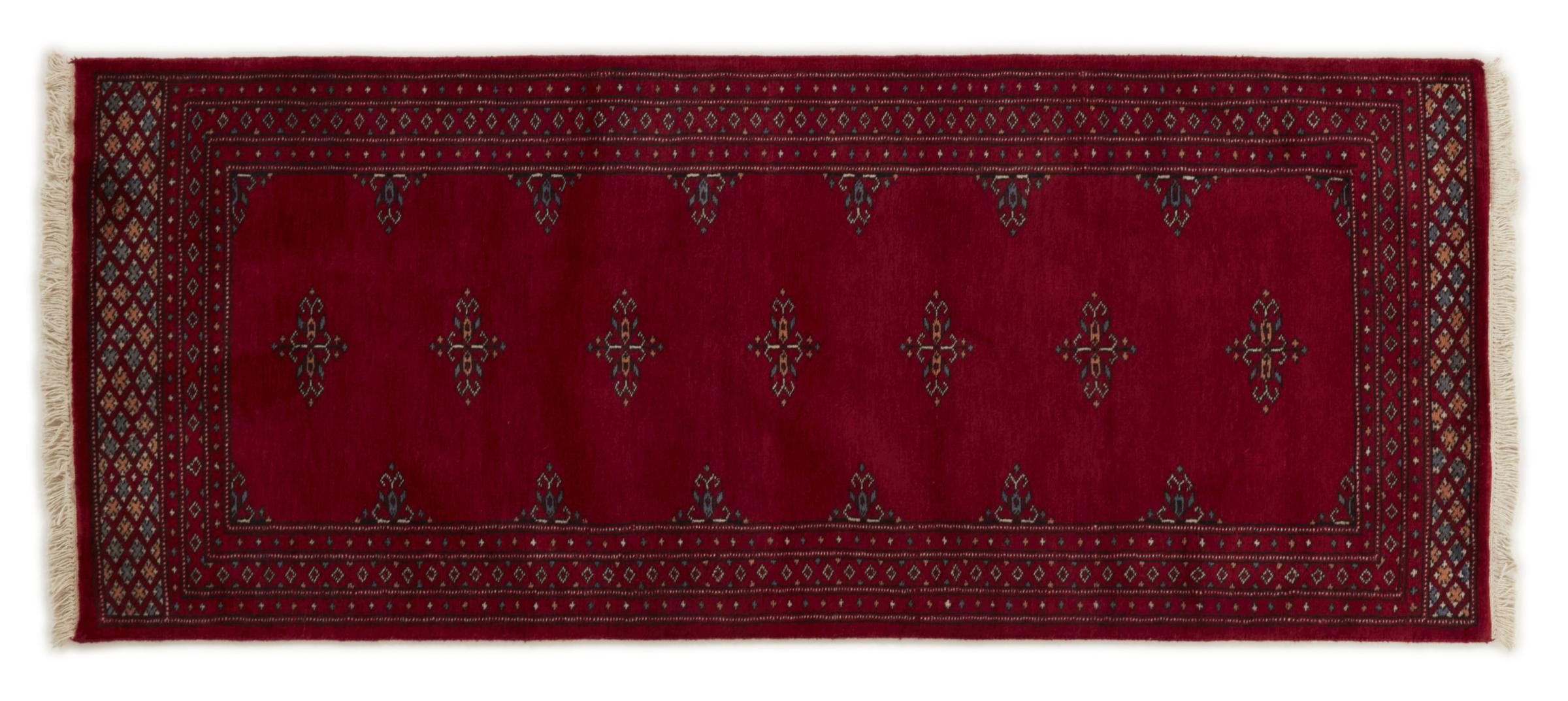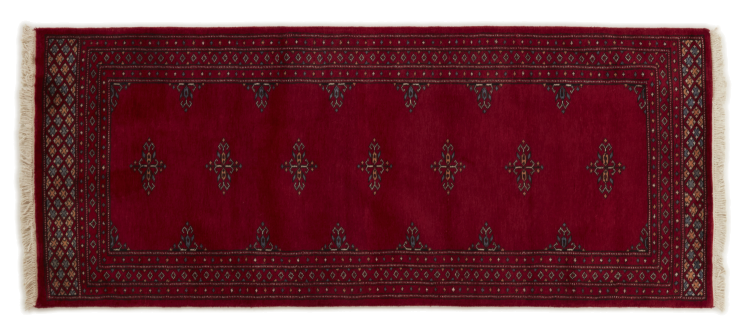 Una gran parte de la producción de alfombras pakistaníes tiene lugar en las ciudades de Lahore y Karachi y sus alrededores. Muchos de los tejedores de alfombras de esa época huyeron a Pakistán durante la guerra con la India y se establecieron allí. Hoy en día, se conocen especialmente las alfombras anudadas a mano de Pakistán Bukhara. Al igual que las alfombras orientales afganas, las alfombras paquistaníes también son de colores oscuros y en su mayoría tienen tonos rojos. También el conocido patrón de pata de elefante (patrón octogonal repetido) se puede encontrar en un pakistaní.