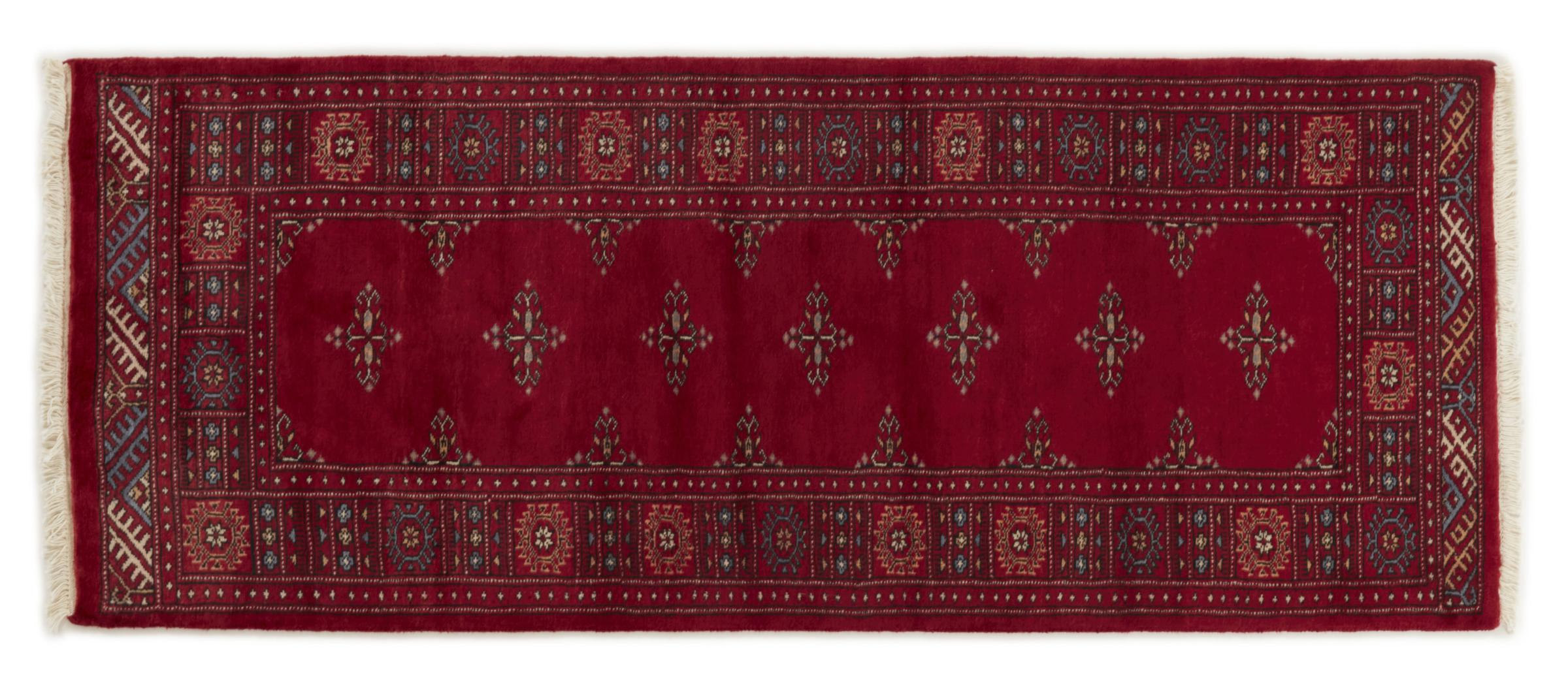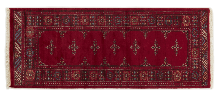Una gran parte de la producción de alfombras pakistaníes tiene lugar en las ciudades de Lahore y Karachi y sus alrededores. Muchos de los tejedores de alfombras de esa época huyeron a Pakistán durante la guerra con la India y se establecieron allí. Hoy en día, se conocen especialmente las alfombras anudadas a mano de Pakistán Bukhara. Al igual que las alfombras orientales afganas, las alfombras paquistaníes también son de colores oscuros y en su mayoría tienen tonos rojos. También el conocido patrón de pata de elefante (patrón octogonal repetido) se puede encontrar en un pakistaní.